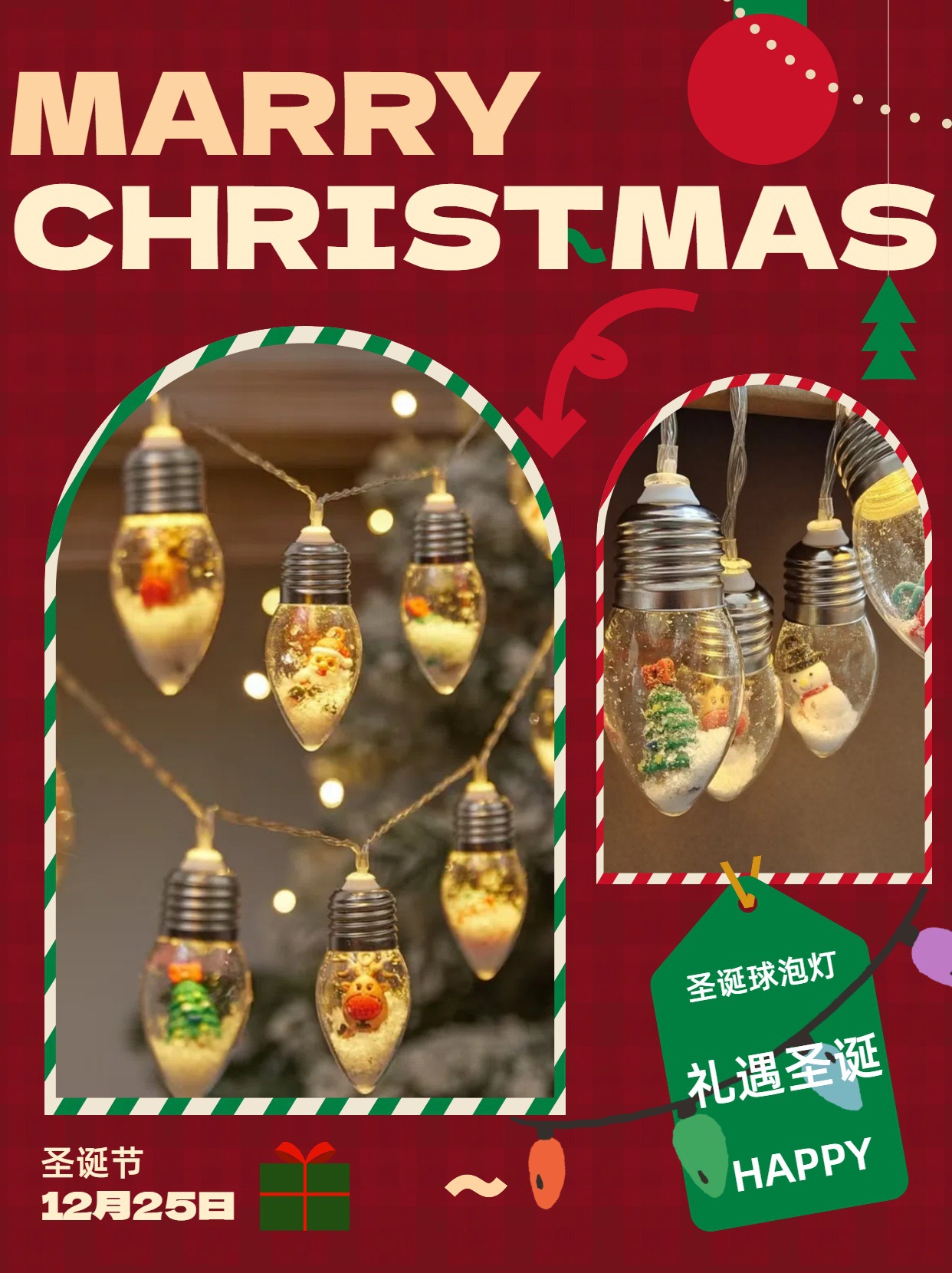 LED圣诞节装饰球泡灯雪人圣诞树圣诞老人灯串节日氛围道具灯串
