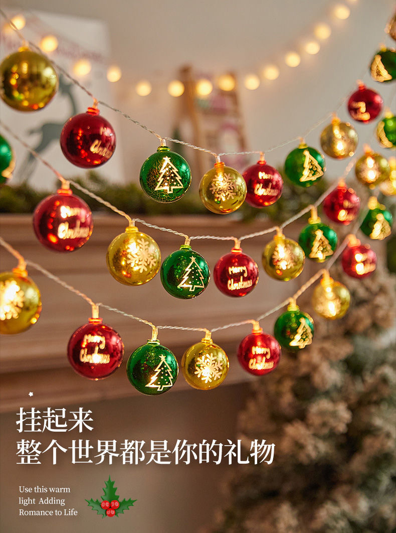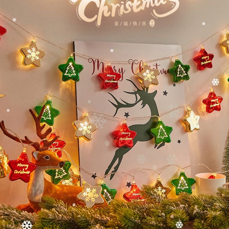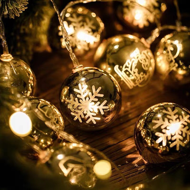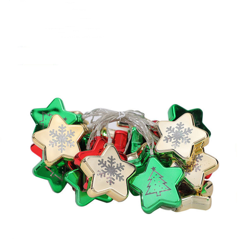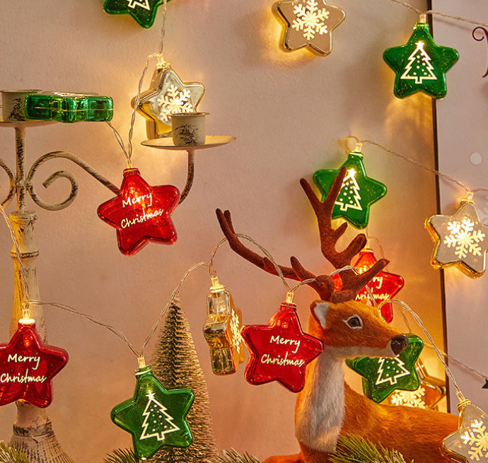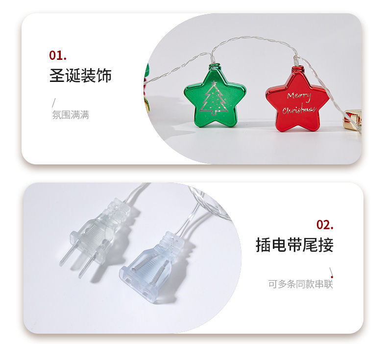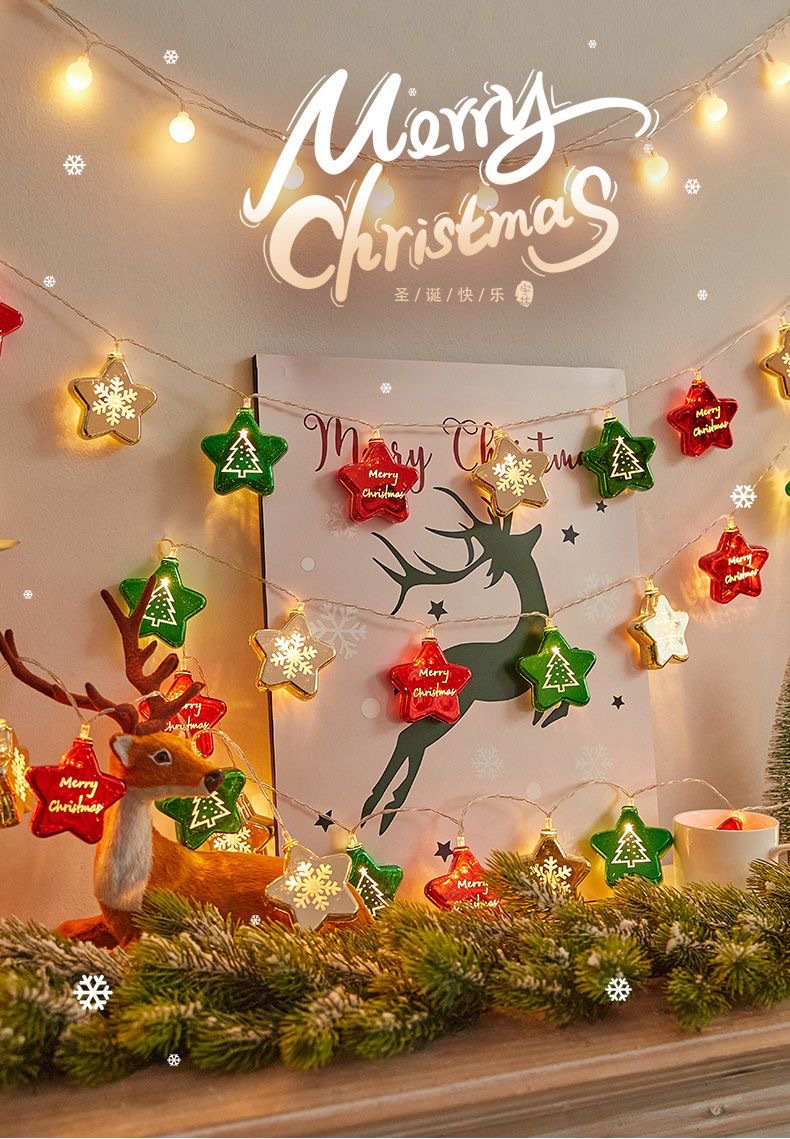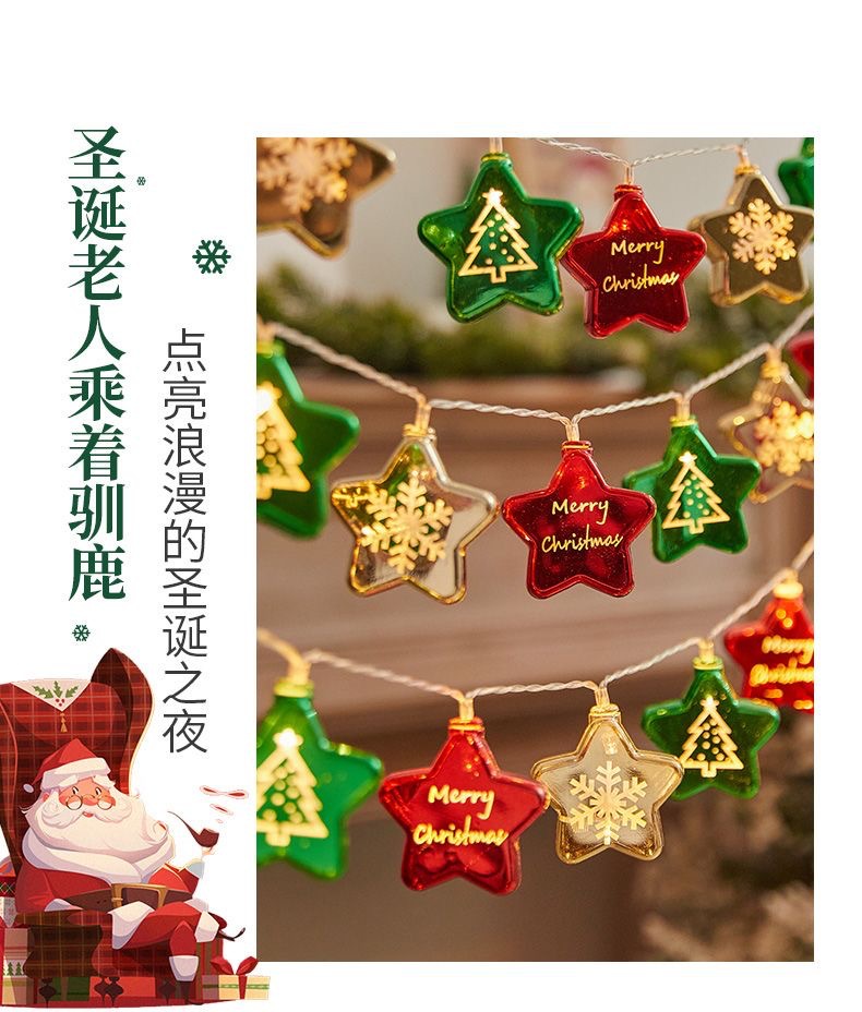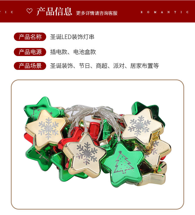 LED电镀五角星星雪花灯串圣诞天罗球氛围装饰闪灯彩灯