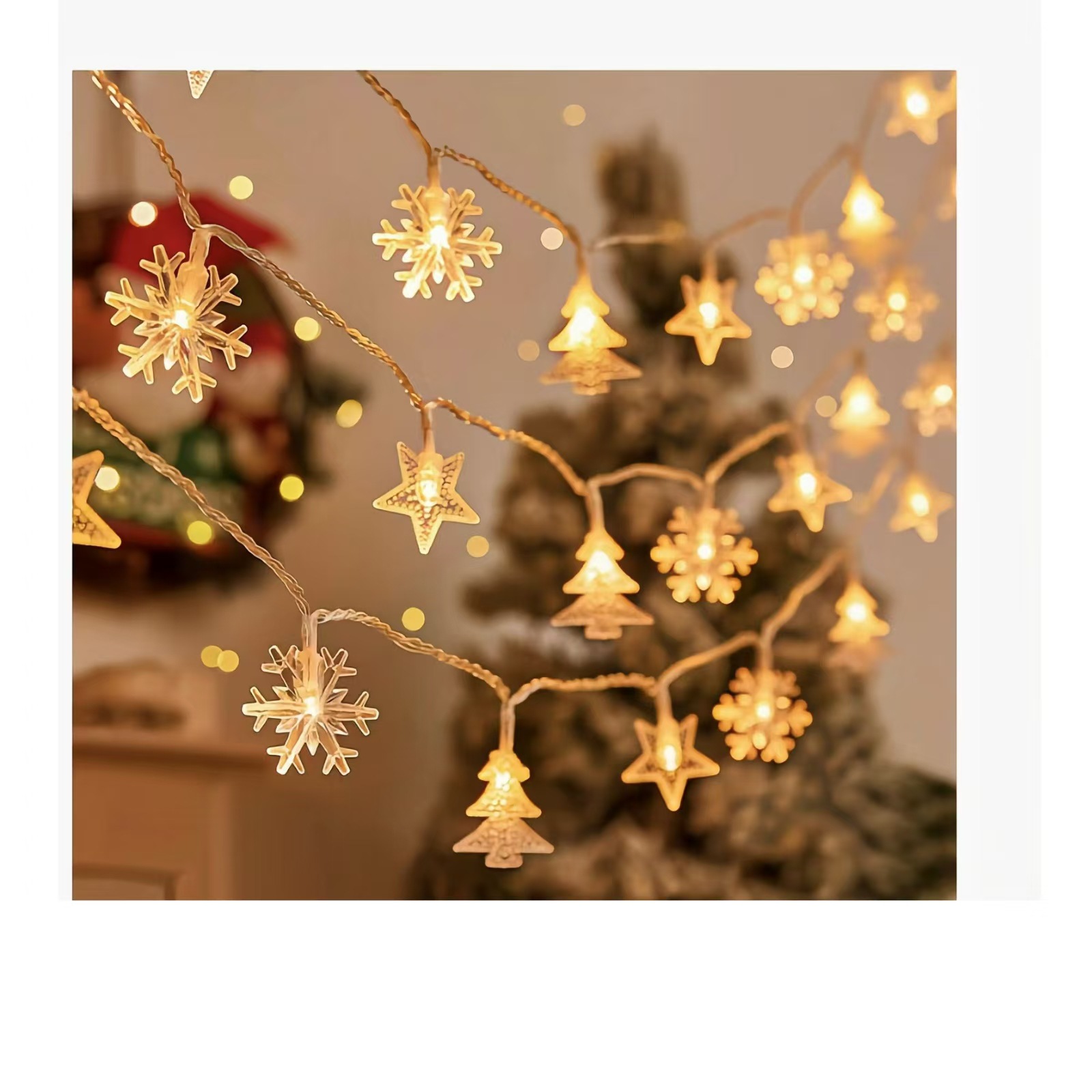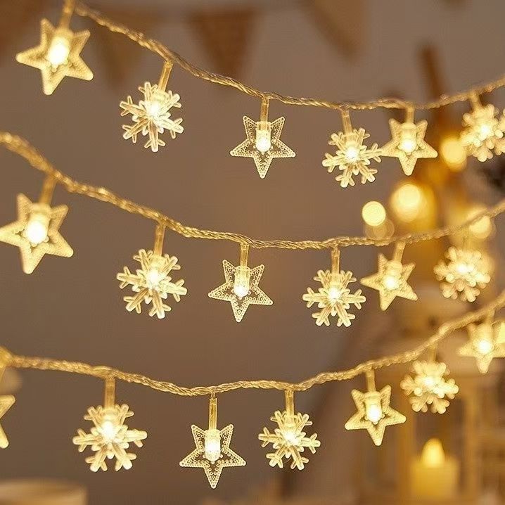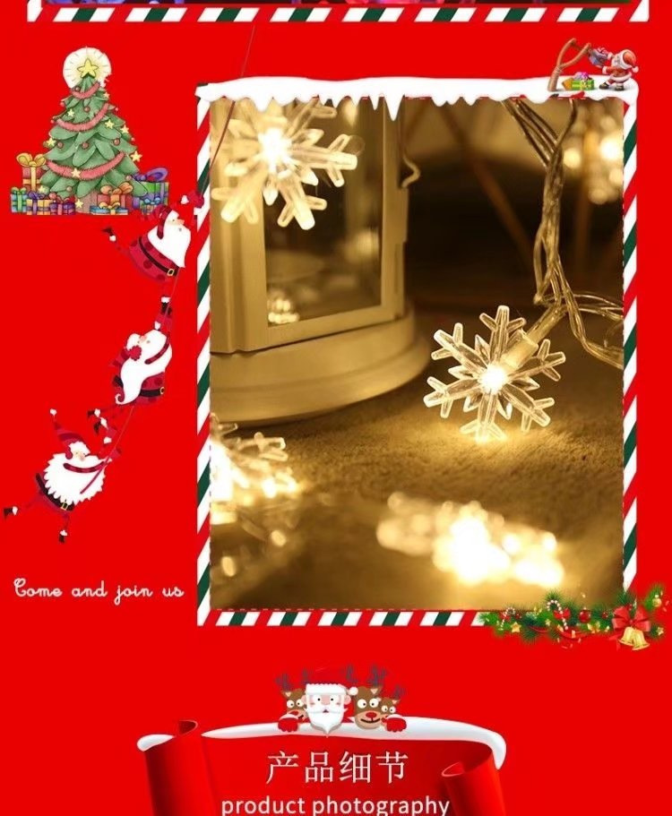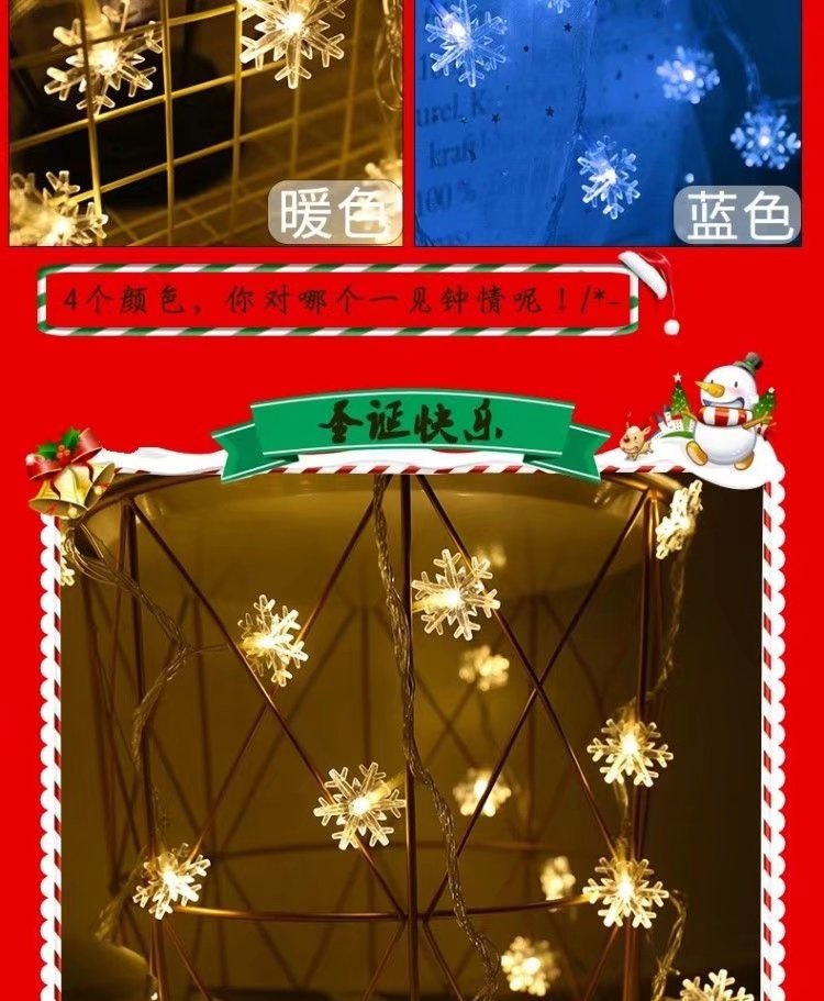 圣诞雪花灯串led小彩灯满天星节日布置圣诞节星星插电小雪花串灯