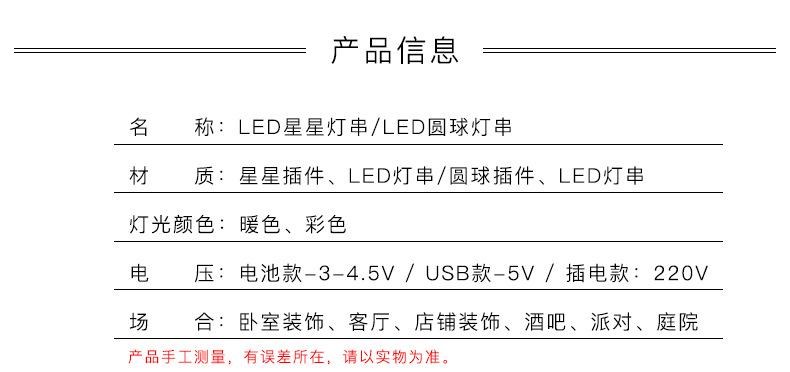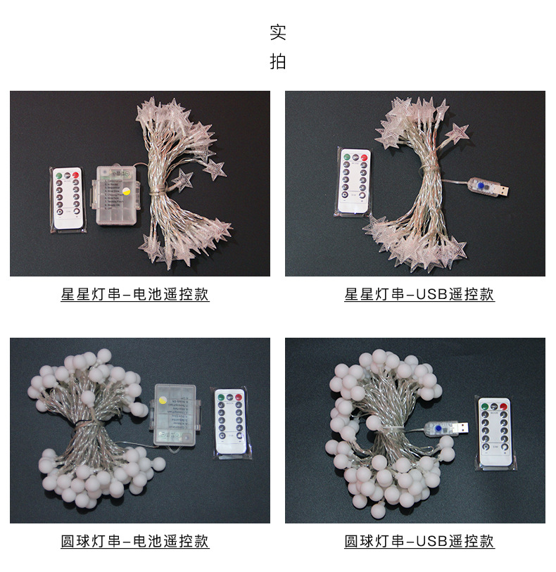 LED星星灯串电池USB圆球彩灯闪灯房间装饰婚庆橱窗圣诞灯节日串灯