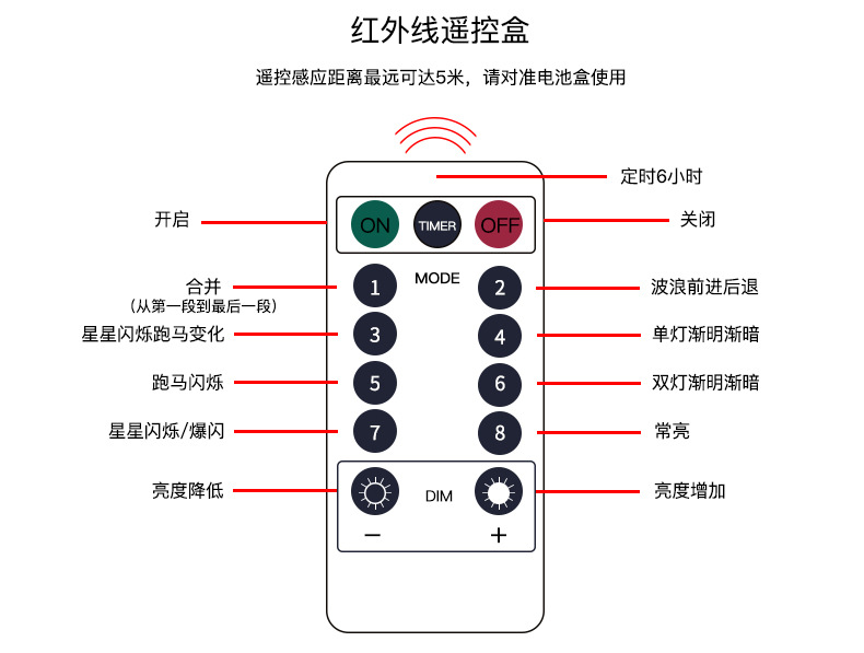 - 6米40灯【遥控+USB款】8种闪烁