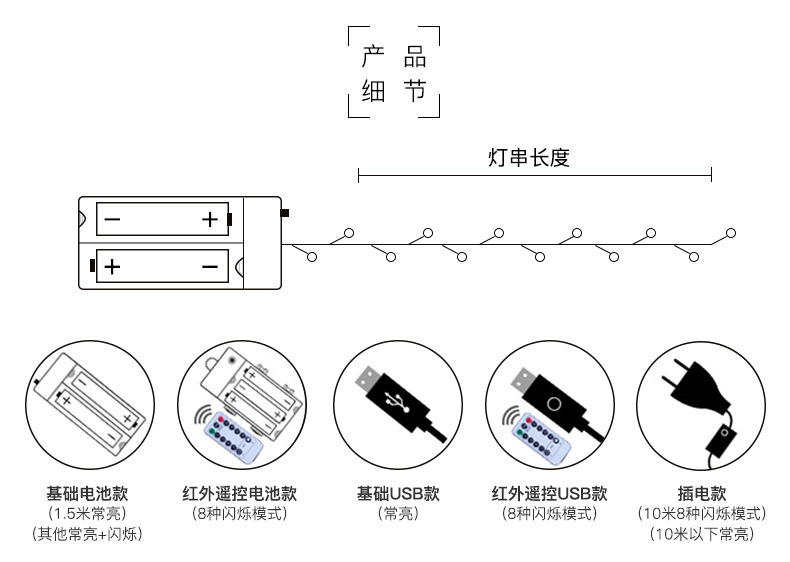 - 10米80灯【遥控+电池款】8种闪烁