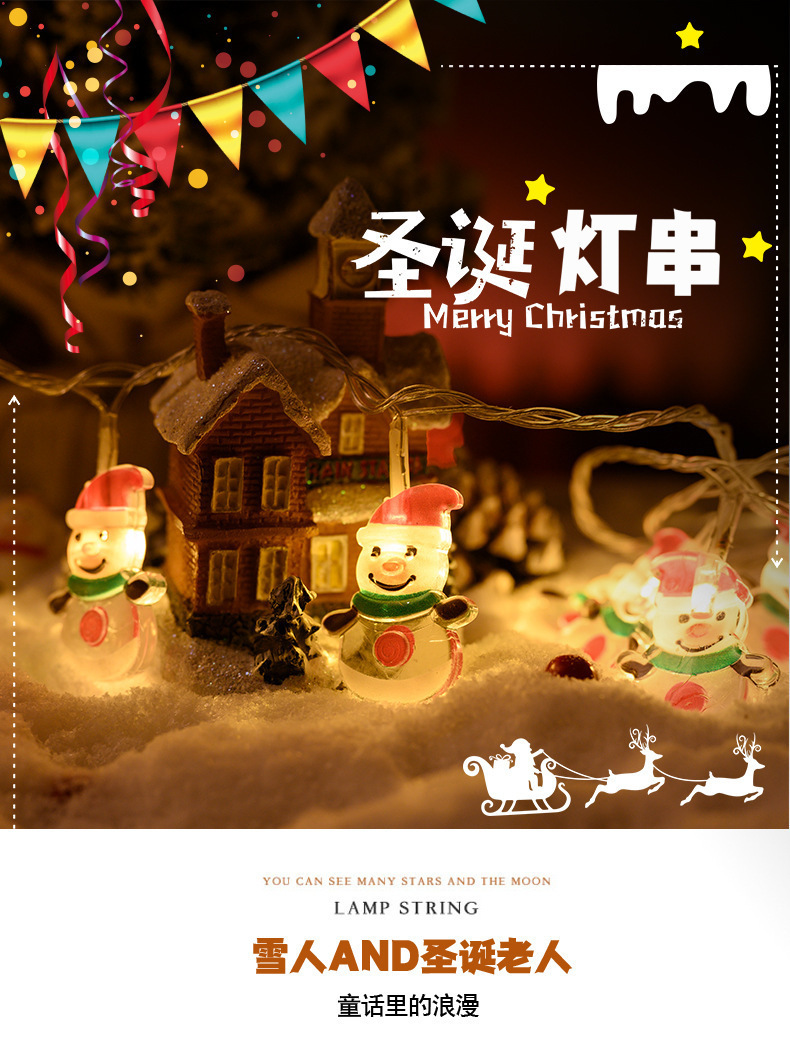 新款LED灯串圣诞树雪人老人头圣诞节万圣节日气氛装饰灯闪灯