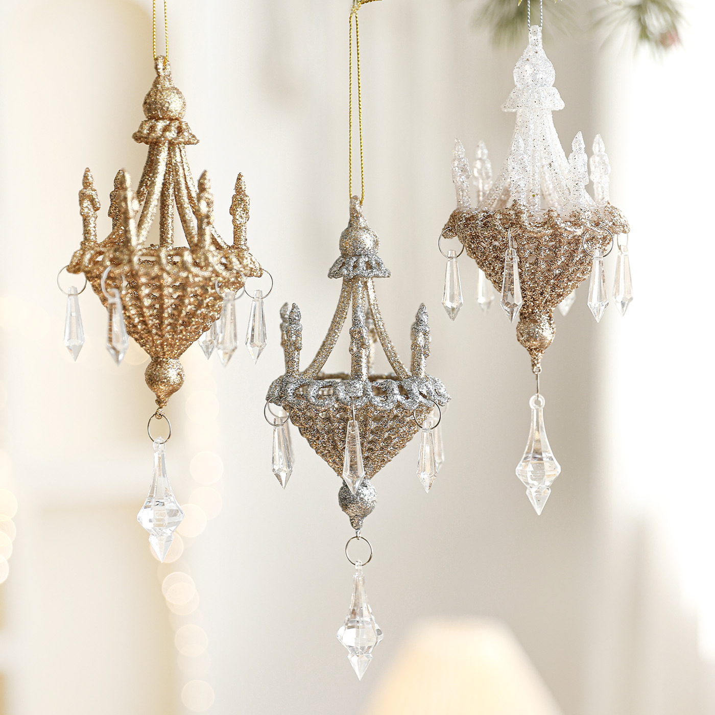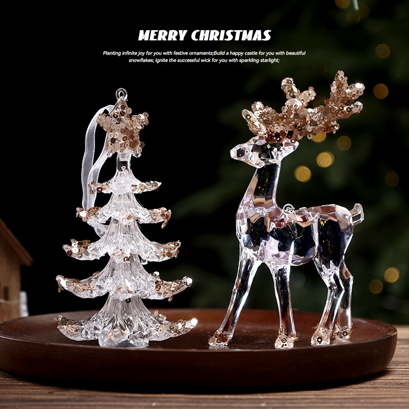 新款金银色粘粉吊灯挂件圣诞树水晶异形挂饰高档挂饰圣诞装饰品