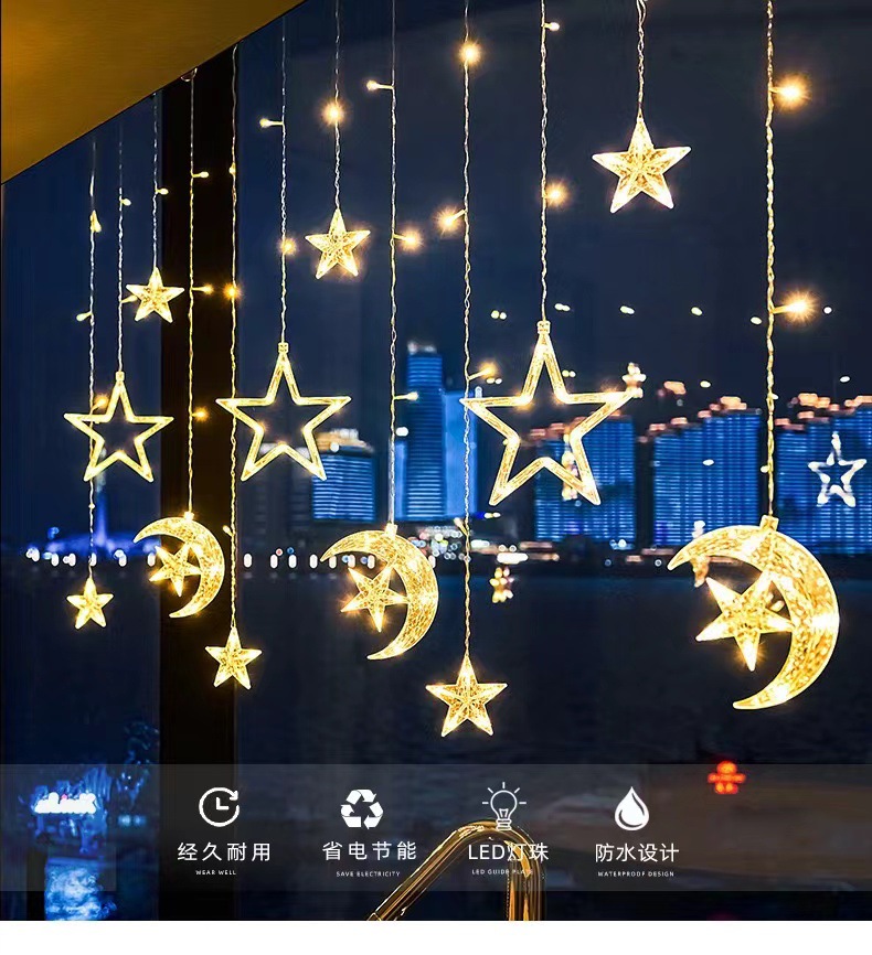 LED窗帘灯彩灯闪灯圣诞节灯房间装饰铃铛麋鹿圣诞树室内装饰灯