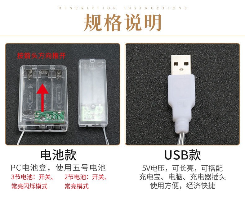 - 10米80灯常亮带闪【电池款】
