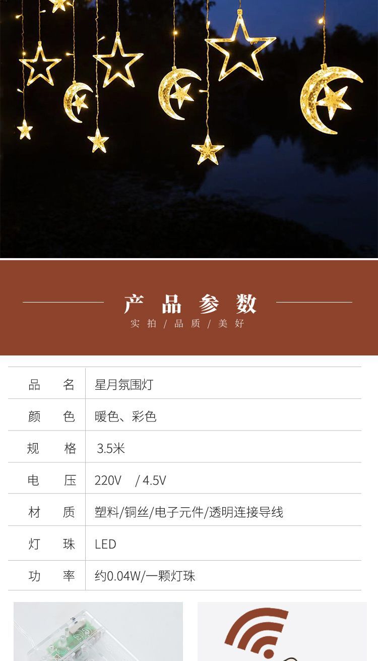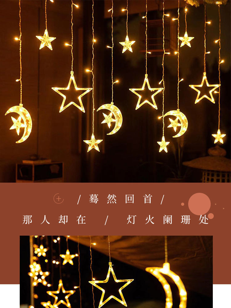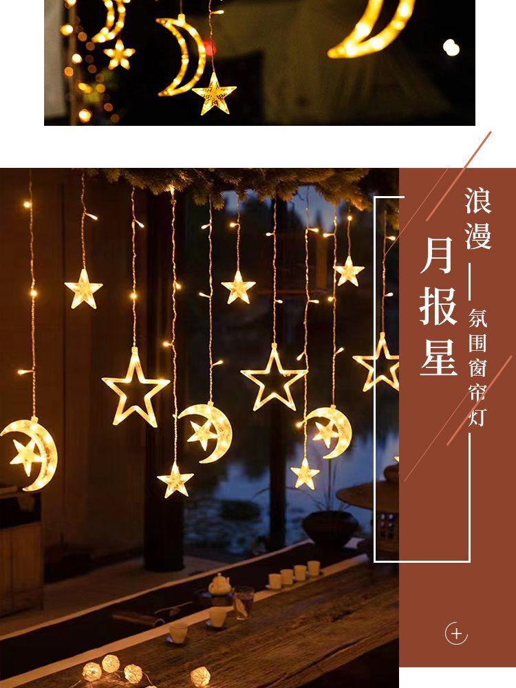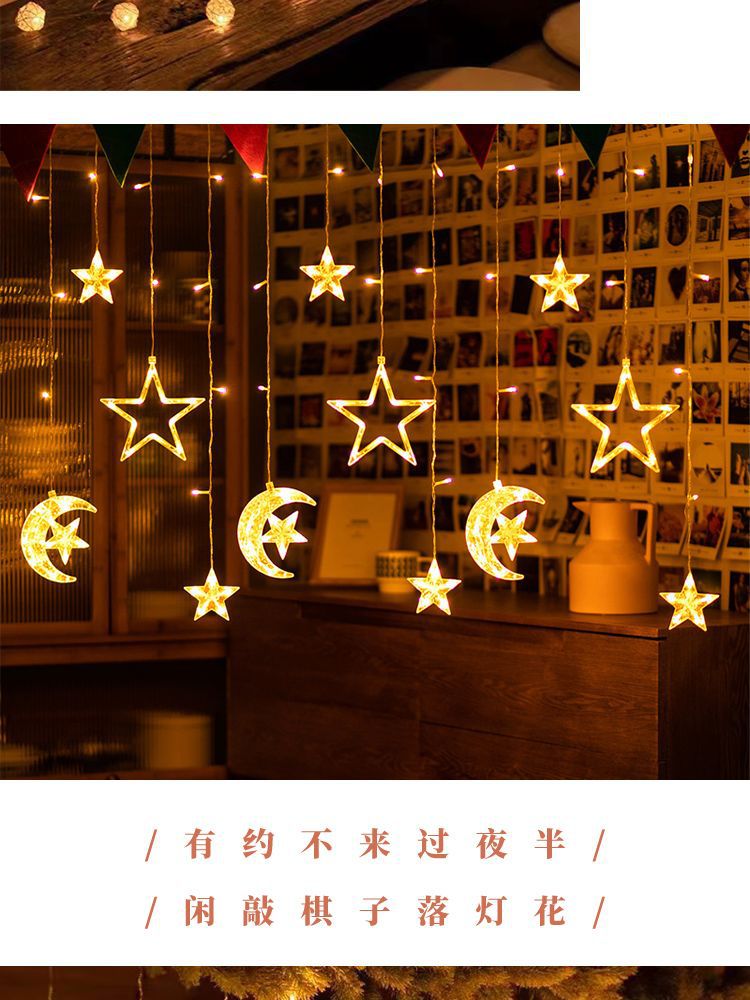 LED星星月亮灯氛围灯窗帘灯网红彩灯满天星卧室装饰房间生日布置