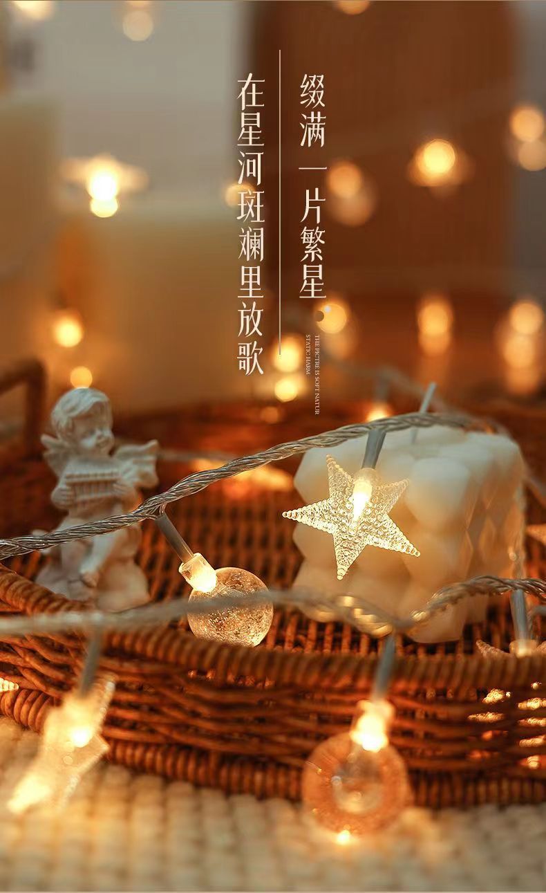 LED防水太阳能灯串星星灯节日小彩灯圣诞装饰户外帐篷露营氛围灯