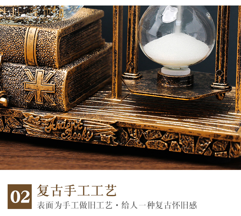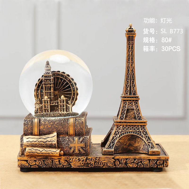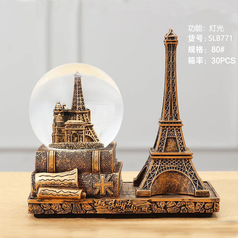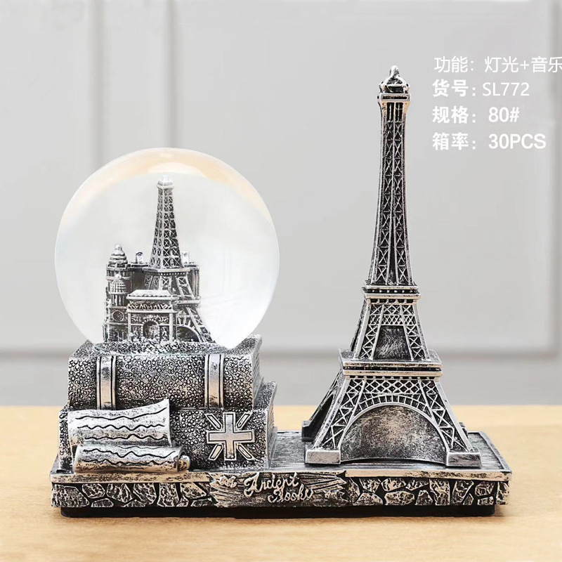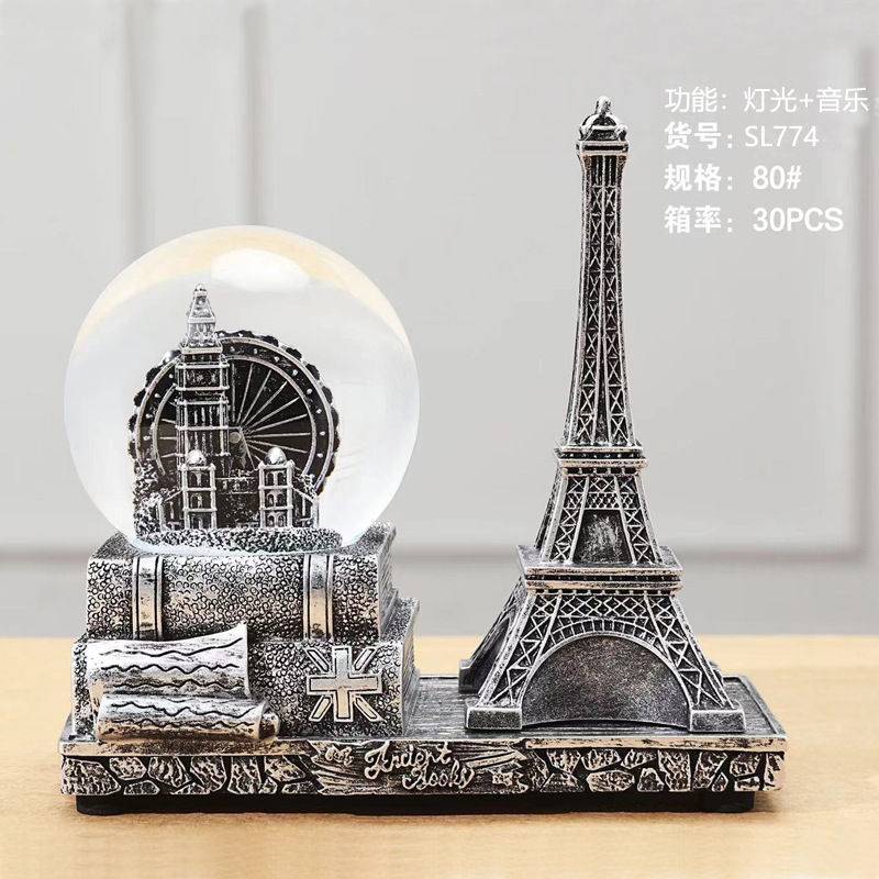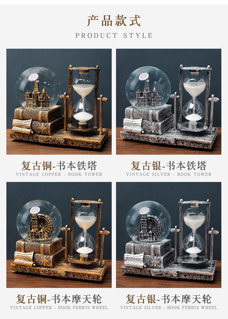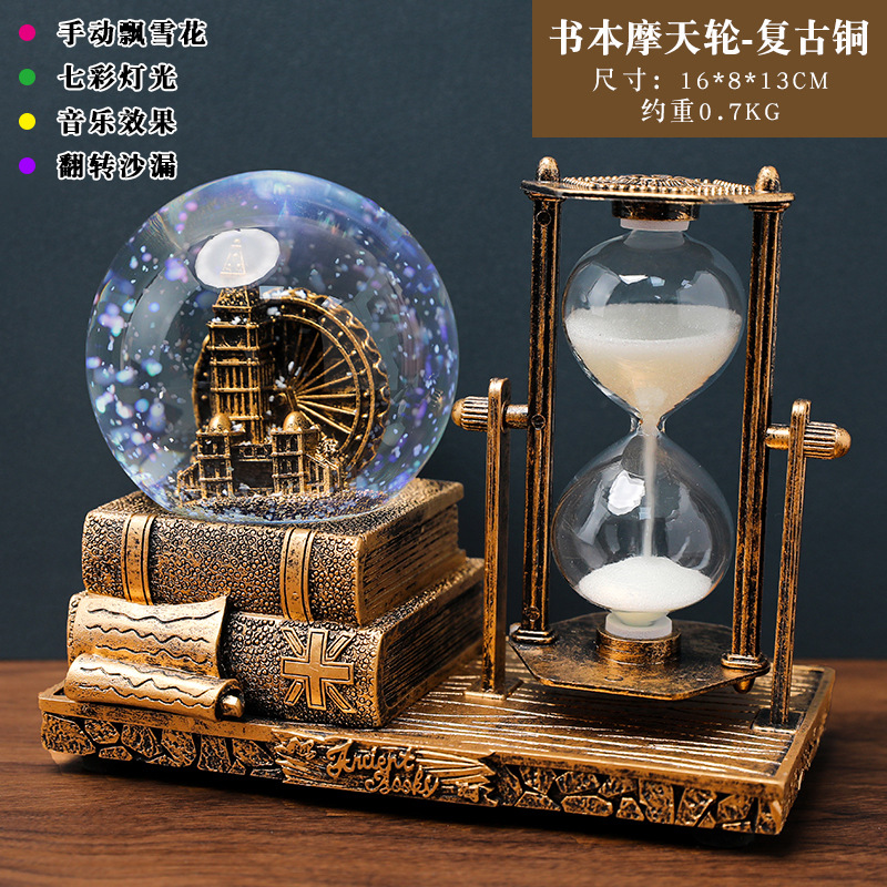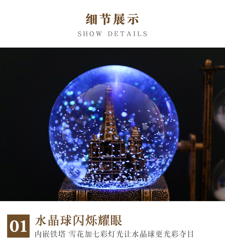 复古铁塔沙漏计时器水晶球八音盒发光桌面摆件学生毕业圣诞节礼物