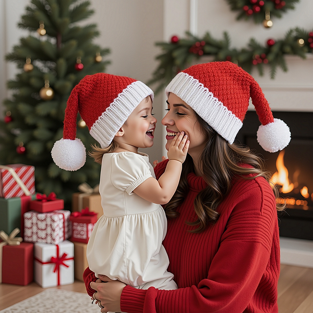 圣诞帽亲子秋冬季帽子成人儿童节日派对装扮毛线针织帽子女款