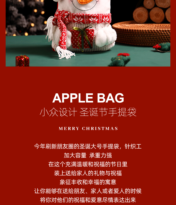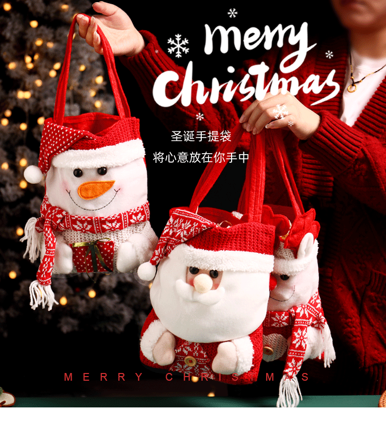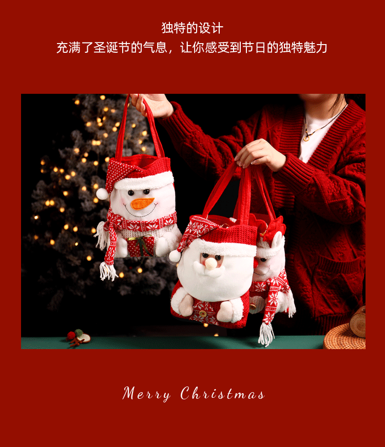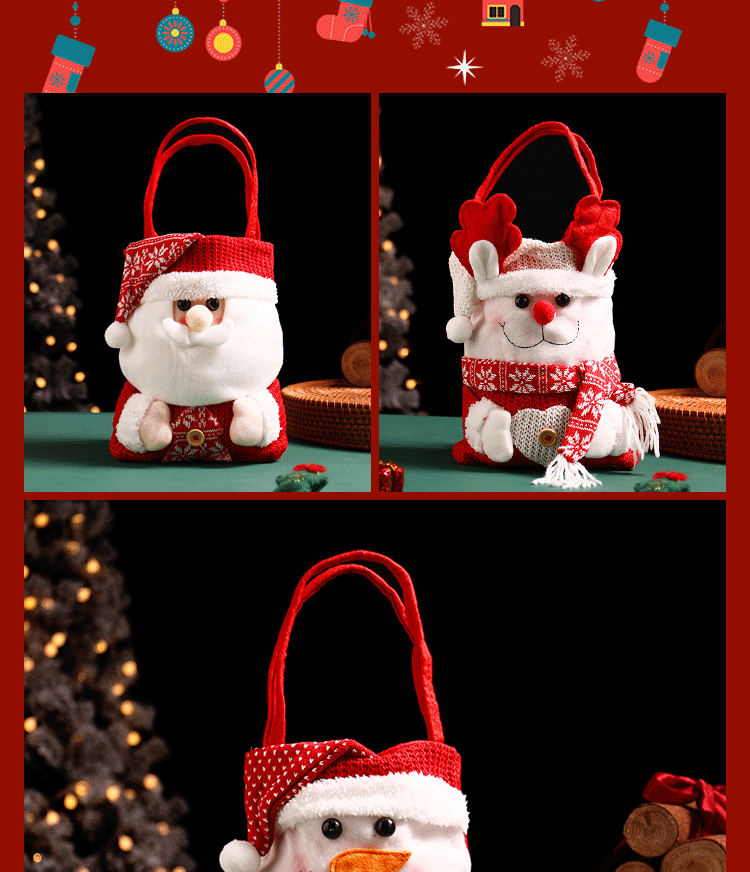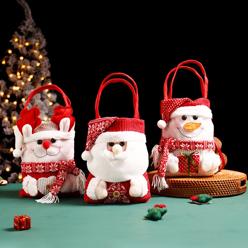 新款圣诞节装饰礼品袋针织卡通圣诞老人礼物袋平安夜苹果袋糖