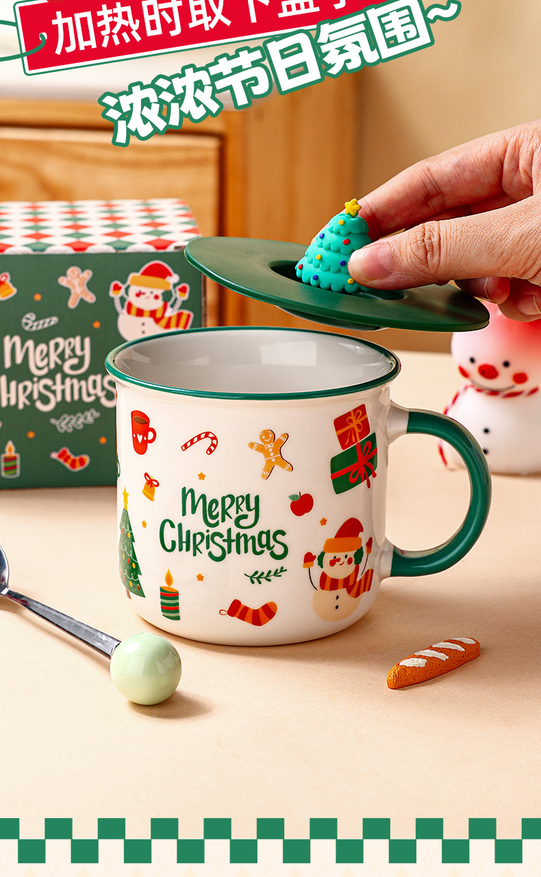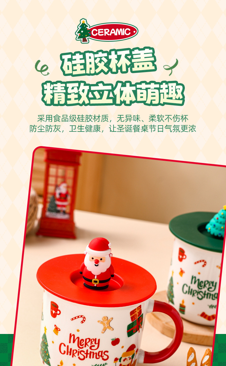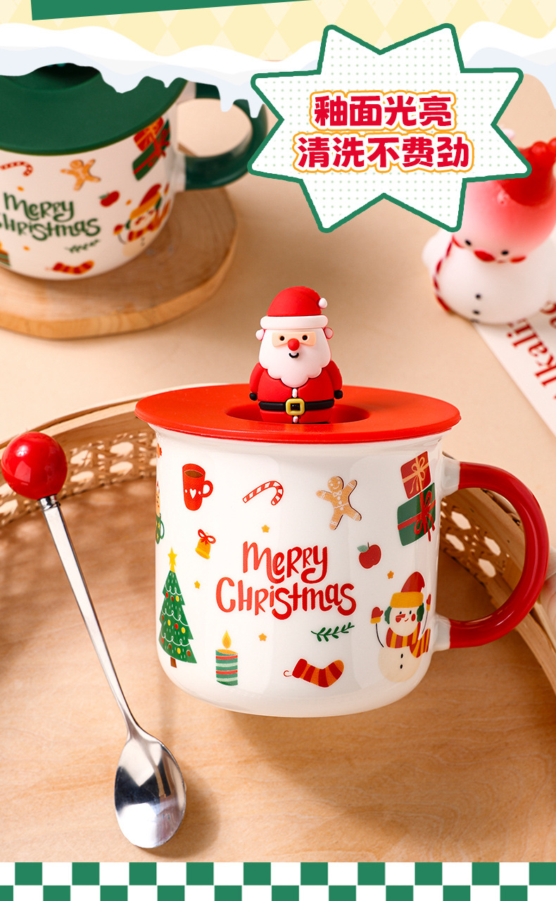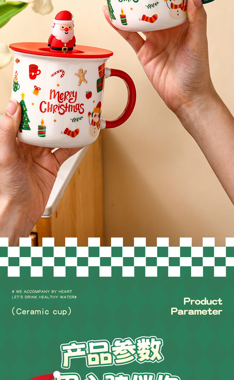 可爱圣诞节陶瓷水杯卡通马克杯公司开业活动礼品带盖杯子定制