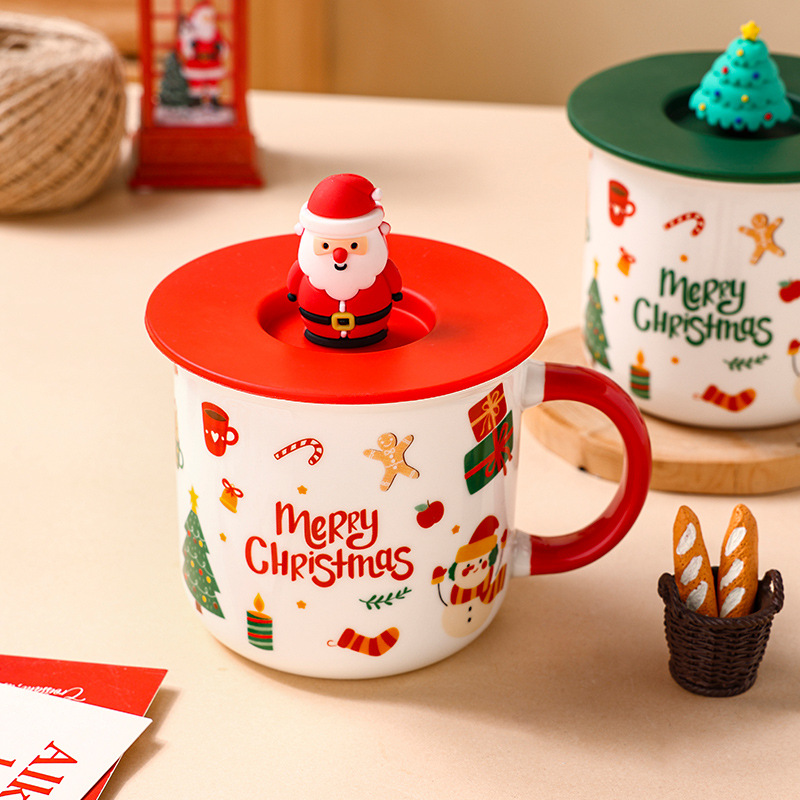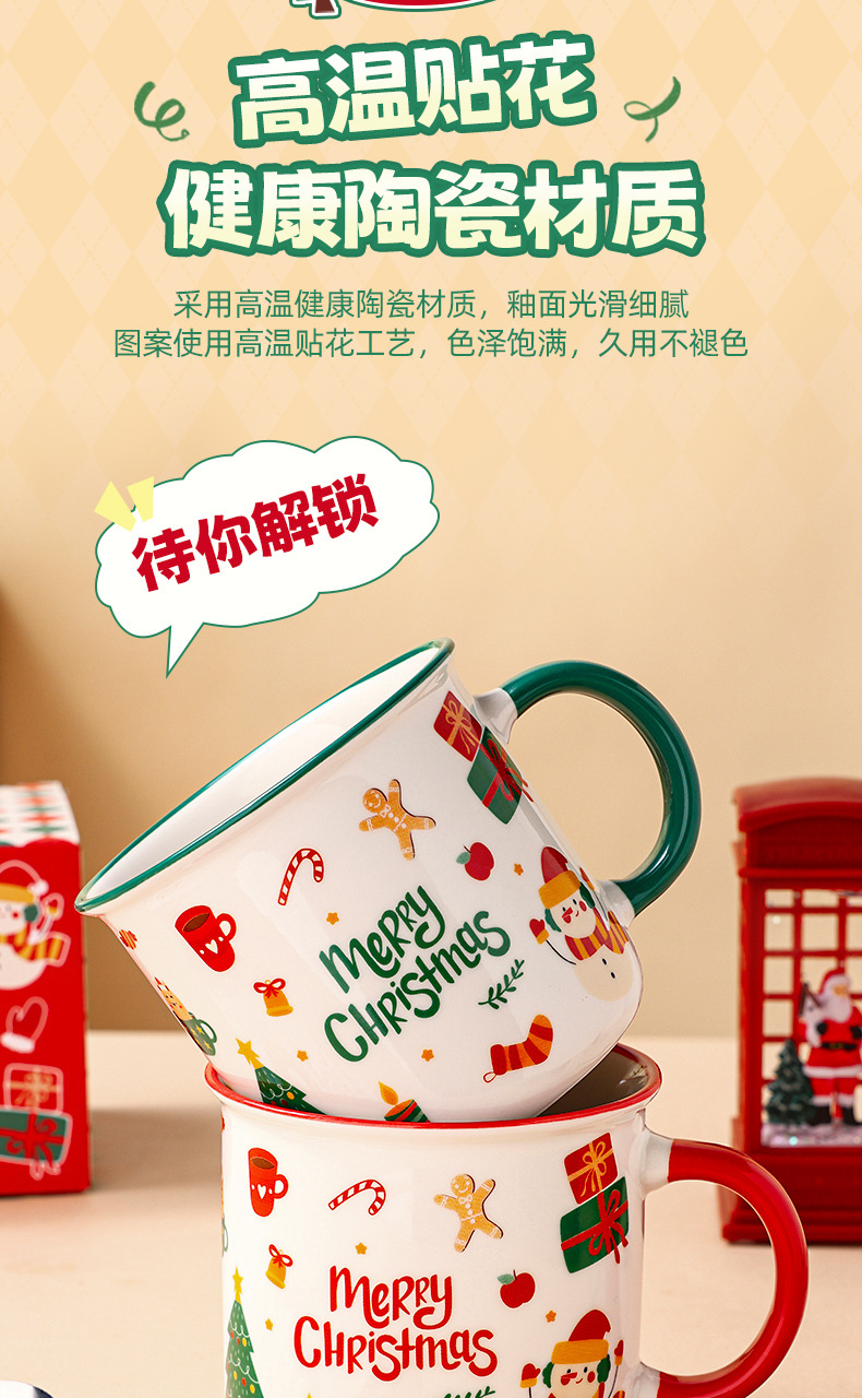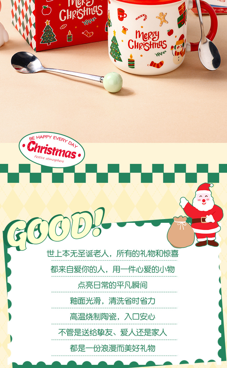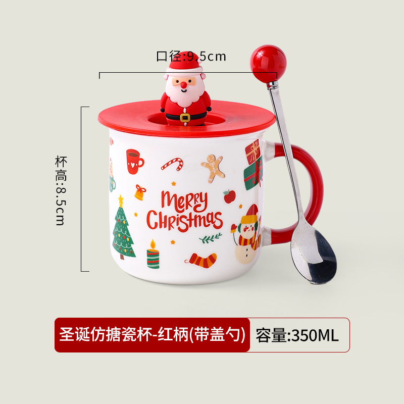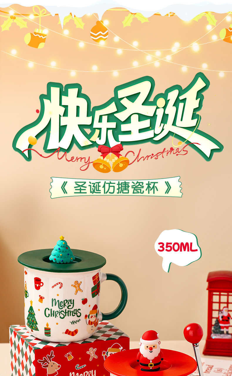 可爱圣诞节陶瓷水杯卡通马克杯公司开业活动礼品带盖杯子定制