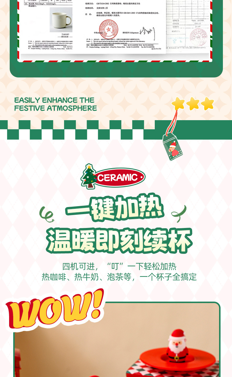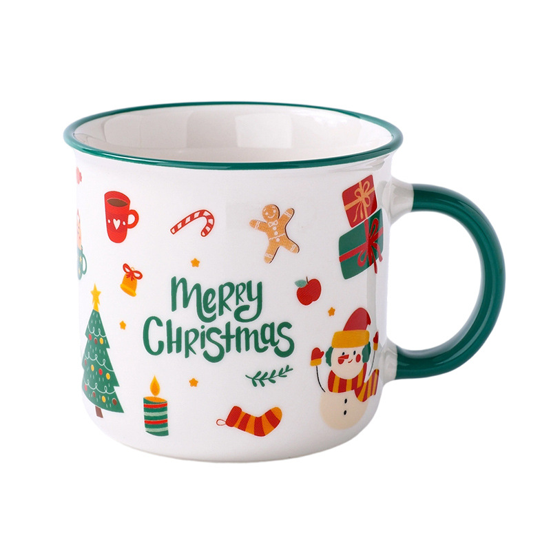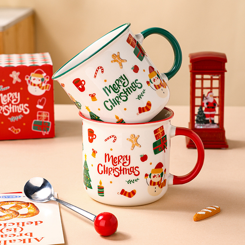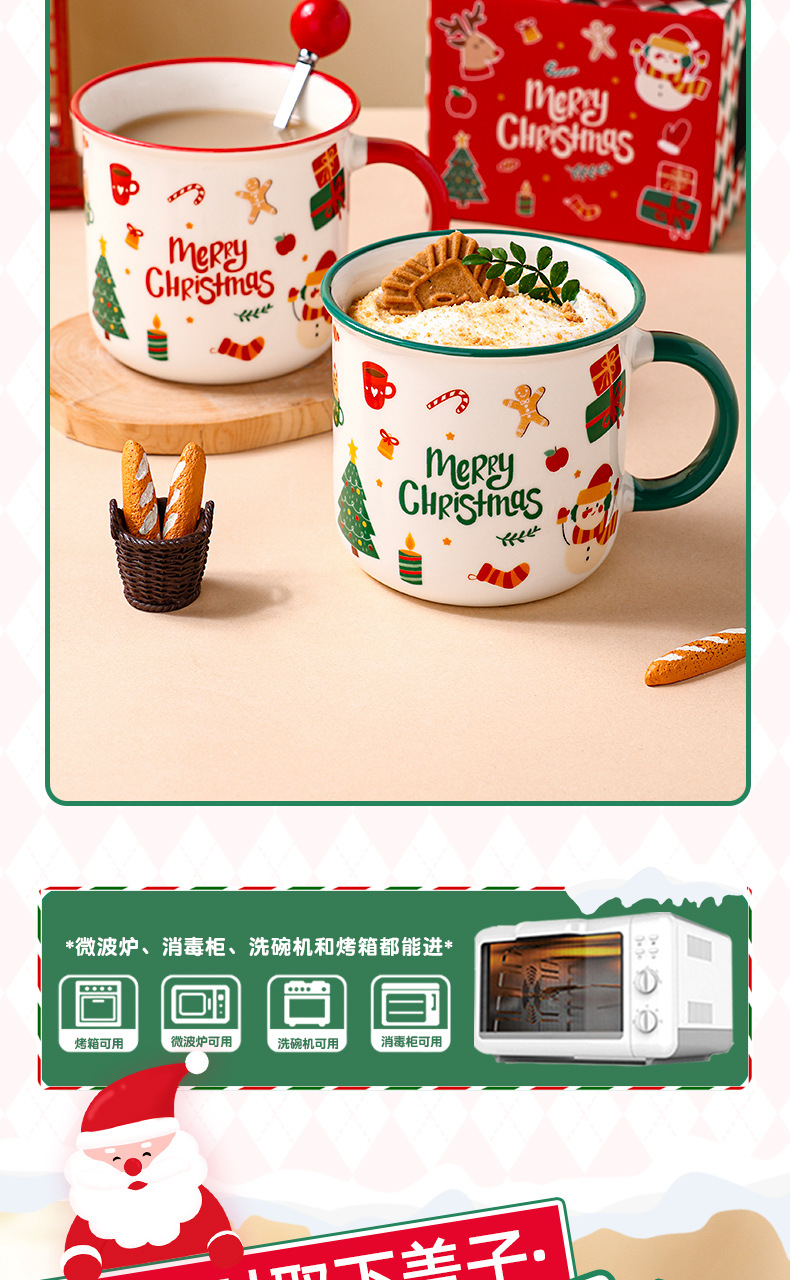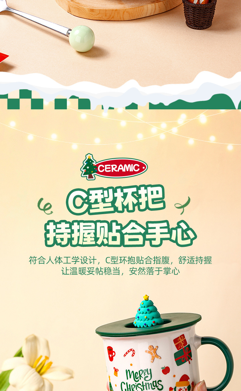 可爱圣诞节陶瓷水杯卡通马克杯公司开业活动礼品带盖杯子定制