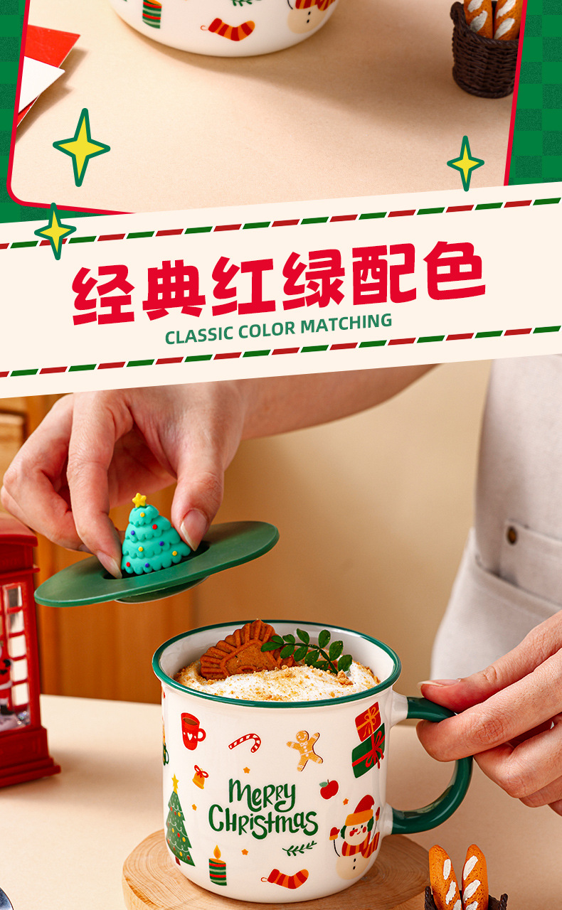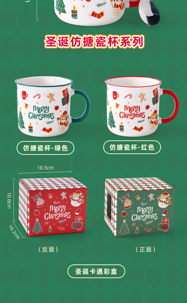 圣诞仿搪瓷杯红柄(merrychristmas)带硅胶盖勺