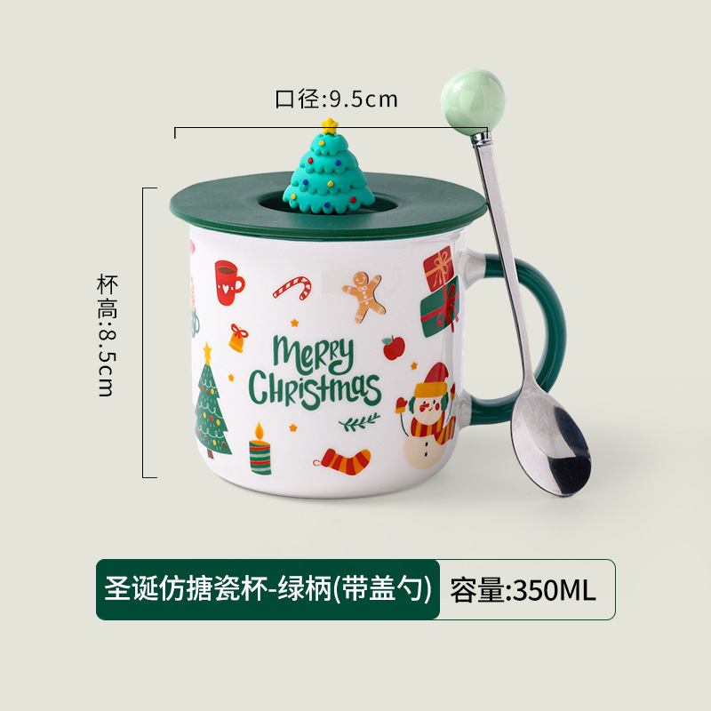 圣诞仿搪瓷杯墨绿柄(merrychristmas)带硅胶盖勺