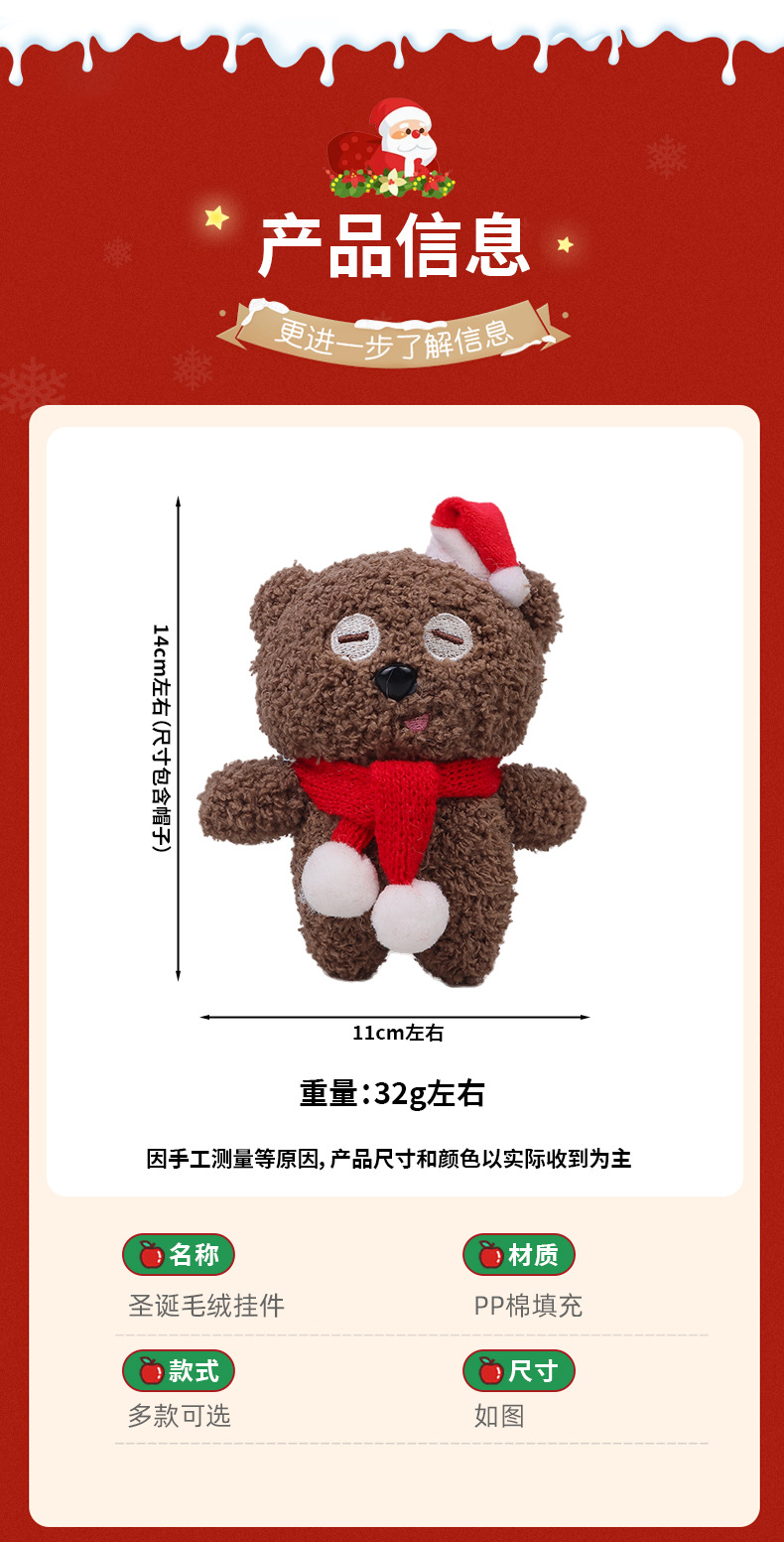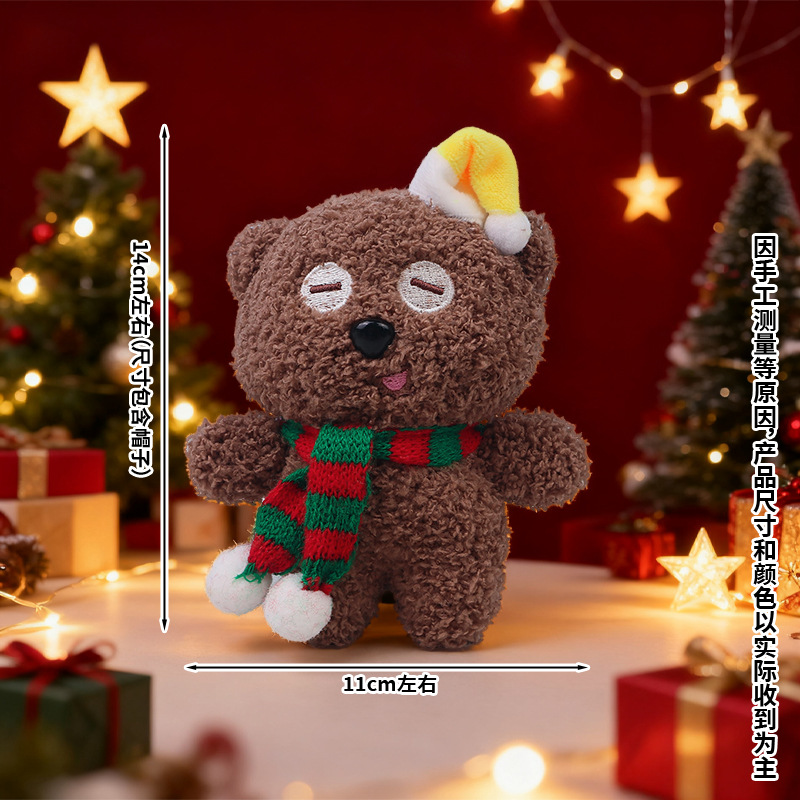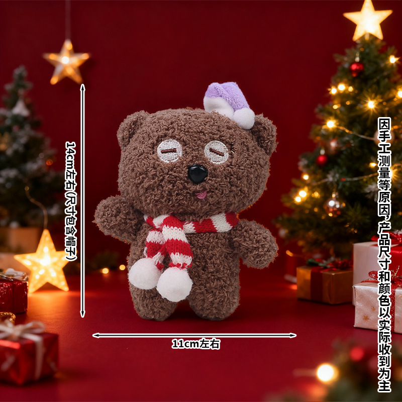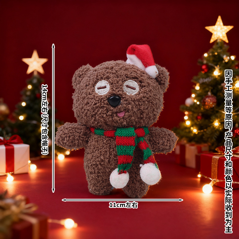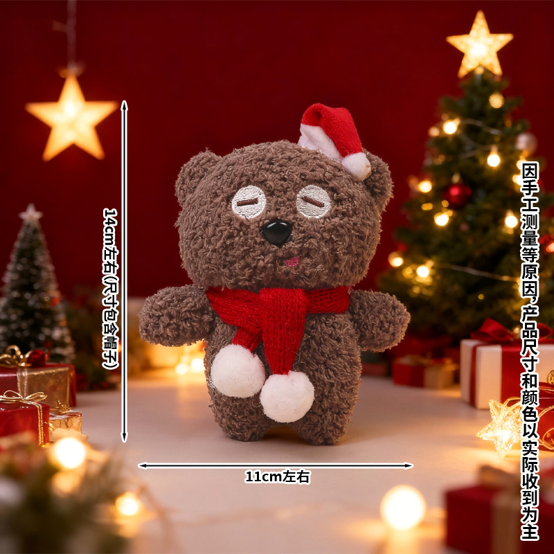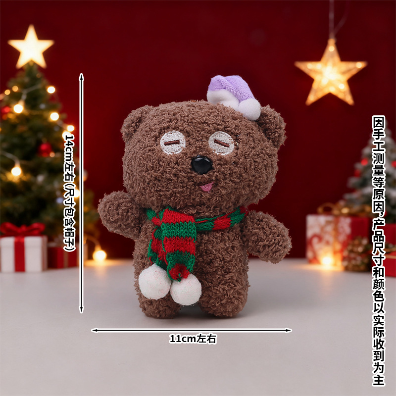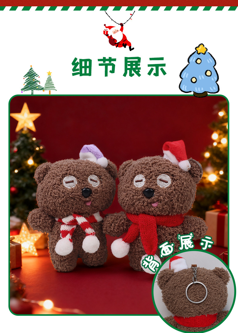 圣诞节睡帽小熊可爱毛绒玩偶钥匙扣背包挂件节日娃娃公仔礼品