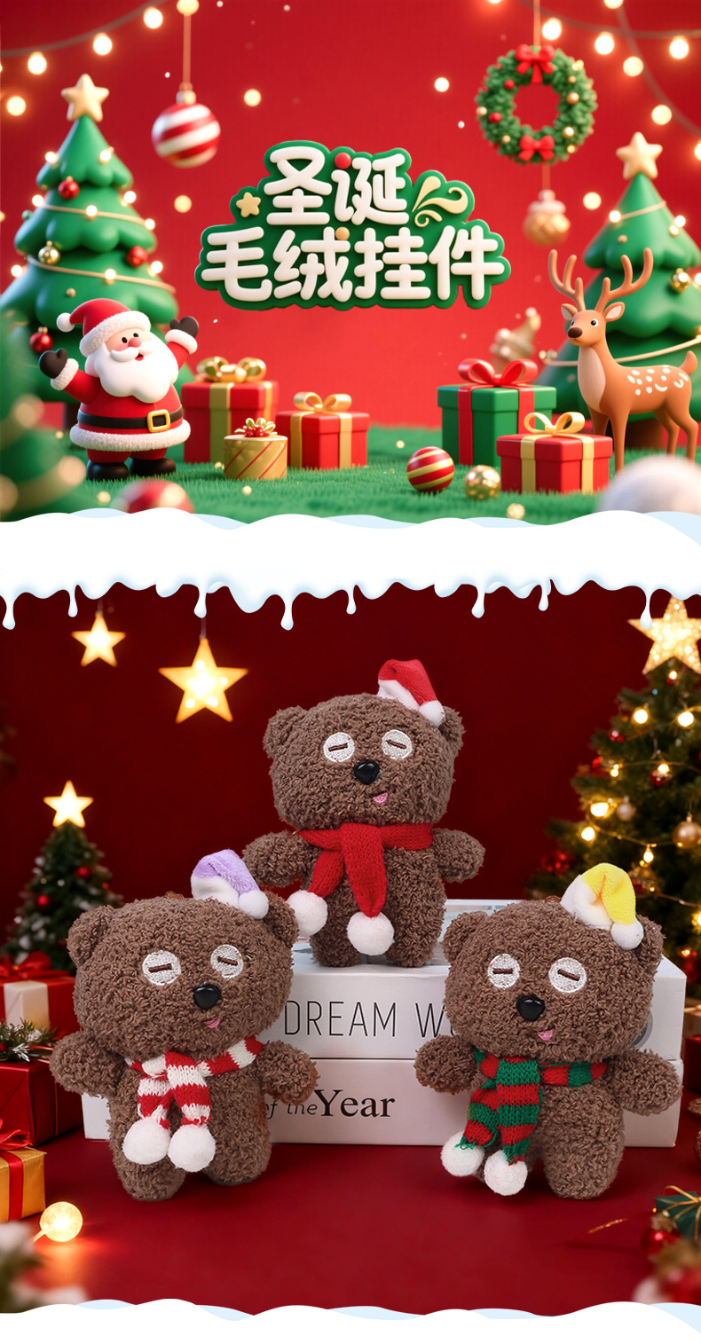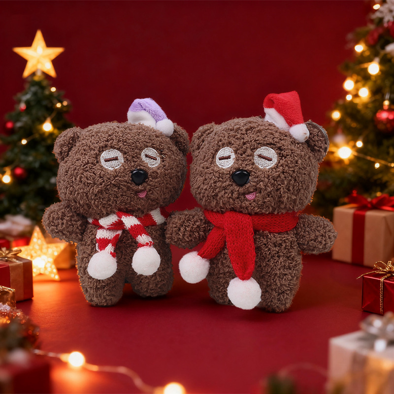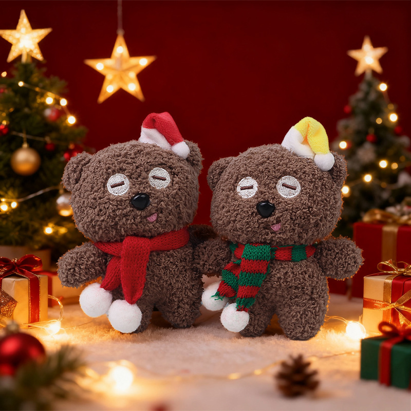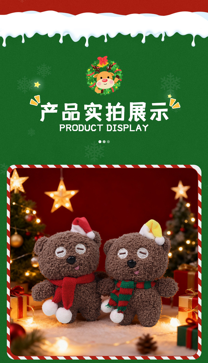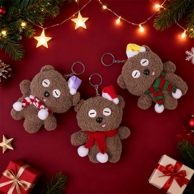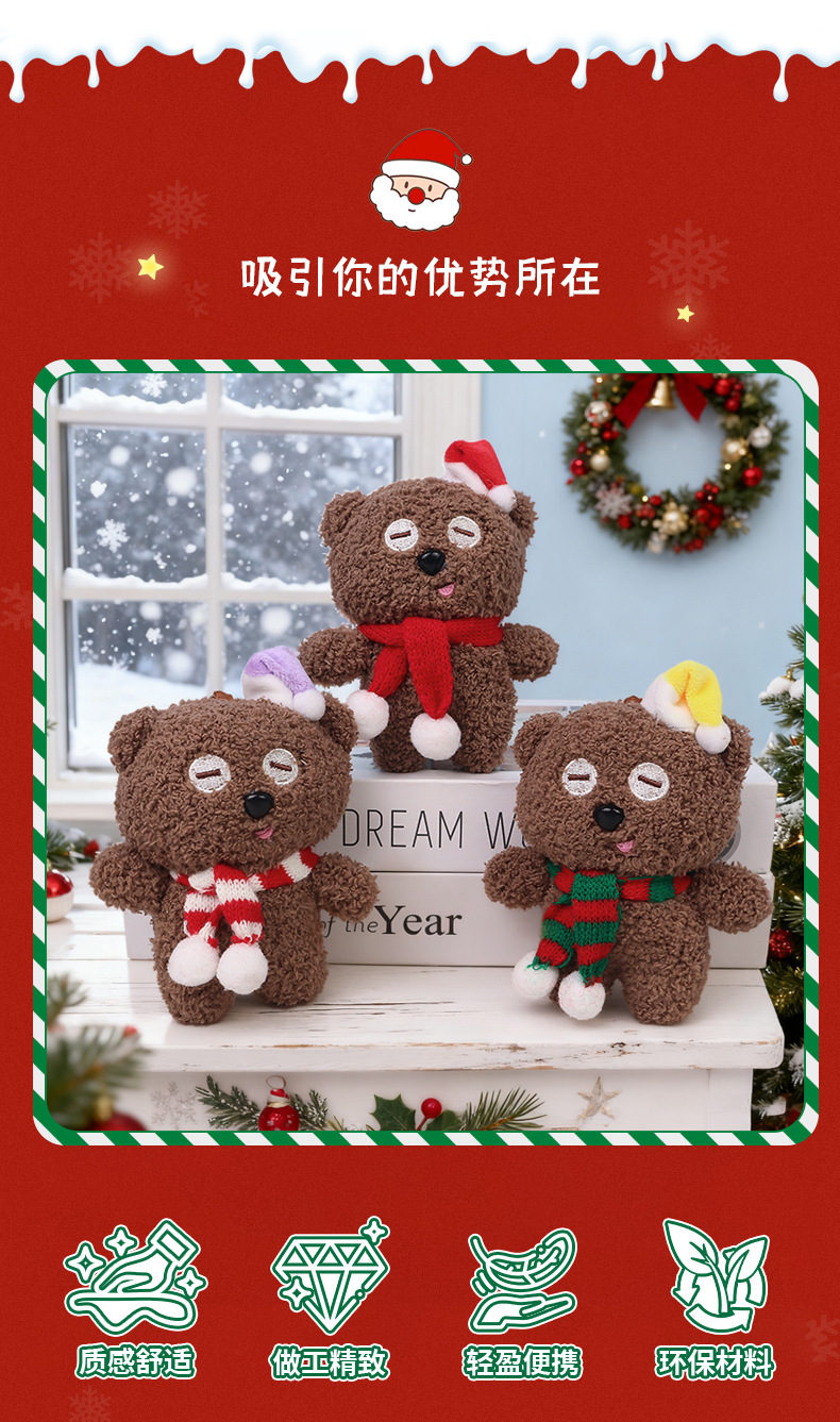 圣诞节睡帽小熊可爱毛绒玩偶钥匙扣背包挂件节日娃娃公仔礼品