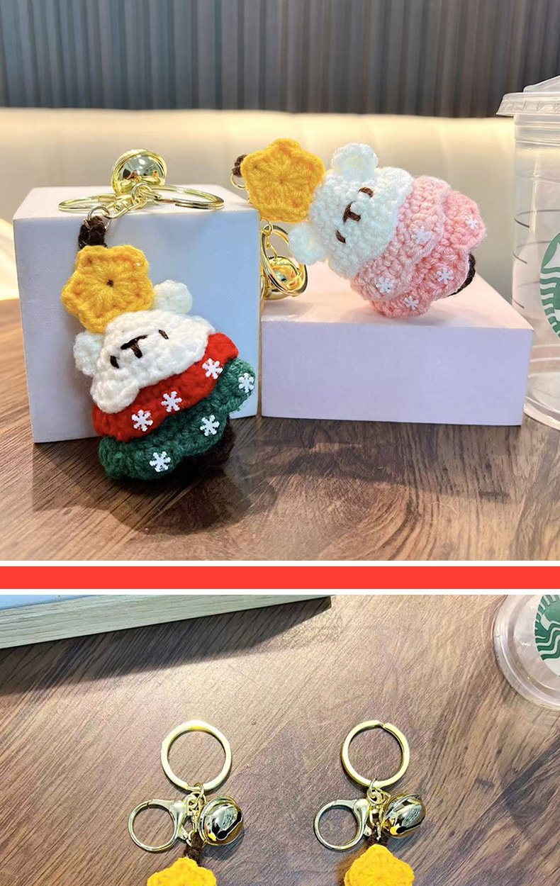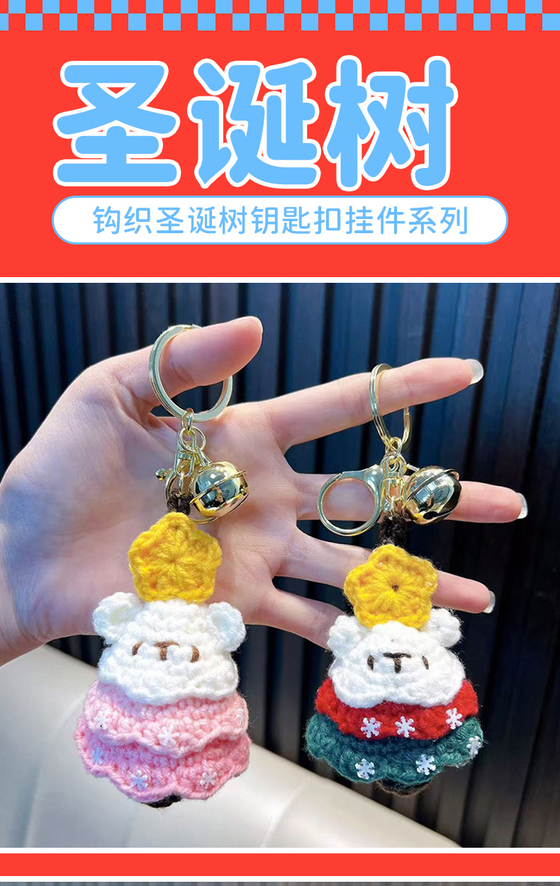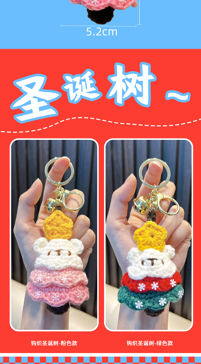 毛线钩织圣诞树钥匙扣圣诞节毛绒包包挂件小礼品情侣圣诞礼品