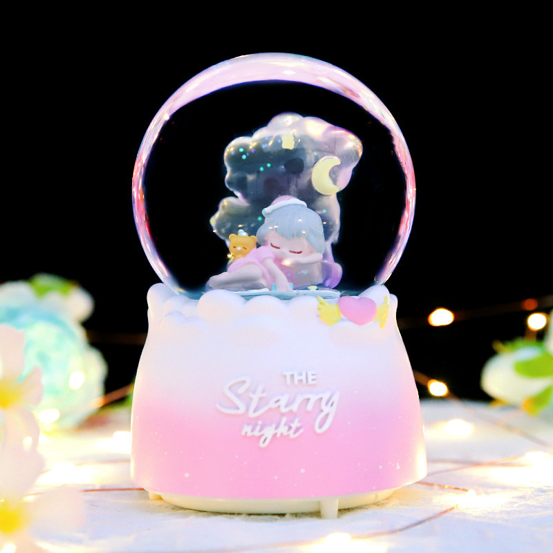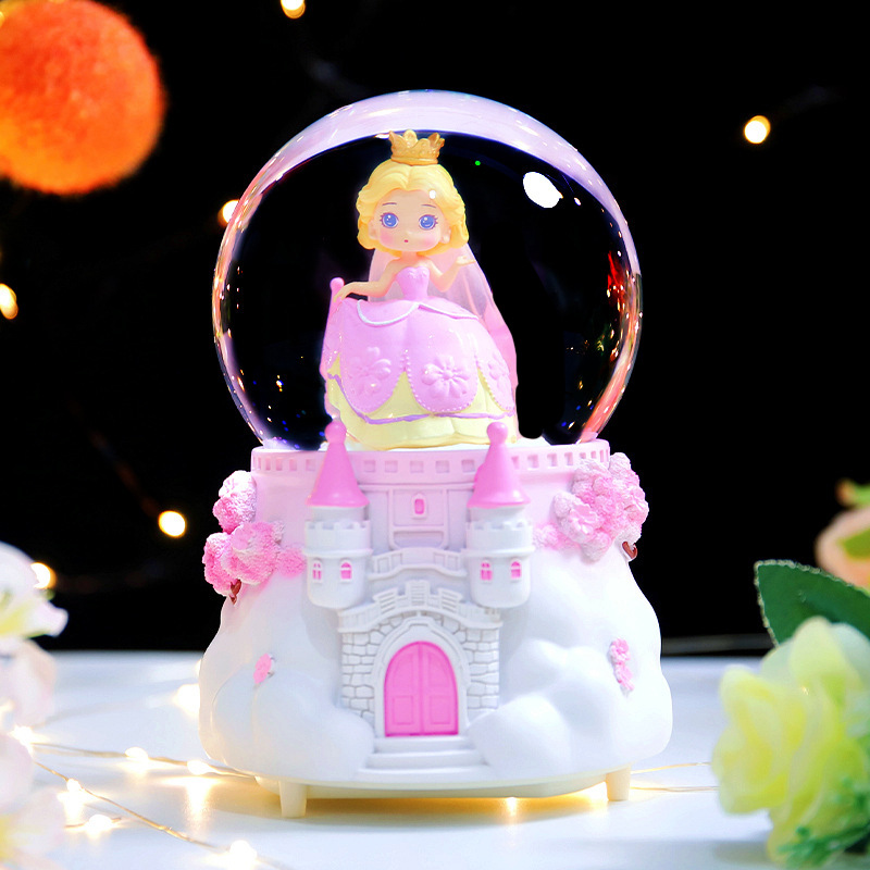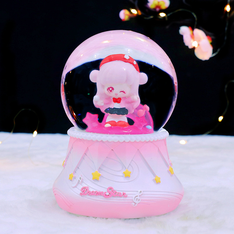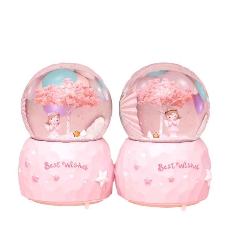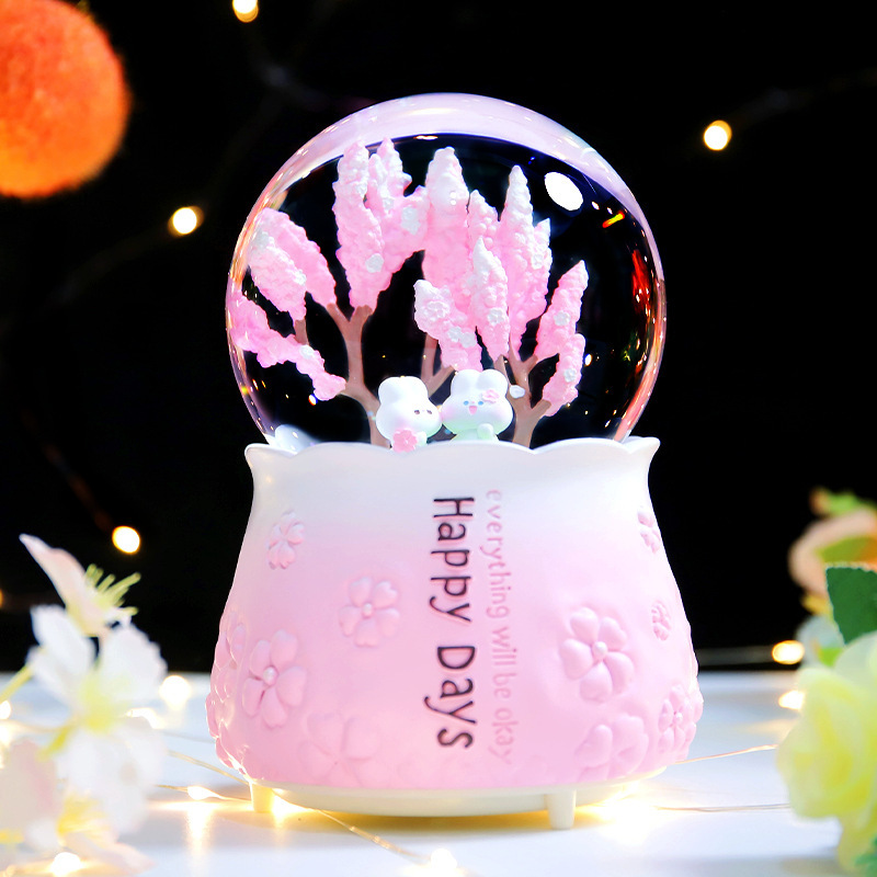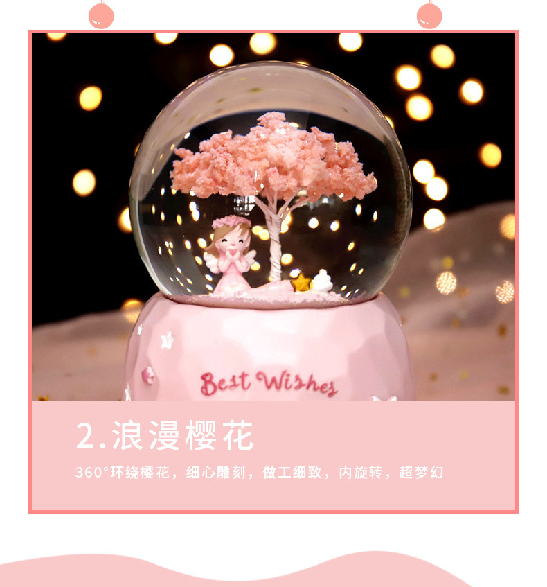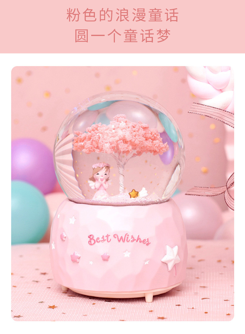 樱花少女水晶球粉色送女生礼物飘雪花八音盒七彩灯光摆件圣诞礼品