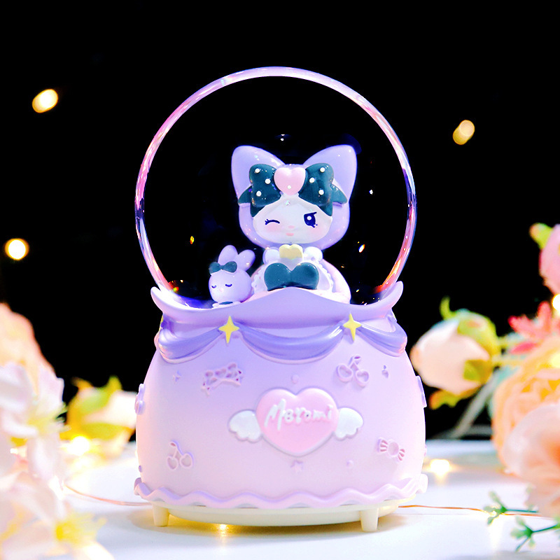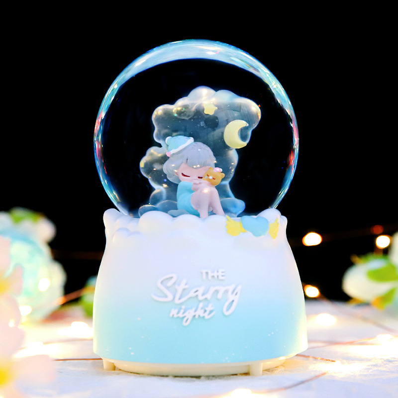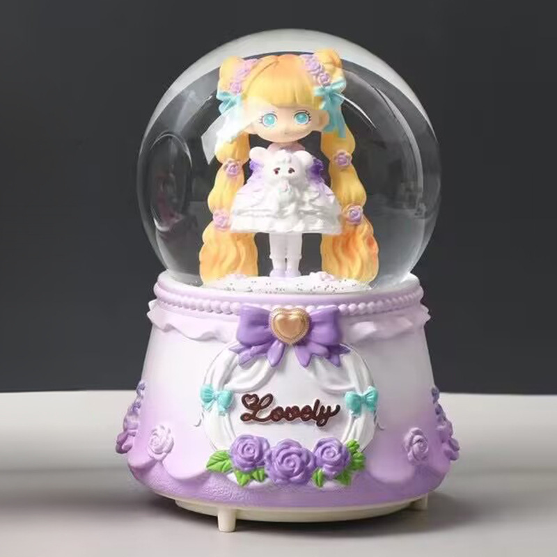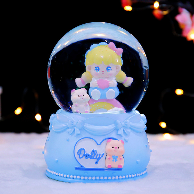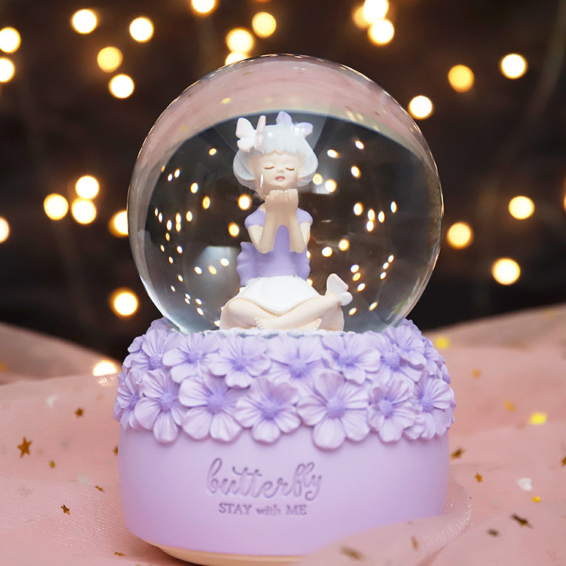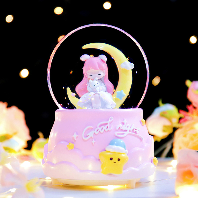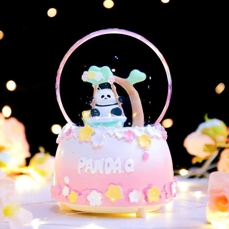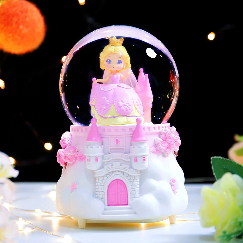 樱花少女水晶球粉色送女生礼物飘雪花八音盒七彩灯光摆件圣诞礼品