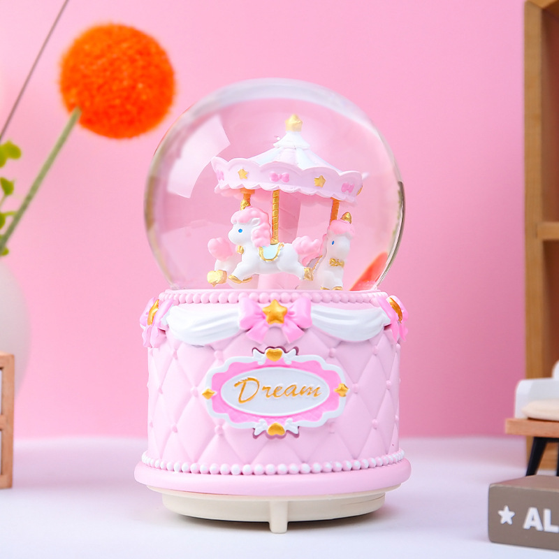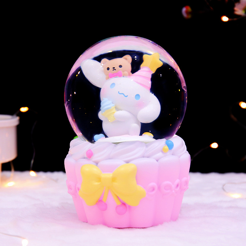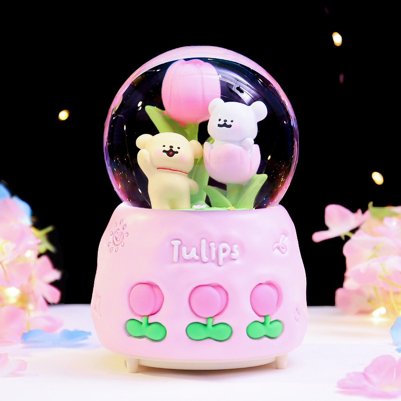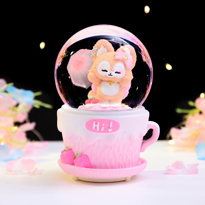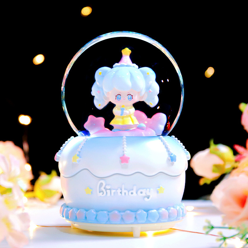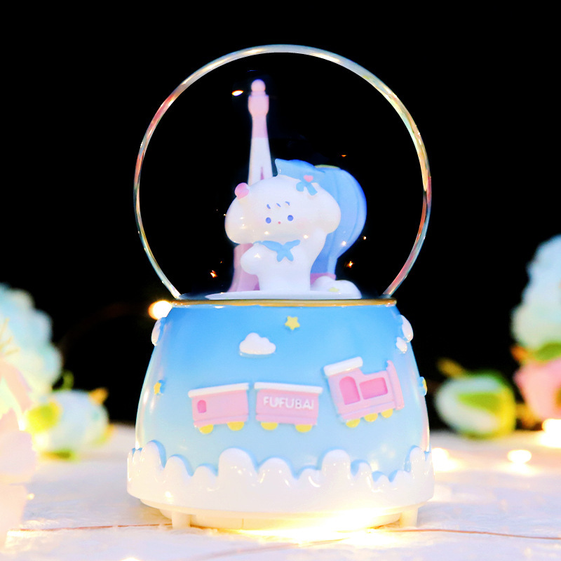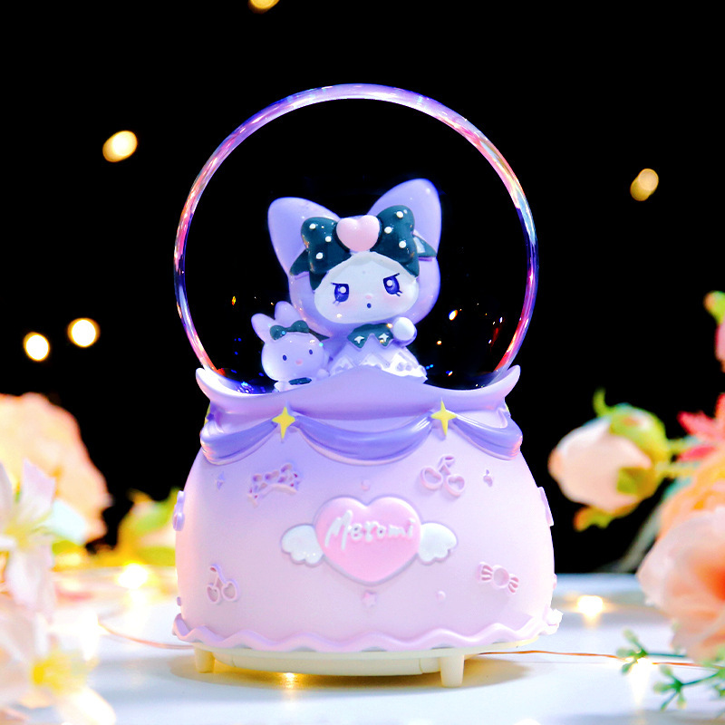 樱花少女水晶球粉色送女生礼物飘雪花八音盒七彩灯光摆件圣诞礼品