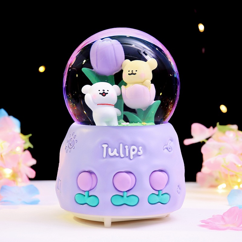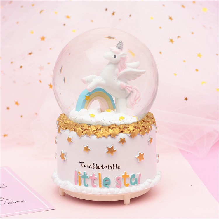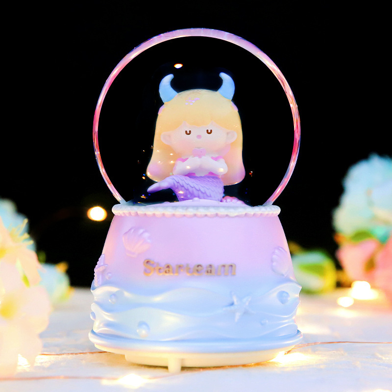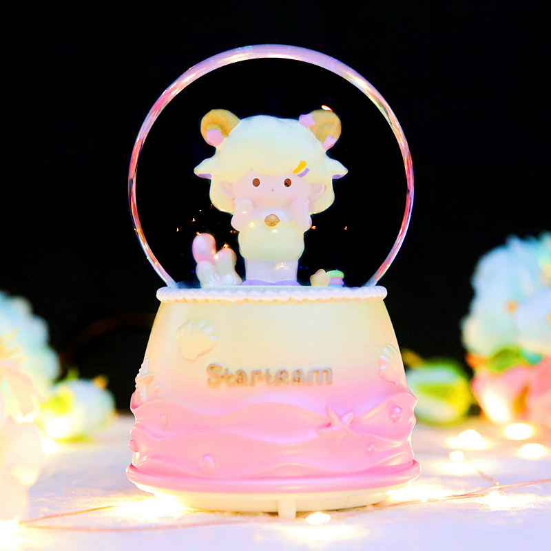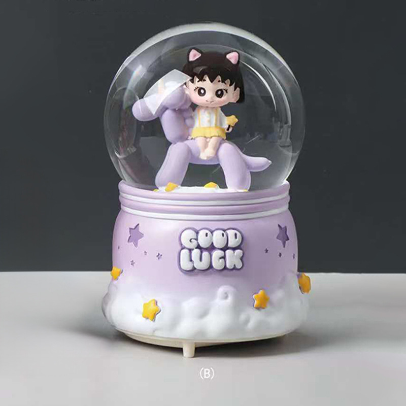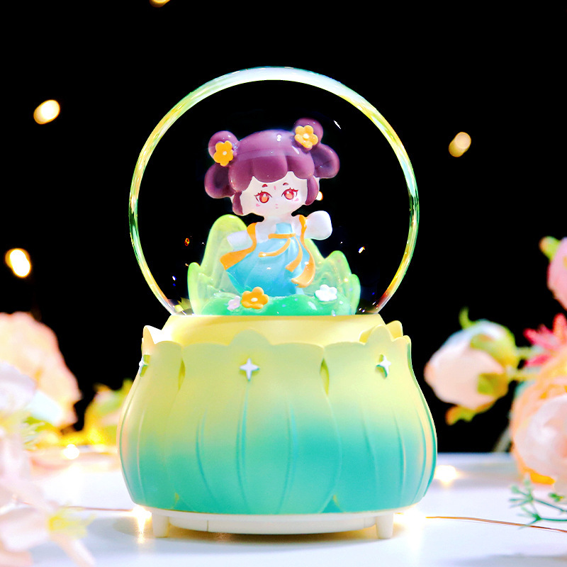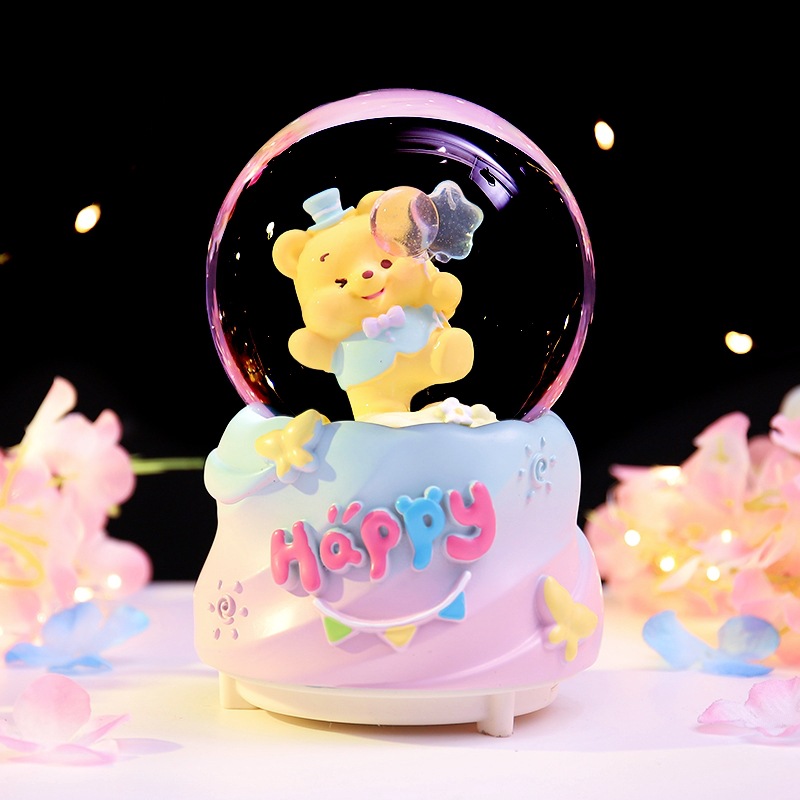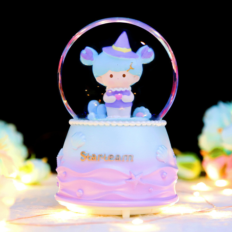 樱花少女水晶球粉色送女生礼物飘雪花八音盒七彩灯光摆件圣诞礼品