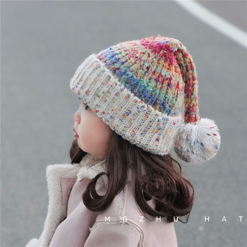 儿童帽子秋冬超萌可爱毛球套头针织帽男女宝宝保暖毛线圣诞帽子潮