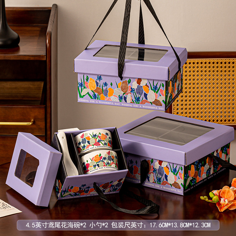 - 鸢尾花海4碗4勺2盘【精美礼盒】