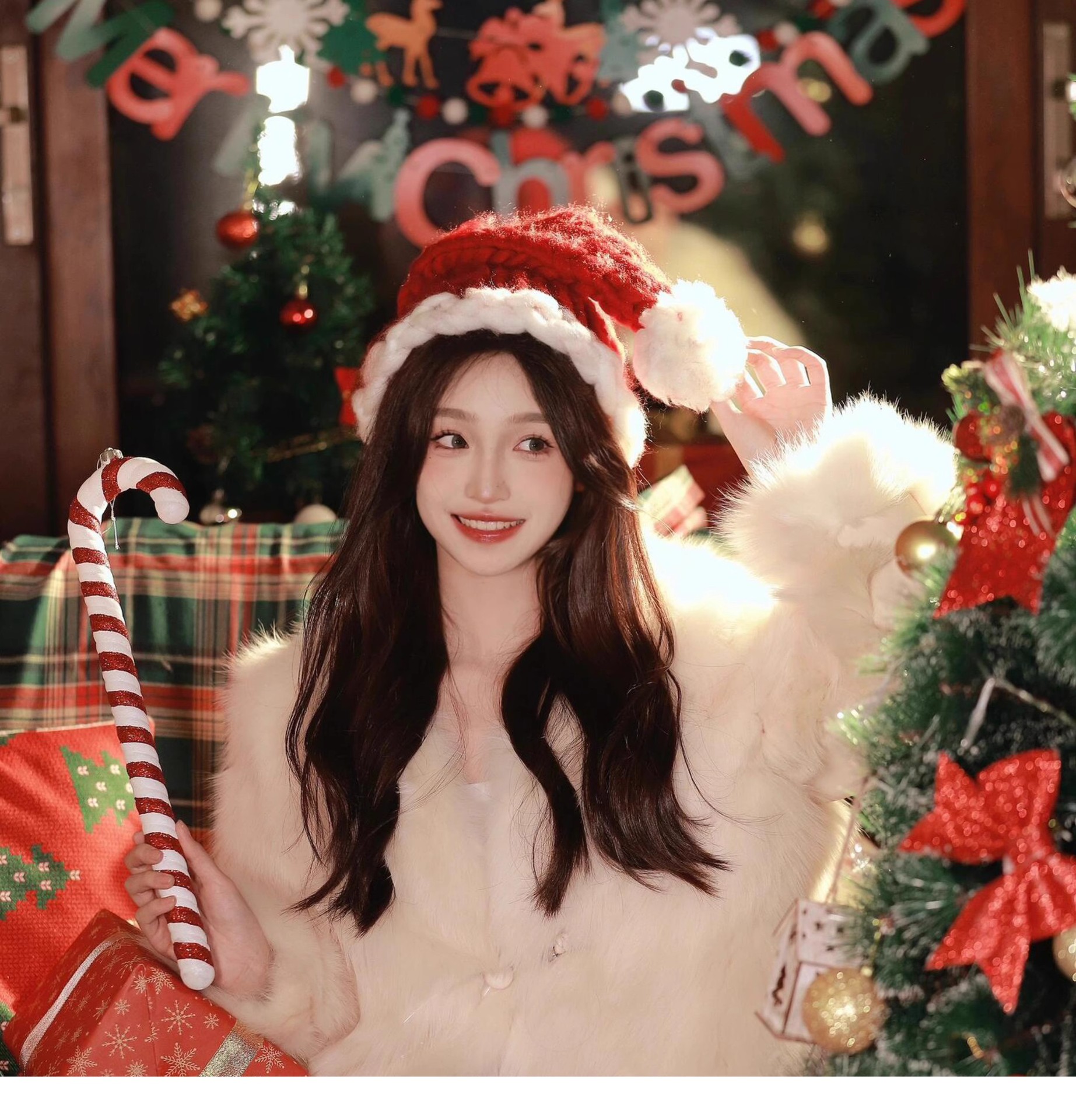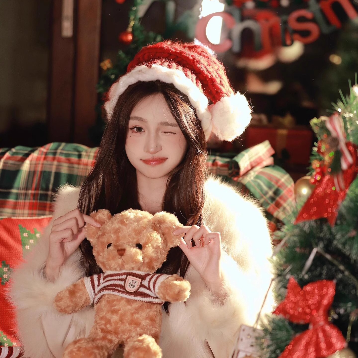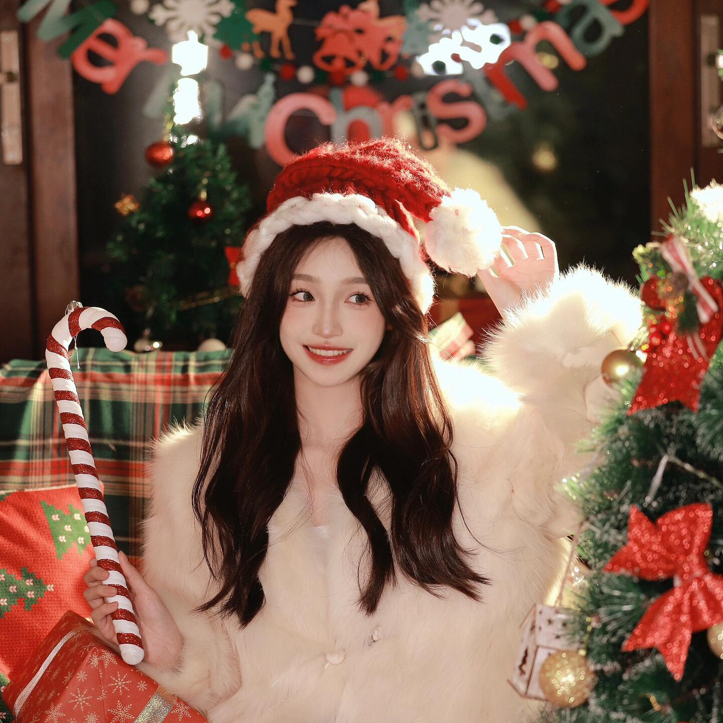 圣诞节装饰帽子女cos新年派对成人装扮头饰可爱保暖针织毛线帽