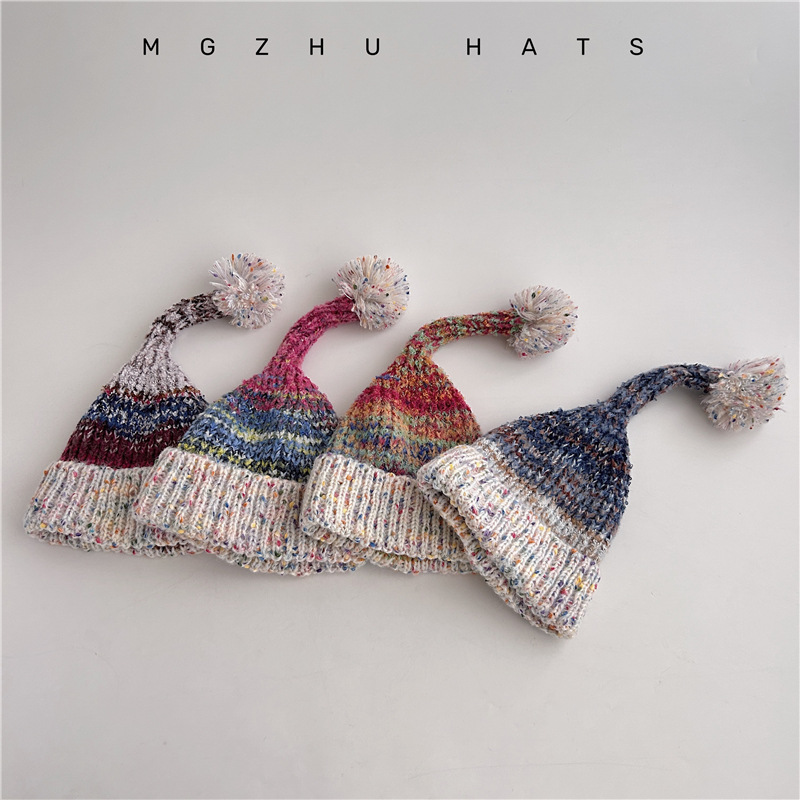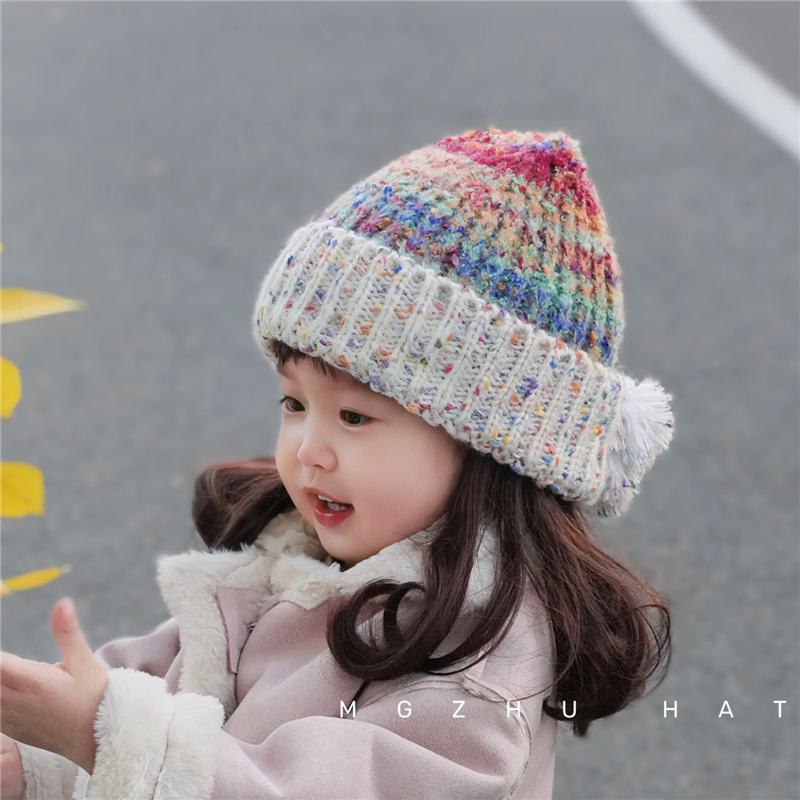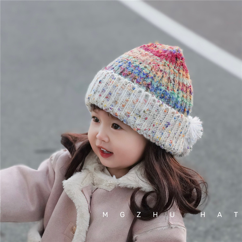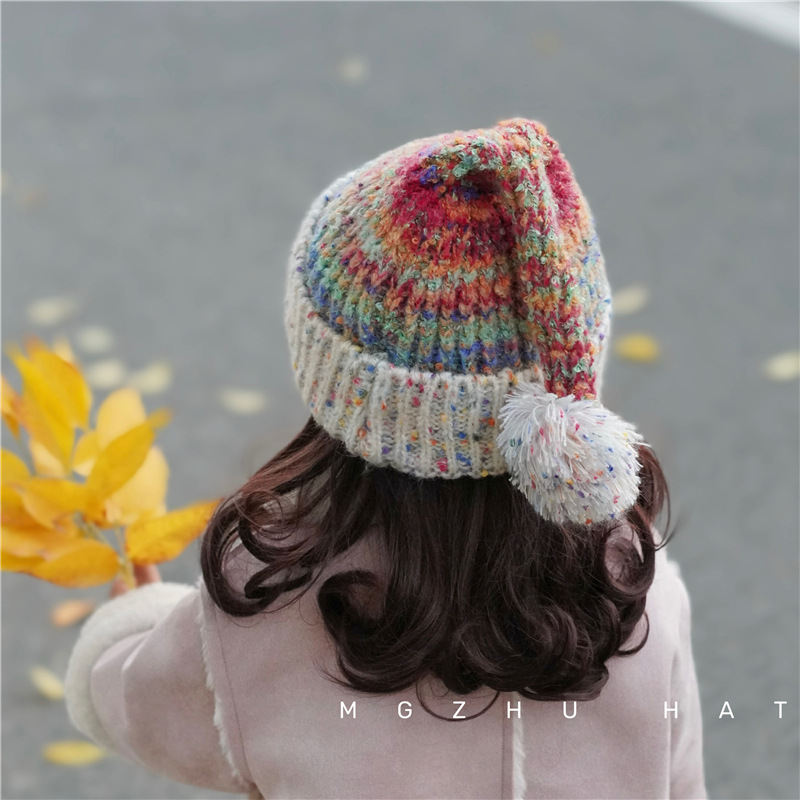 儿童帽子秋冬超萌可爱毛球套头针织帽男女宝宝保暖毛线圣诞帽子潮