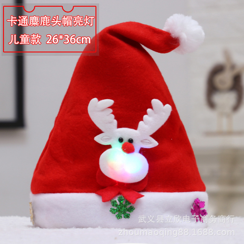 2025圣诞帽圣诞节装饰品儿童成人雪人老人鹿红色发光鹿角装饰装扮