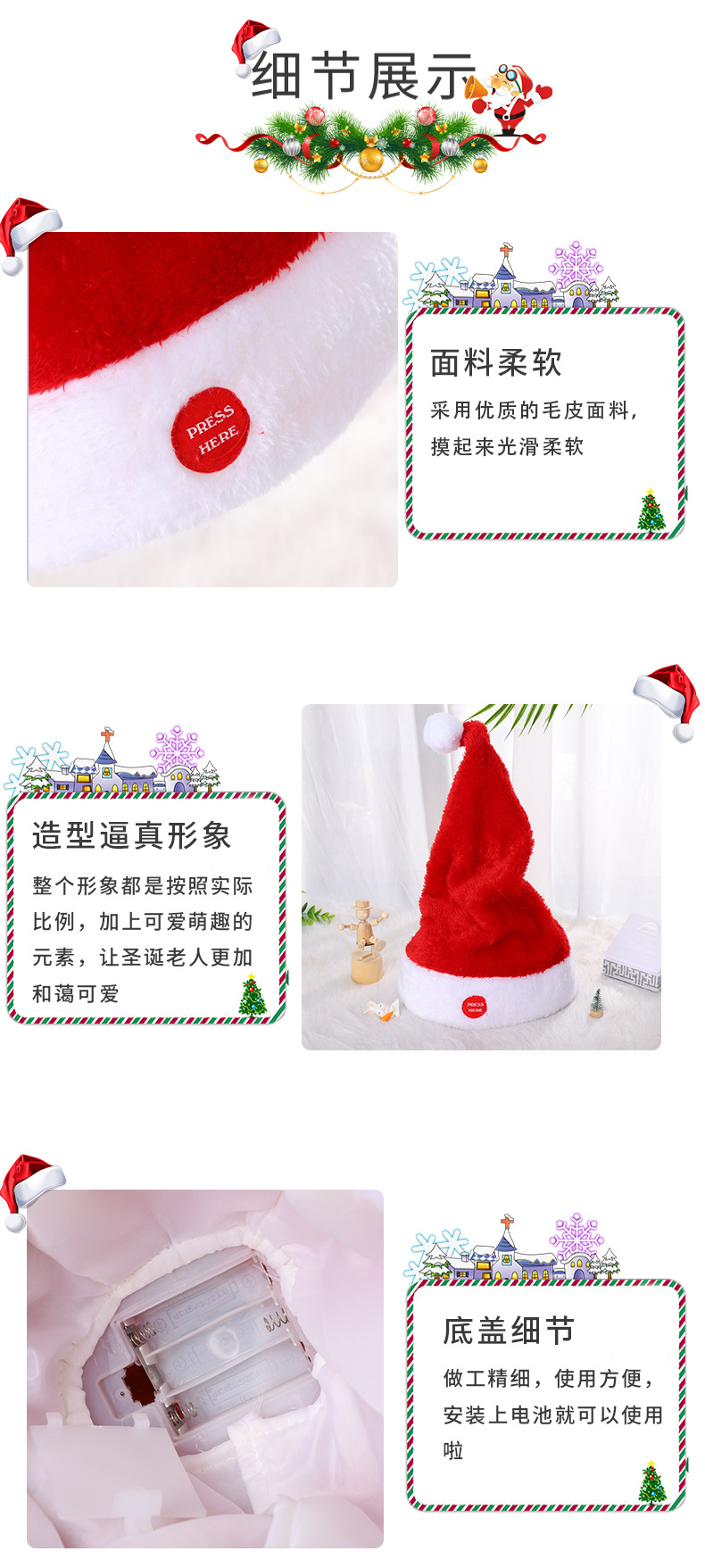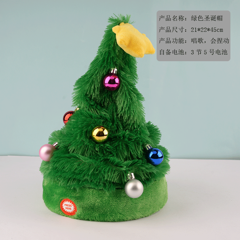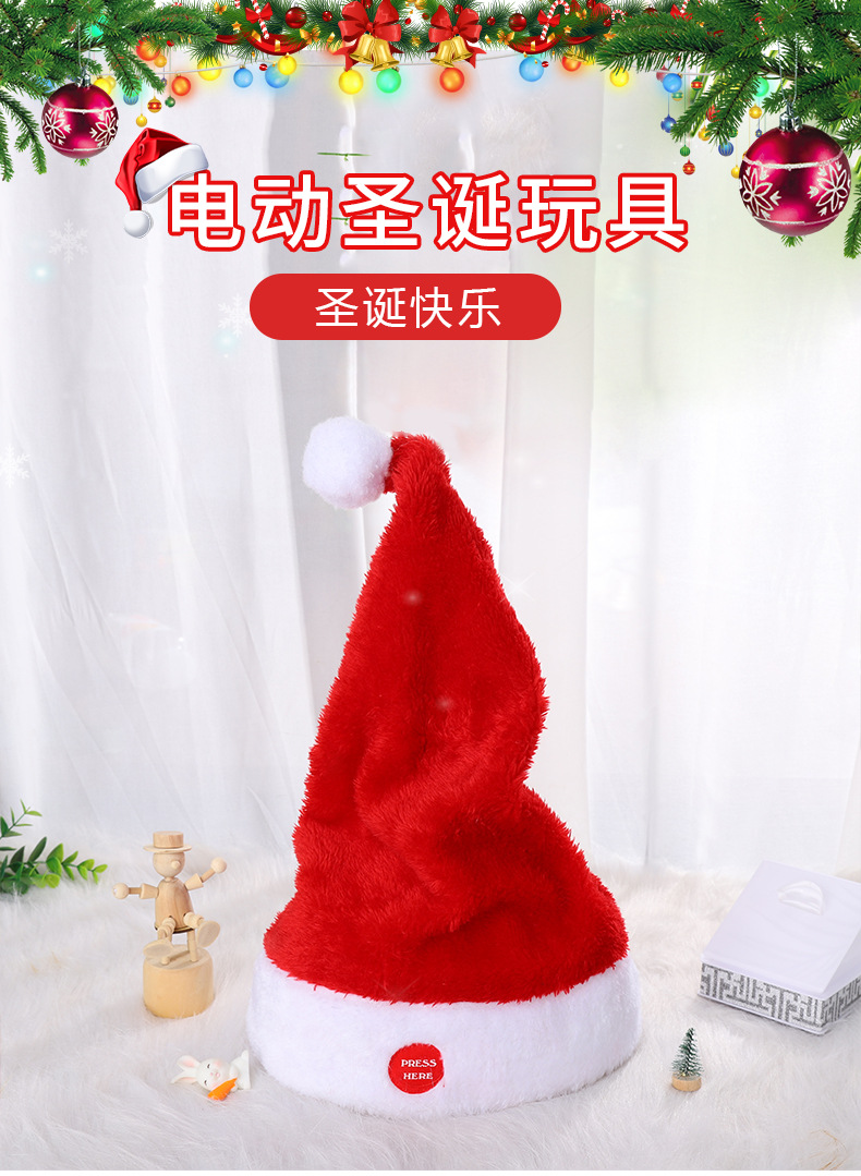 电动音乐圣诞帽子毛绒电动玩具会摆动的帽子圣诞装饰品圣诞节礼物