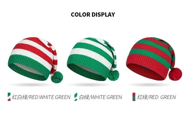 圣诞条纹帽-红白绿色