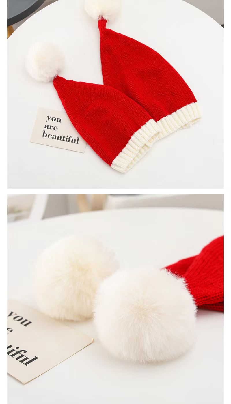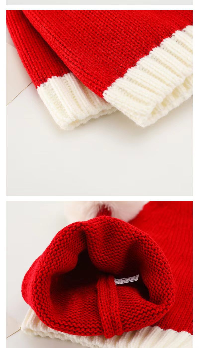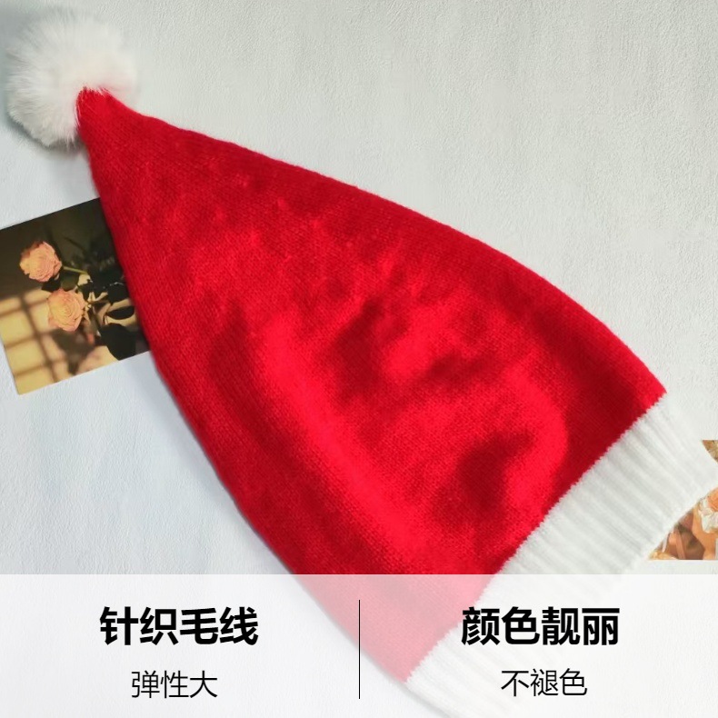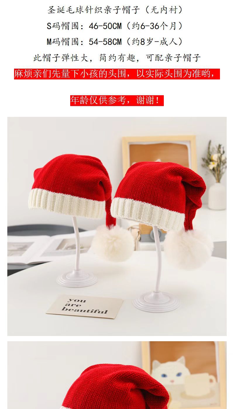 亲子针织圣诞帽冬季红色帽子圣诞节装饰帽子圣诞老人毛线帽子