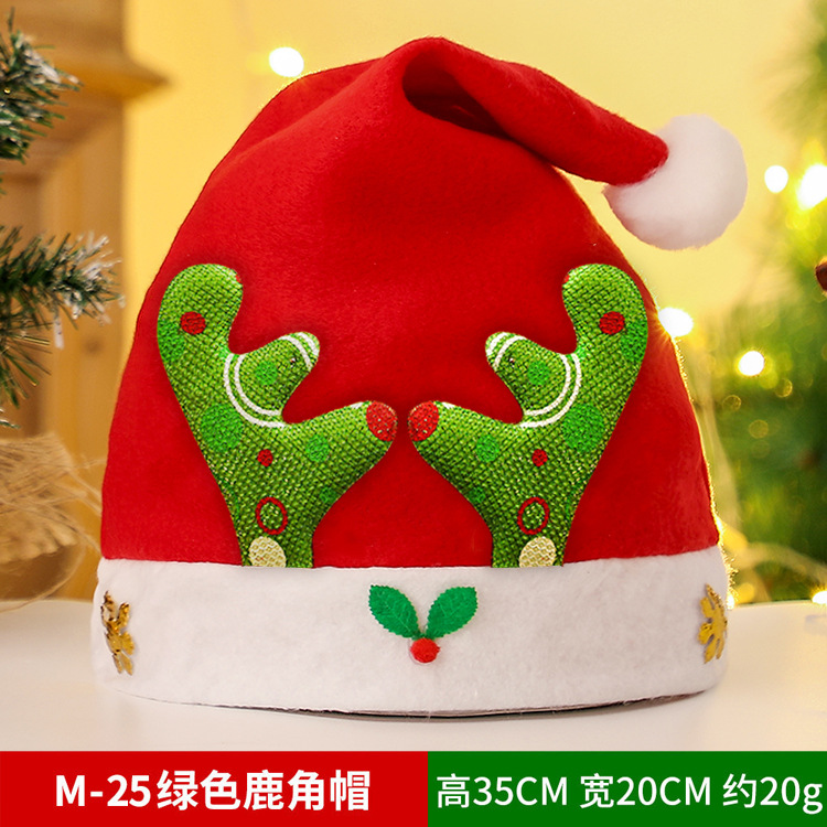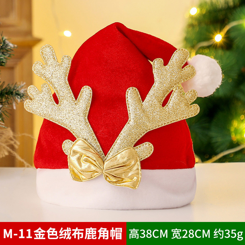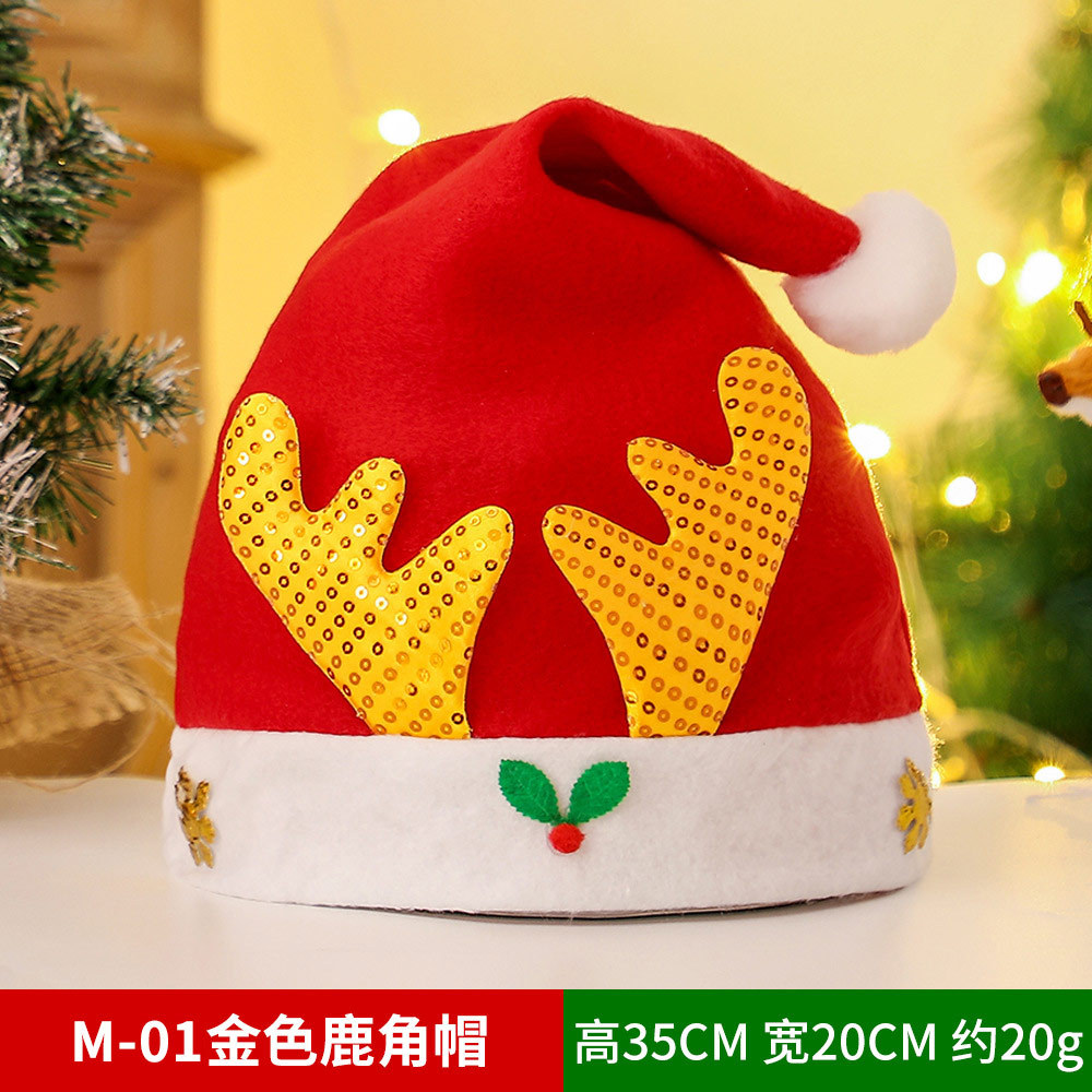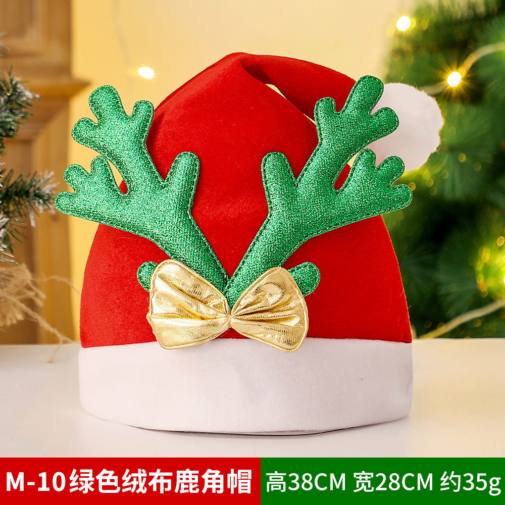 金色鹿角圣诞帽无纺布帽红色绿鹿角儿童成人圣诞节装饰装扮帽礼物