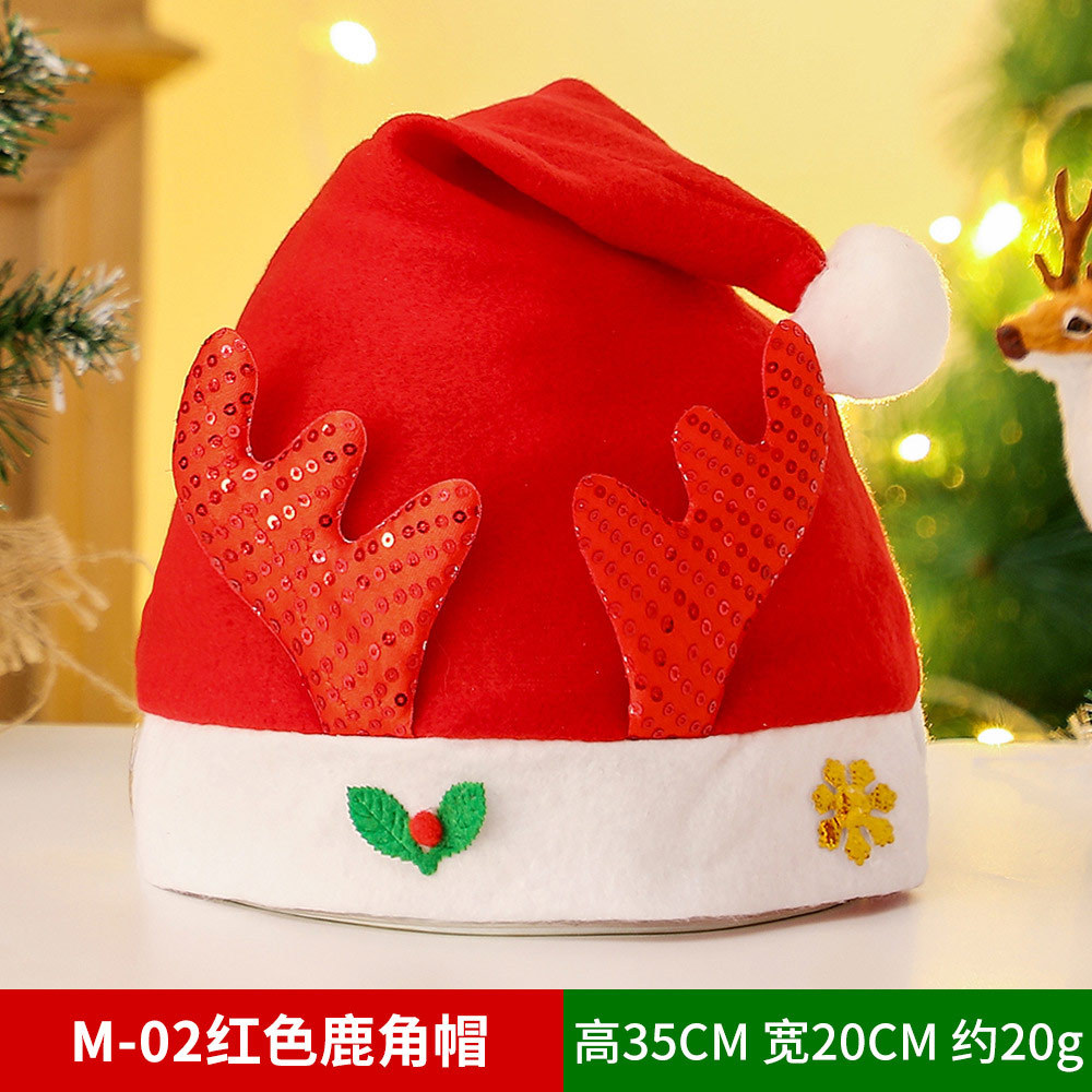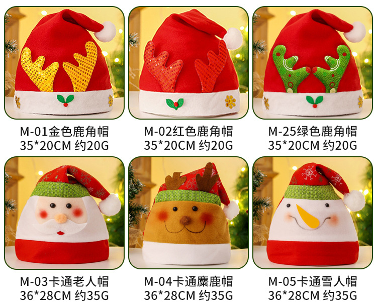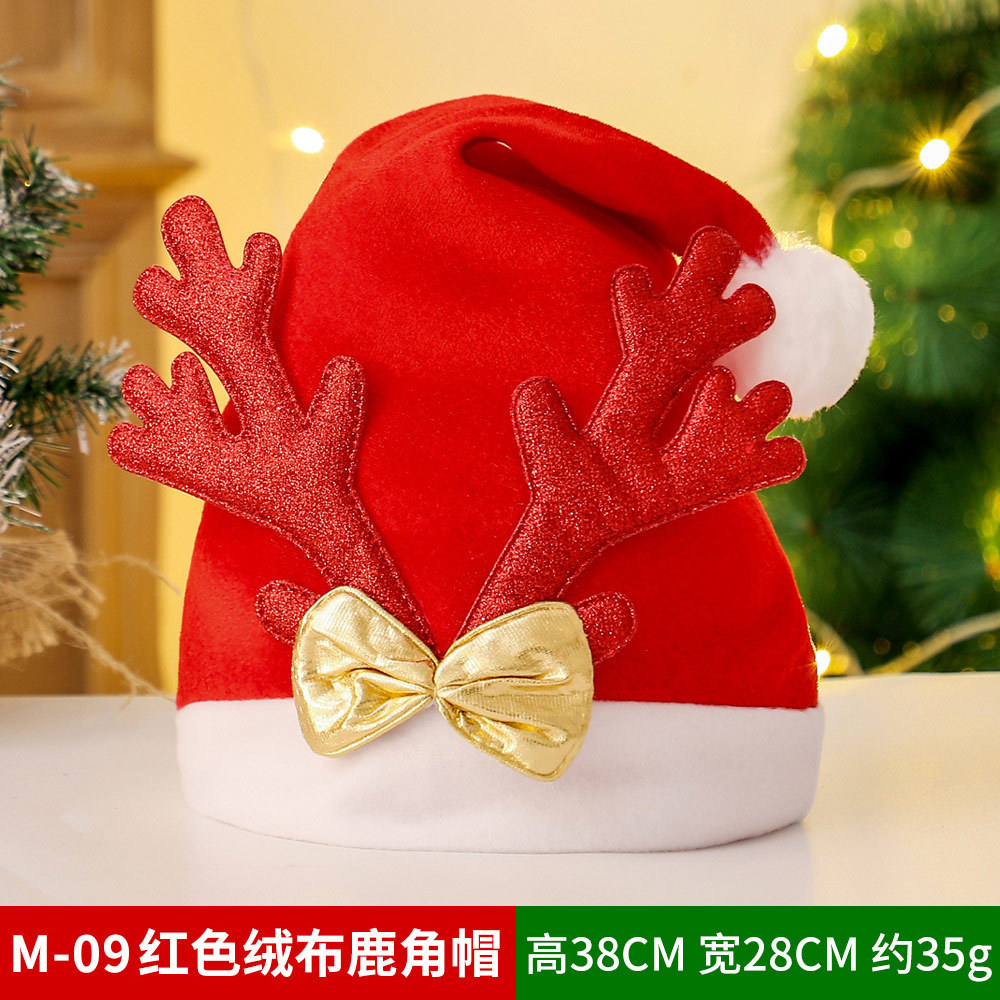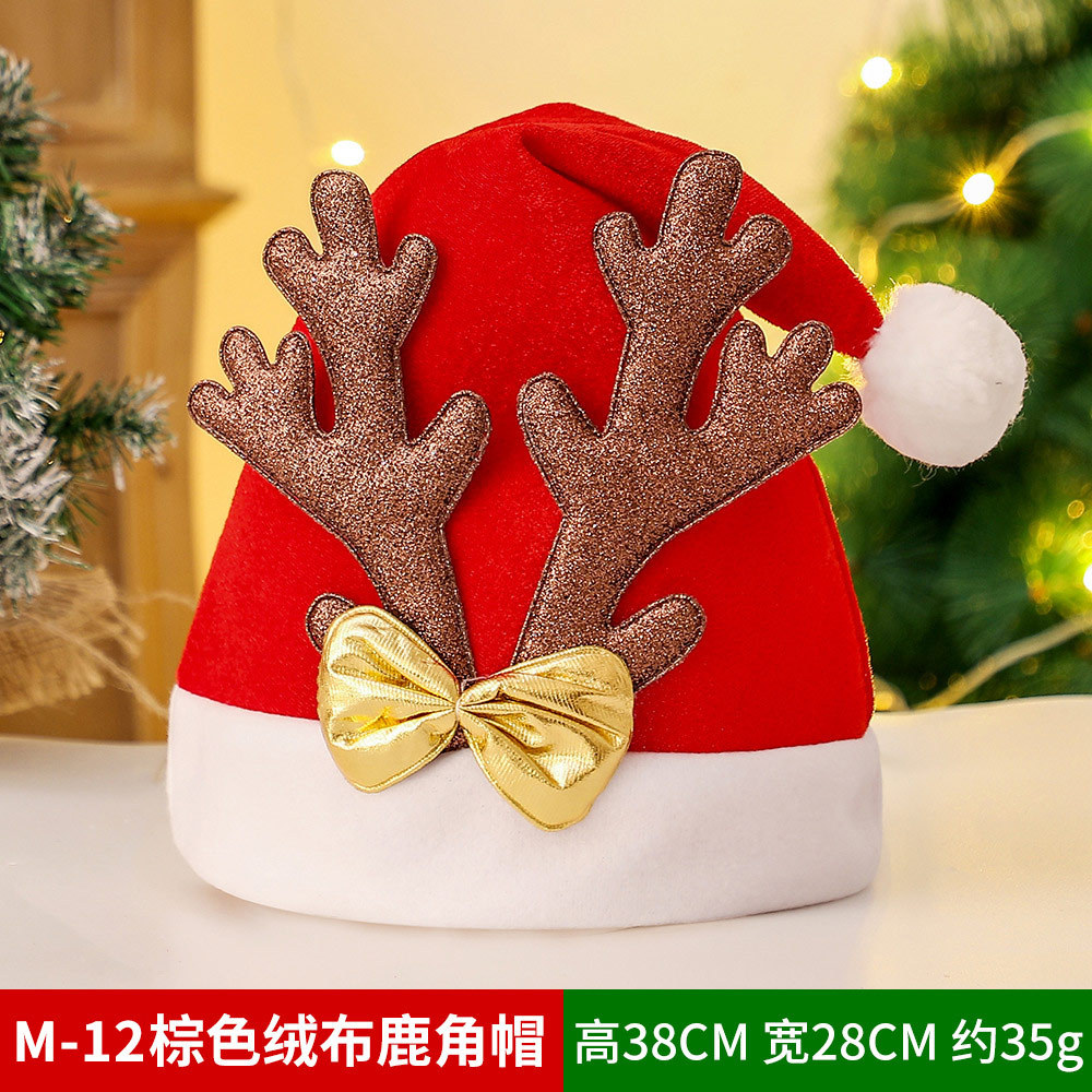 金色鹿角圣诞帽无纺布帽红色绿鹿角儿童成人圣诞节装饰装扮帽礼物