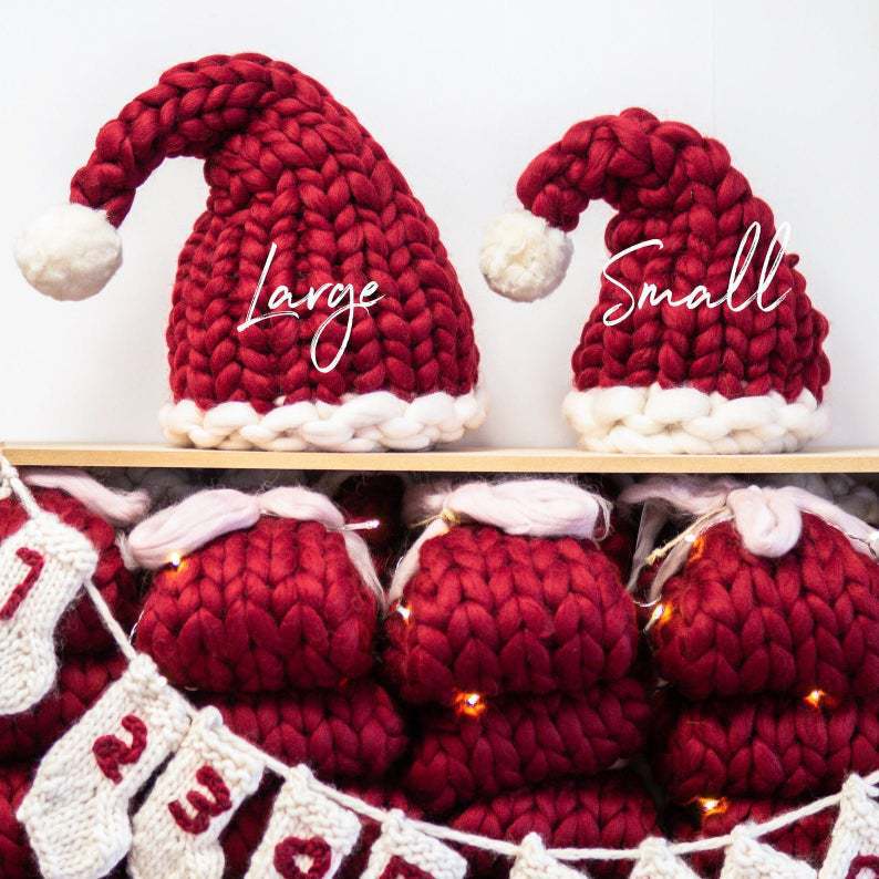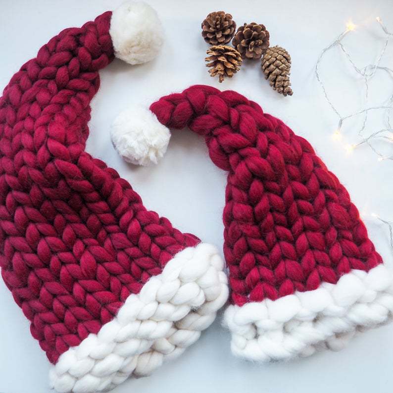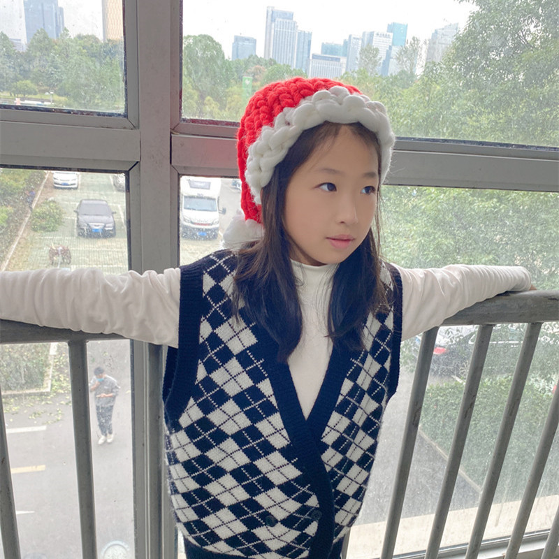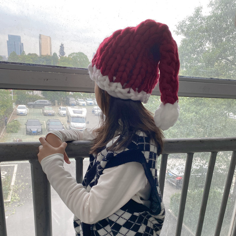 圣诞帽子婴幼儿手工编织粗毛线帽亲子帽长尾巴帽男女童宝宝针织帽