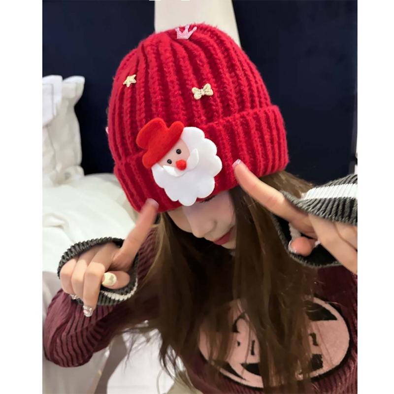 新款圣诞帽手工毛线帽子女网红可爱冬季显脸小加厚保暖针织帽