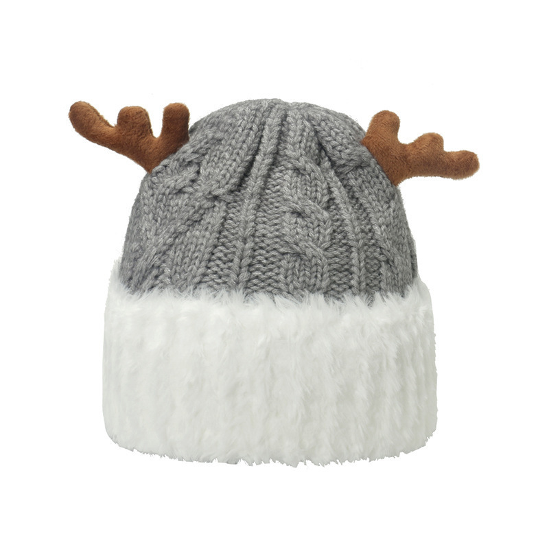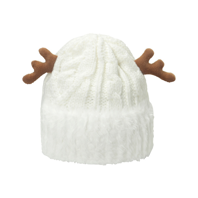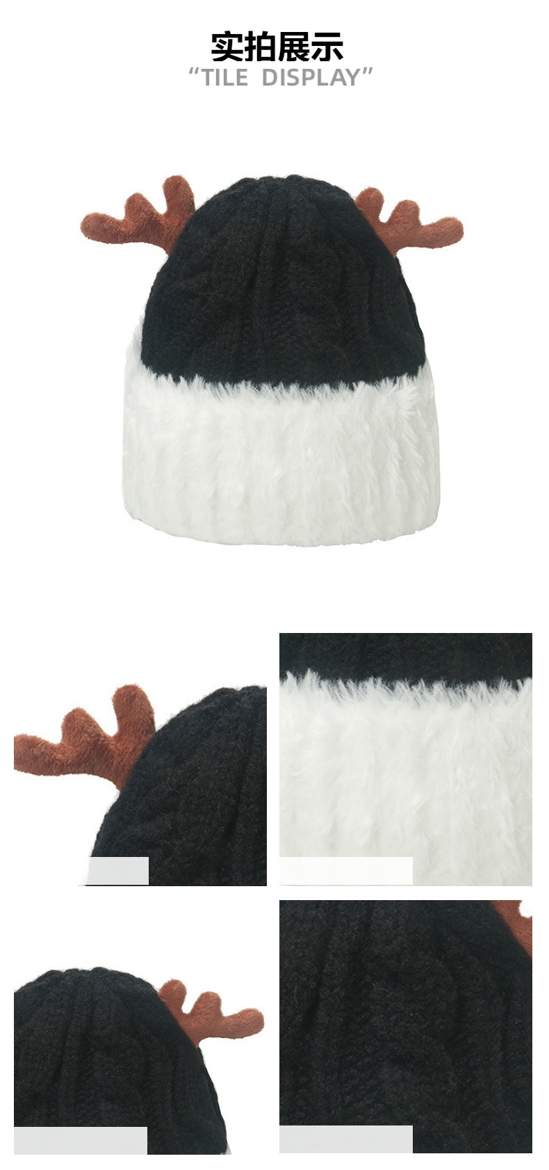 圣诞帽子秋冬新款针织帽可爱超萌套头帽保暖鹿角毛绒针织帽女