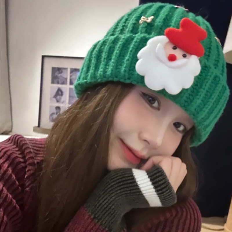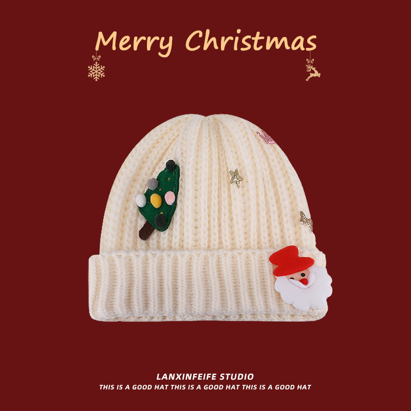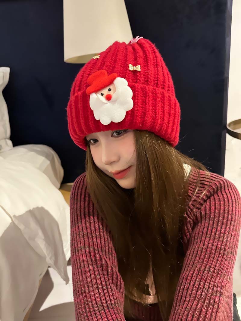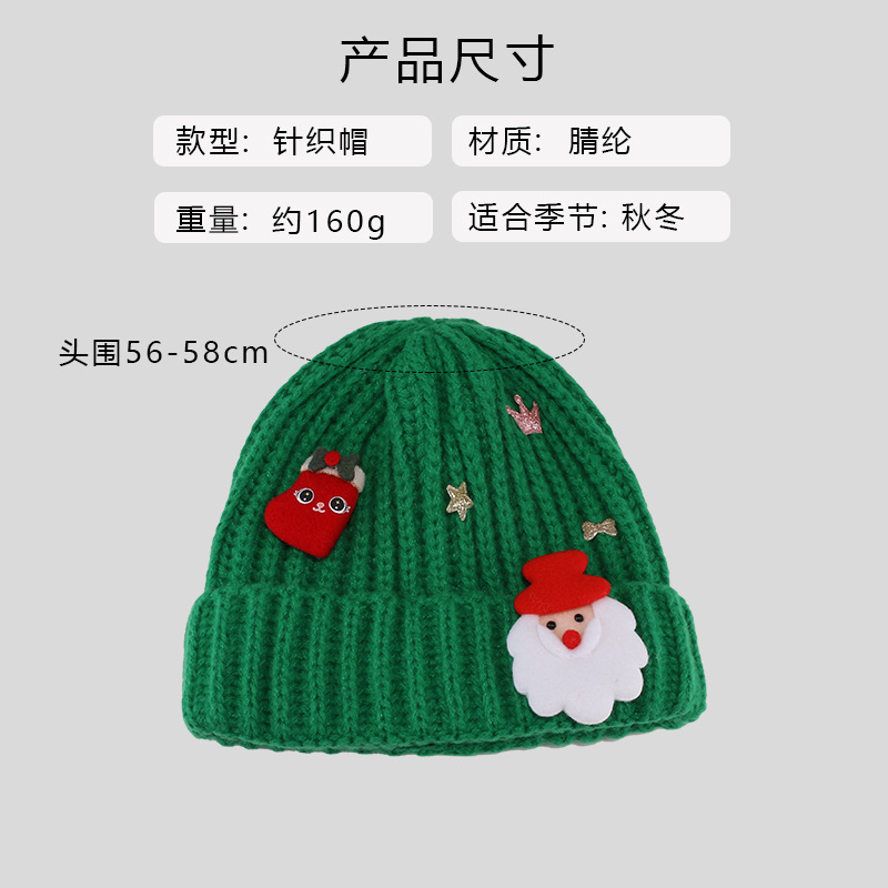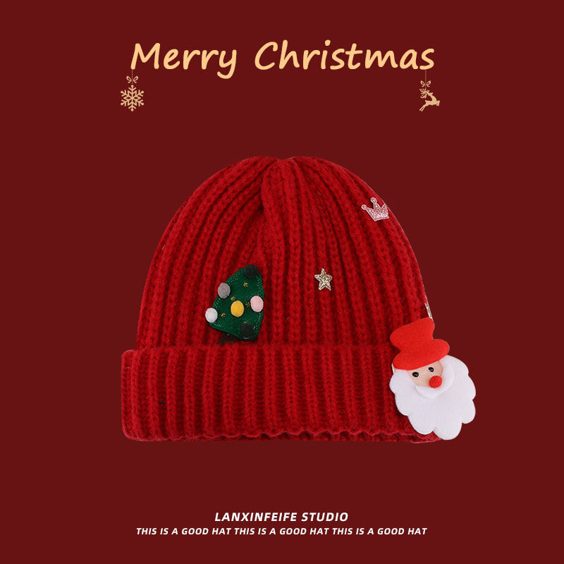 新款圣诞帽手工毛线帽子女网红可爱冬季显脸小加厚保暖针织帽