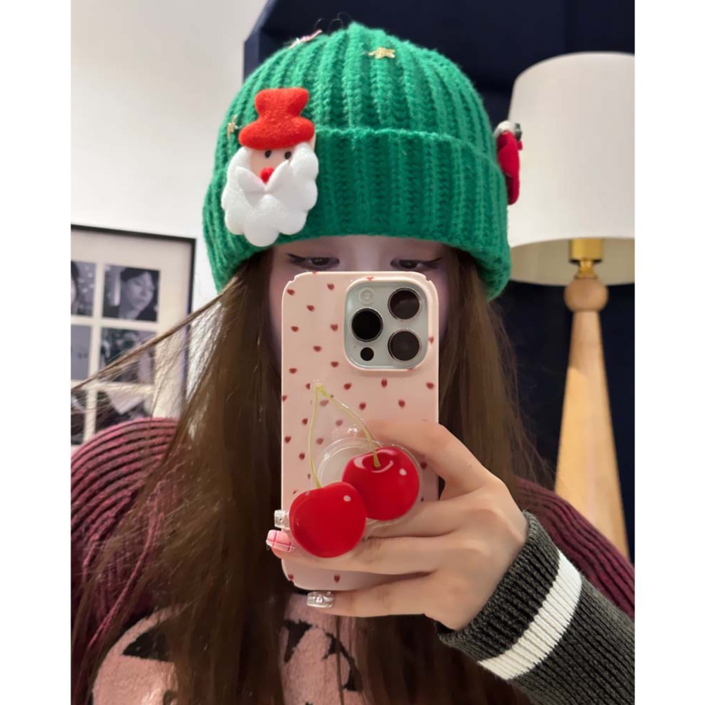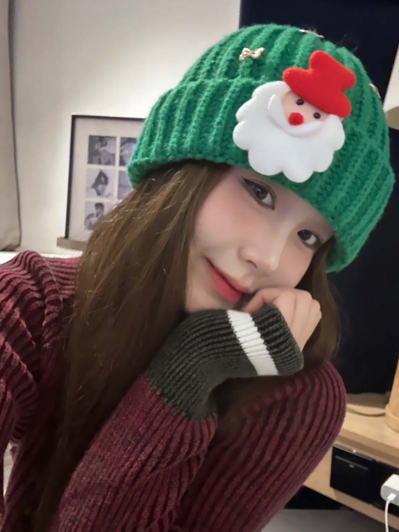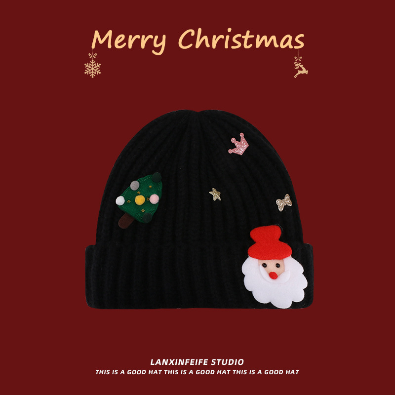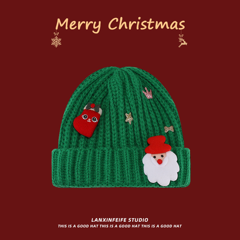 新款圣诞帽手工毛线帽子女网红可爱冬季显脸小加厚保暖针织帽