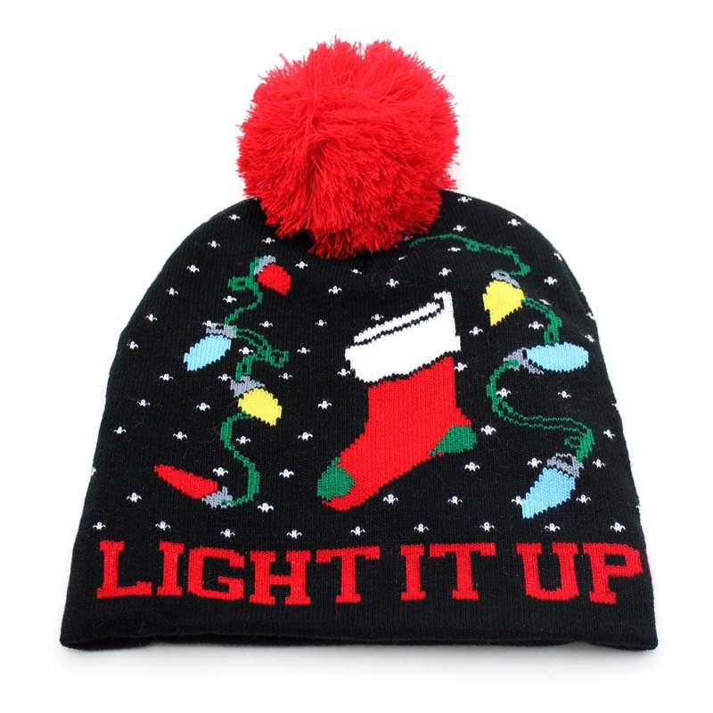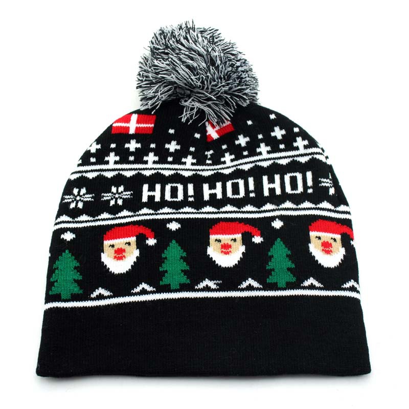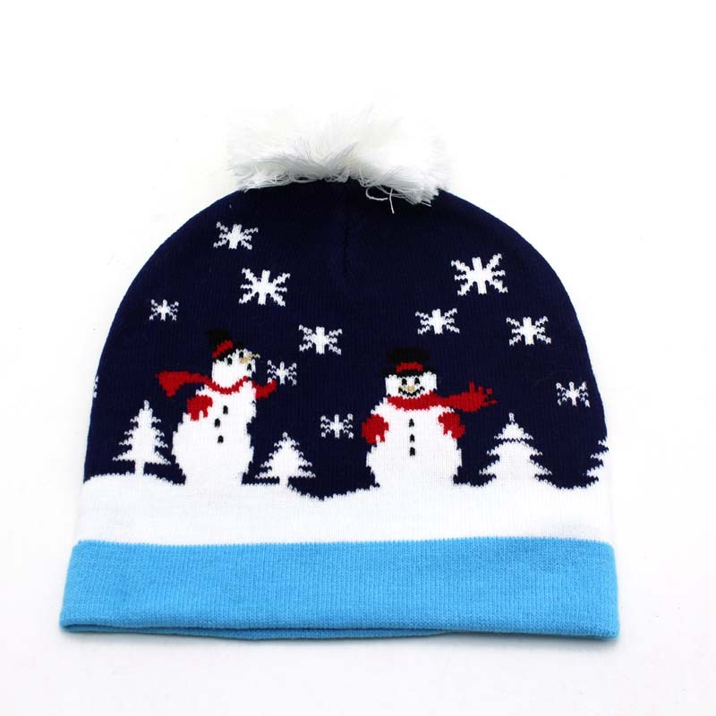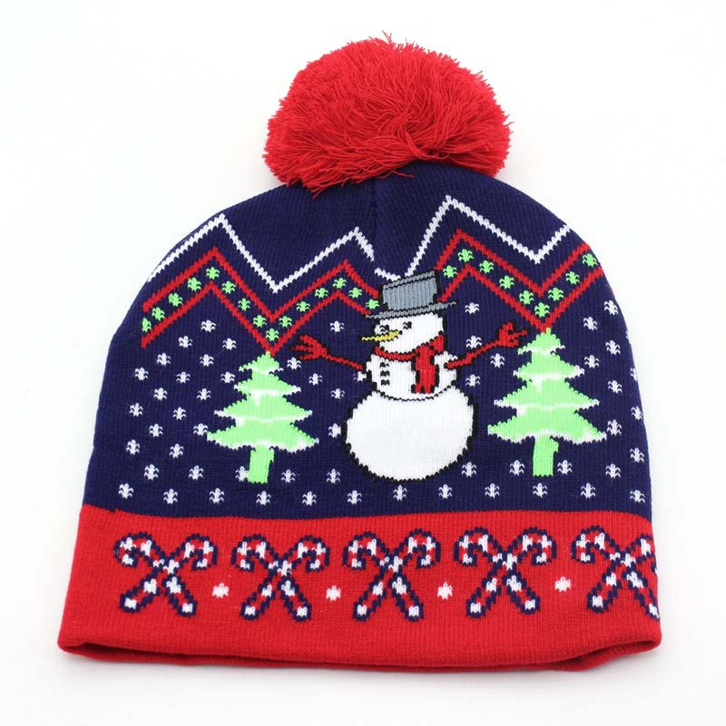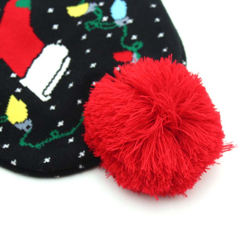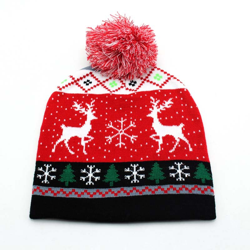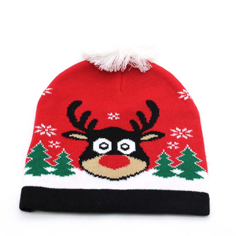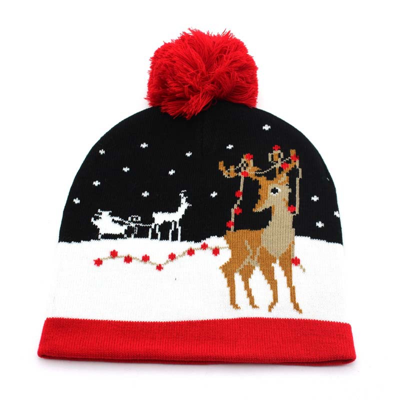 热销新款提花圣诞帽子新年圣诞礼物毛球针织帽成人保暖套头帽