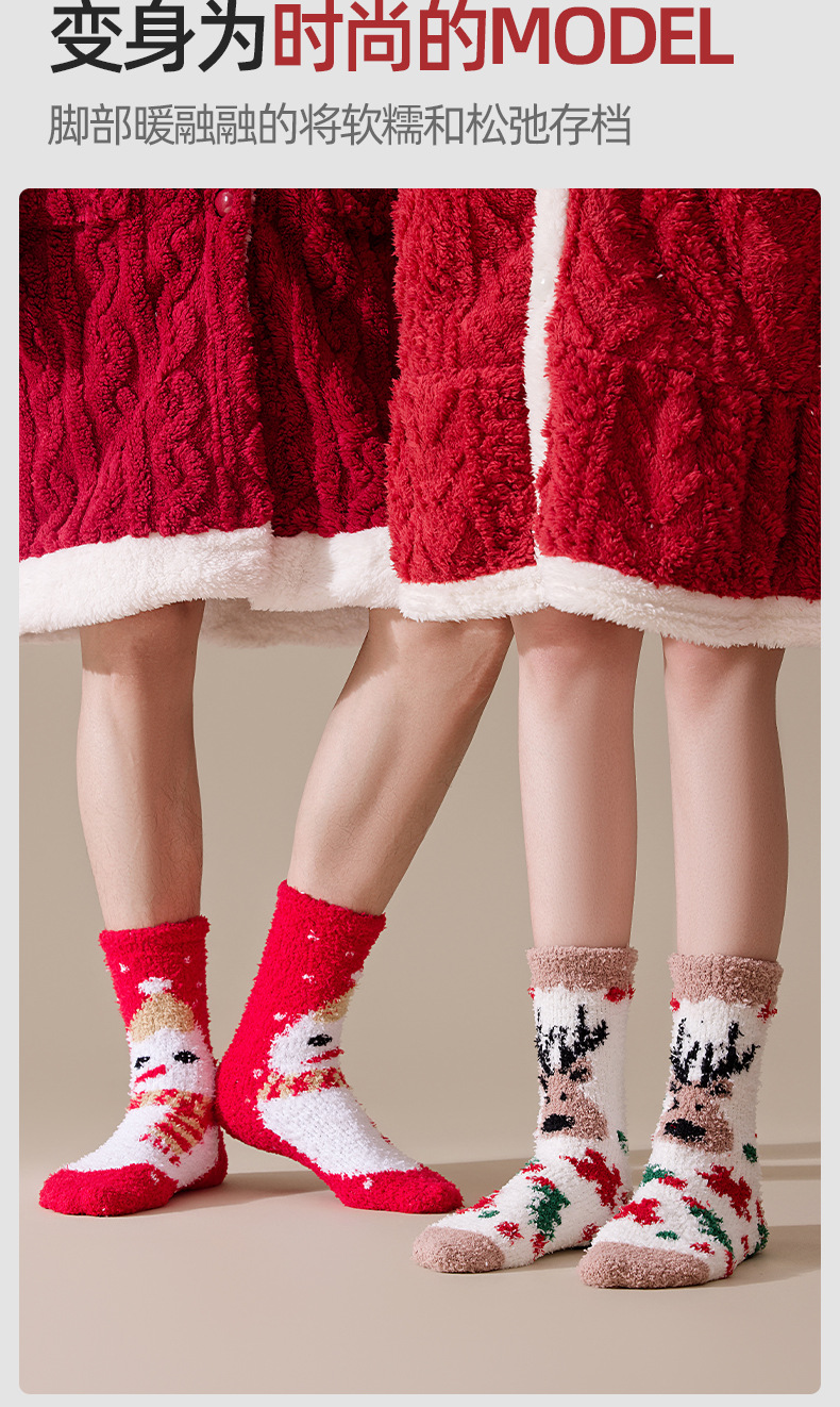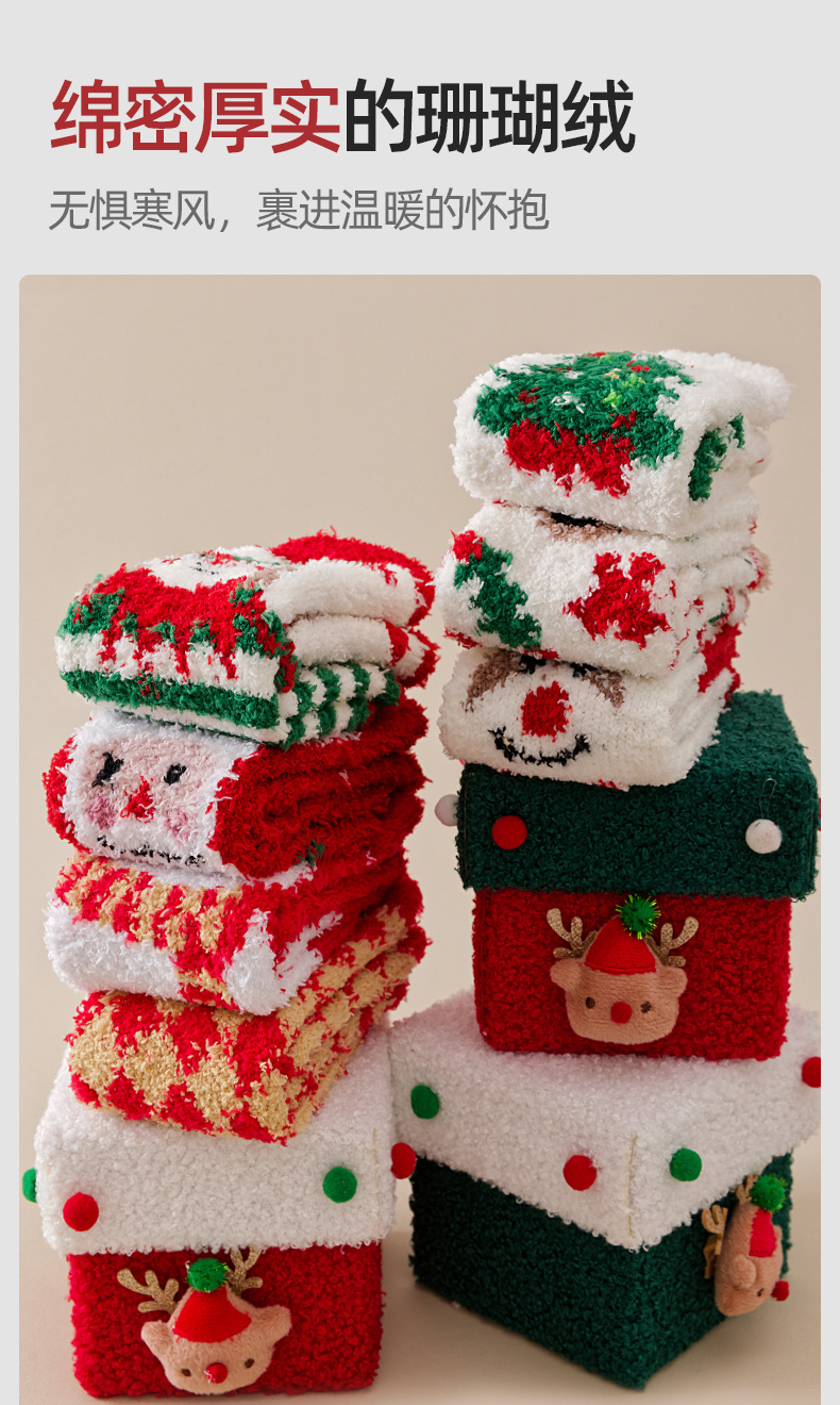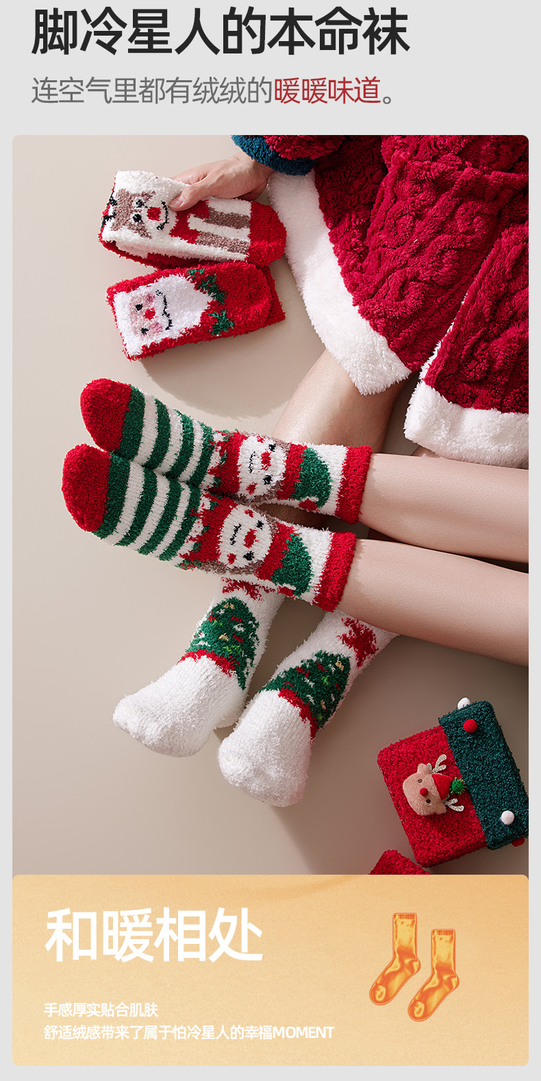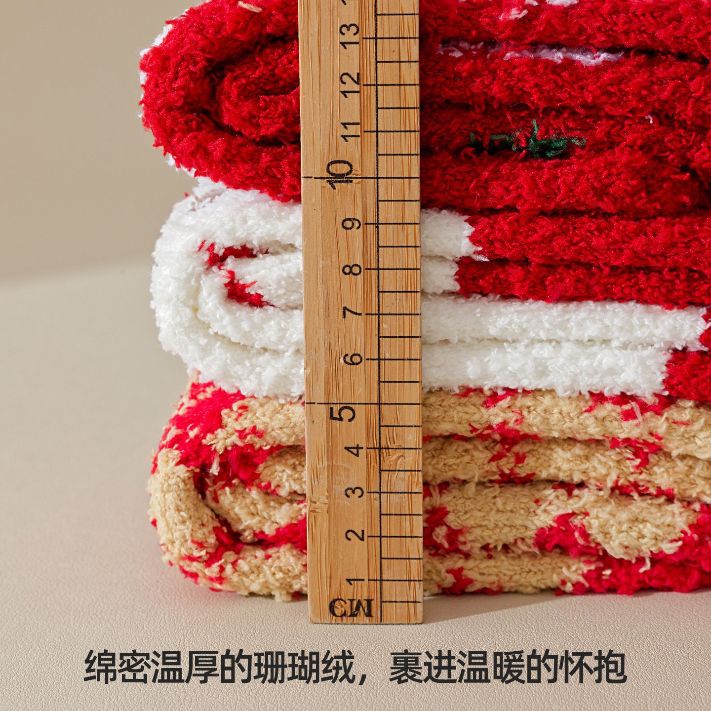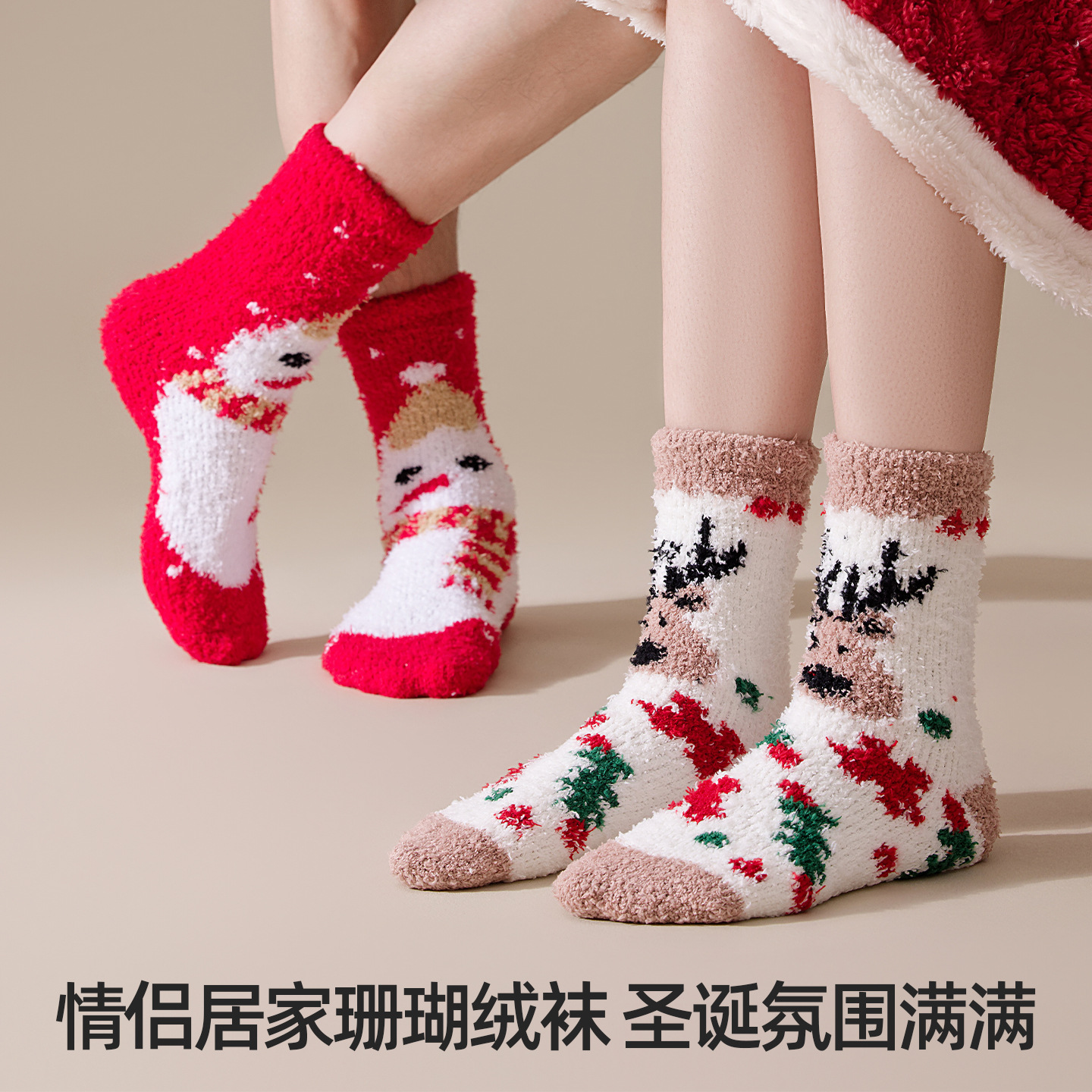 圣诞袜情侣珊瑚绒中筒袜不掉毛加厚保暖可爱平安夜氛围礼物睡眠袜