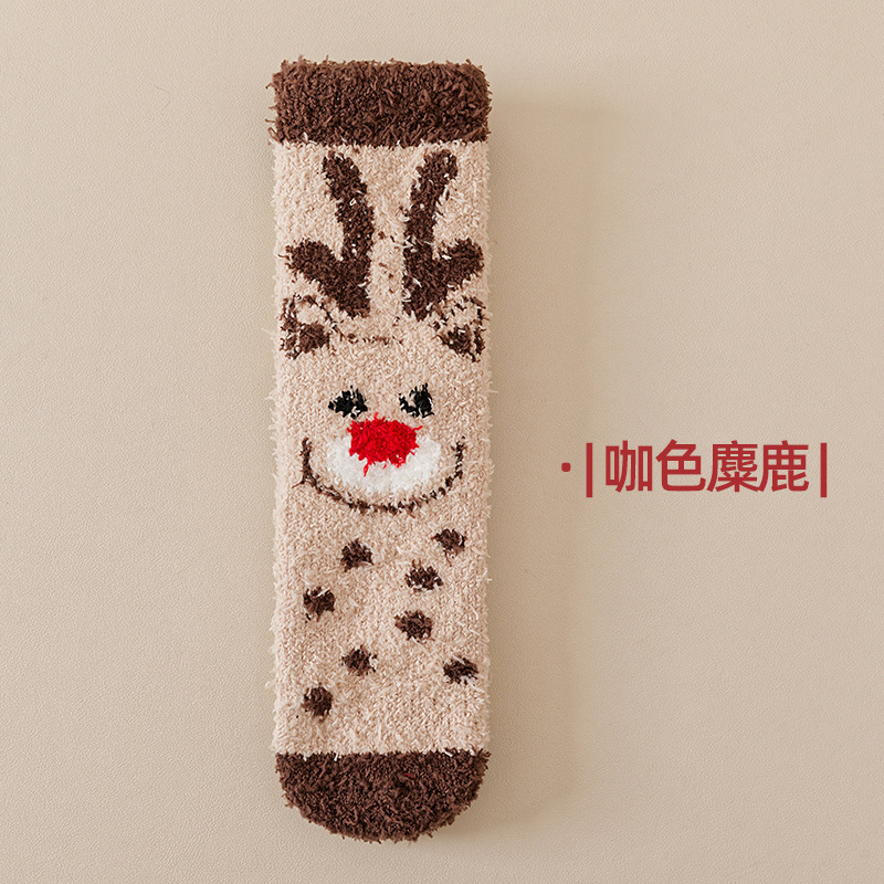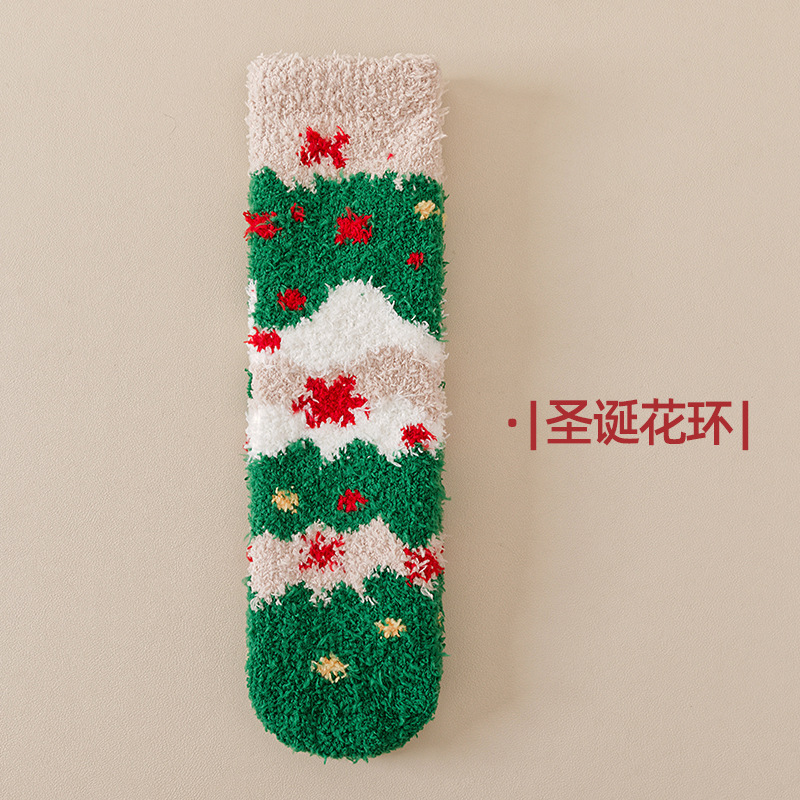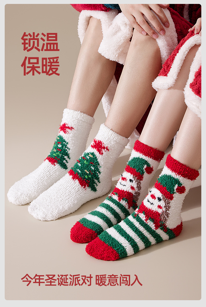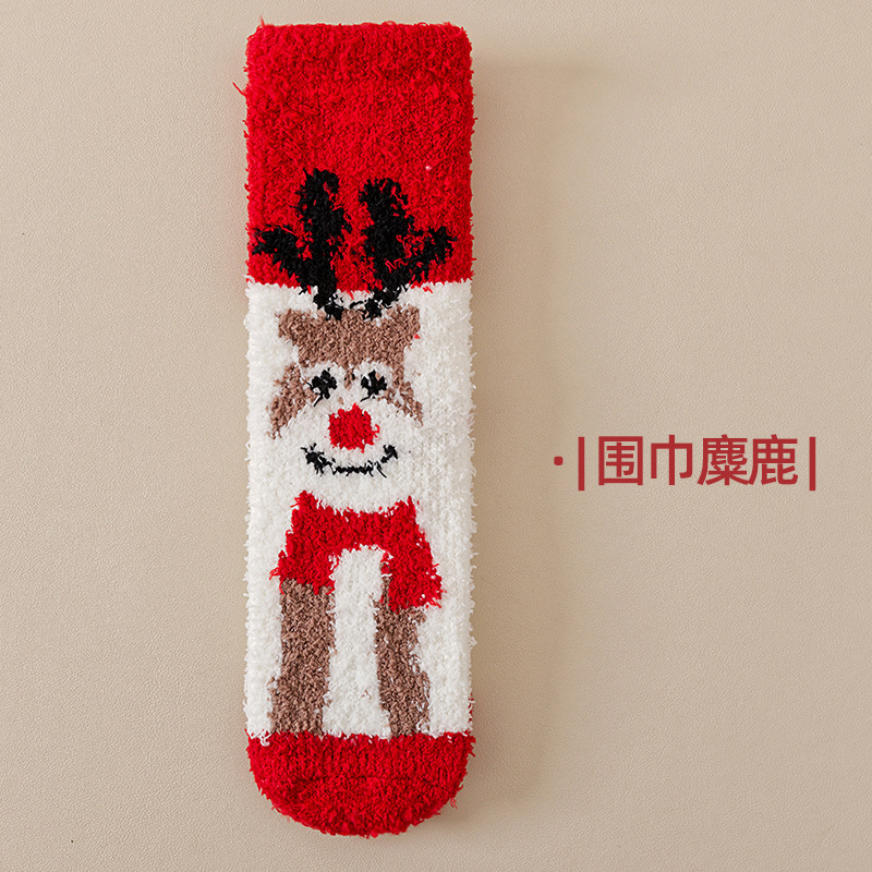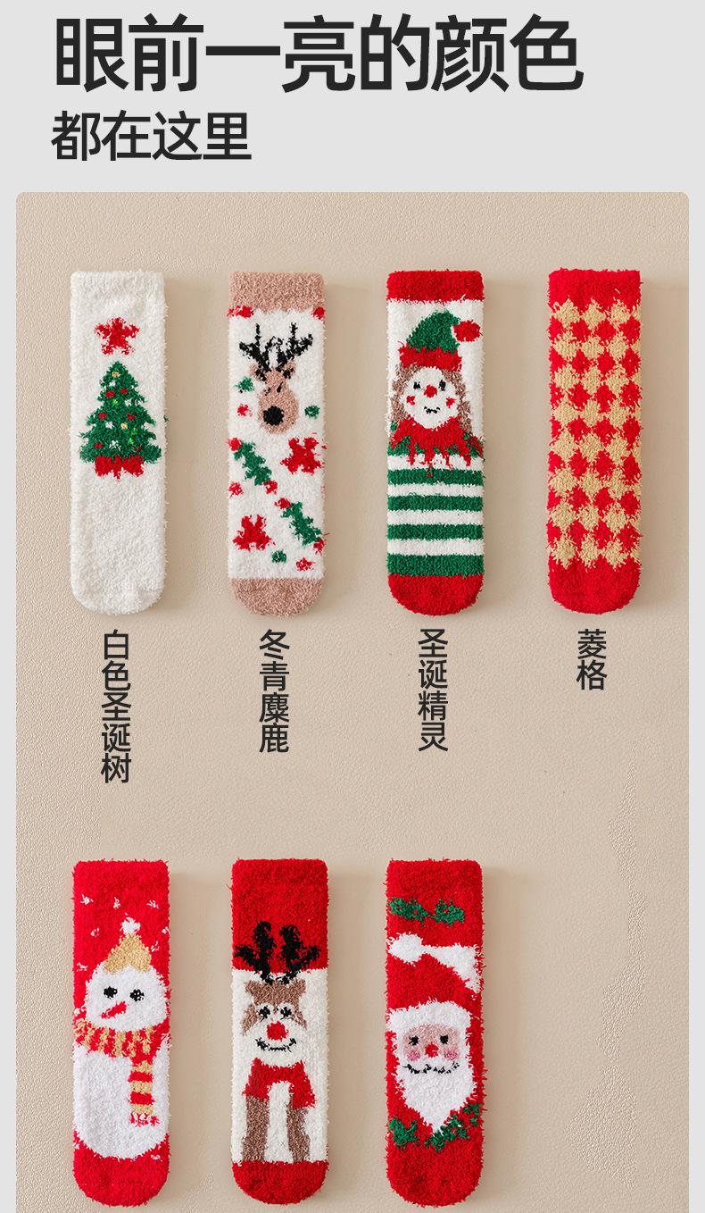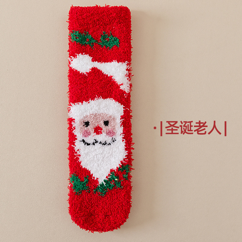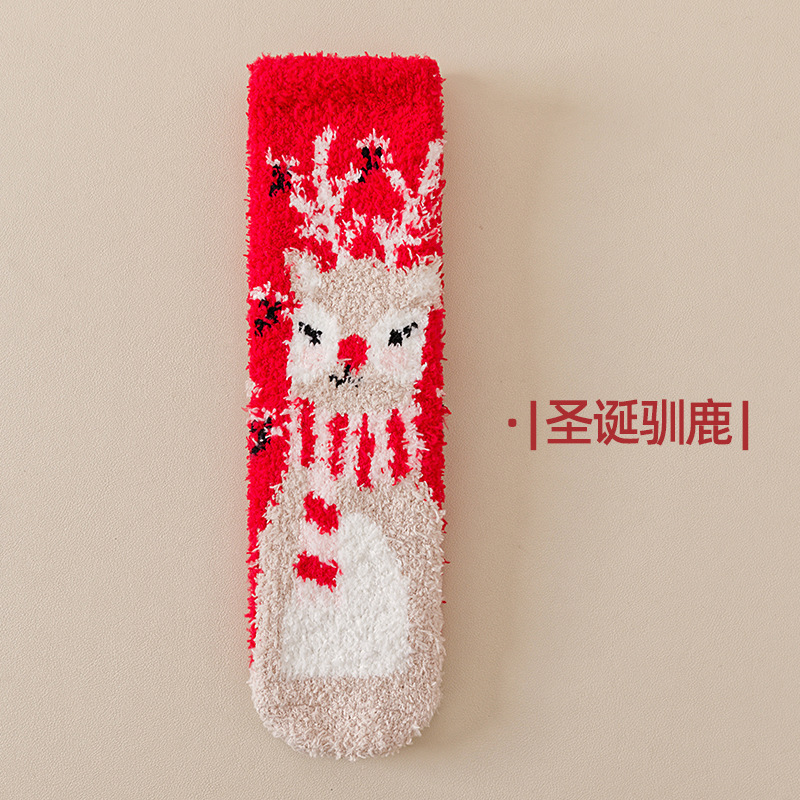 圣诞袜情侣珊瑚绒中筒袜不掉毛加厚保暖可爱平安夜氛围礼物睡眠袜