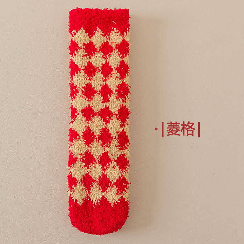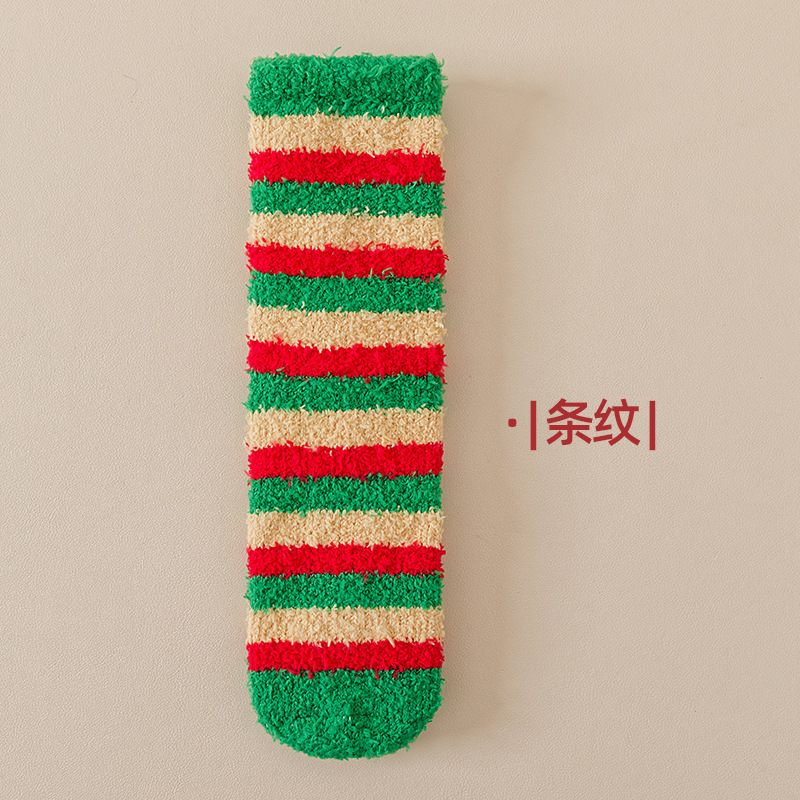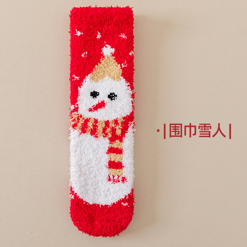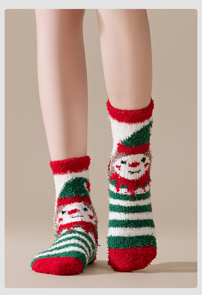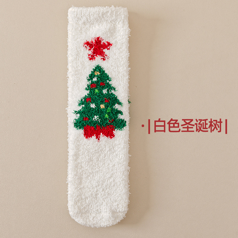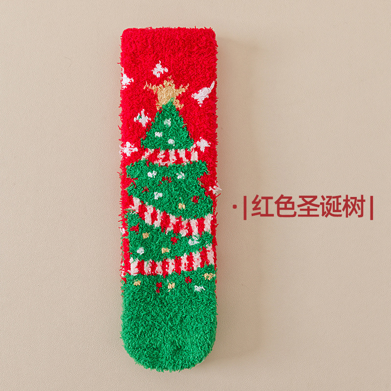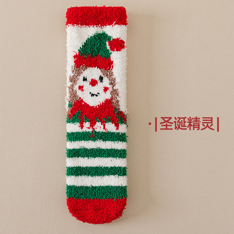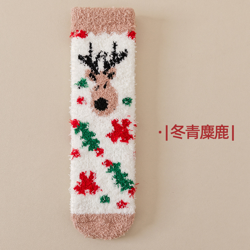圣诞袜情侣珊瑚绒中筒袜不掉毛加厚保暖可爱平安夜氛围礼物睡眠袜