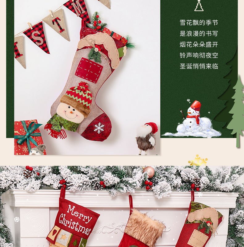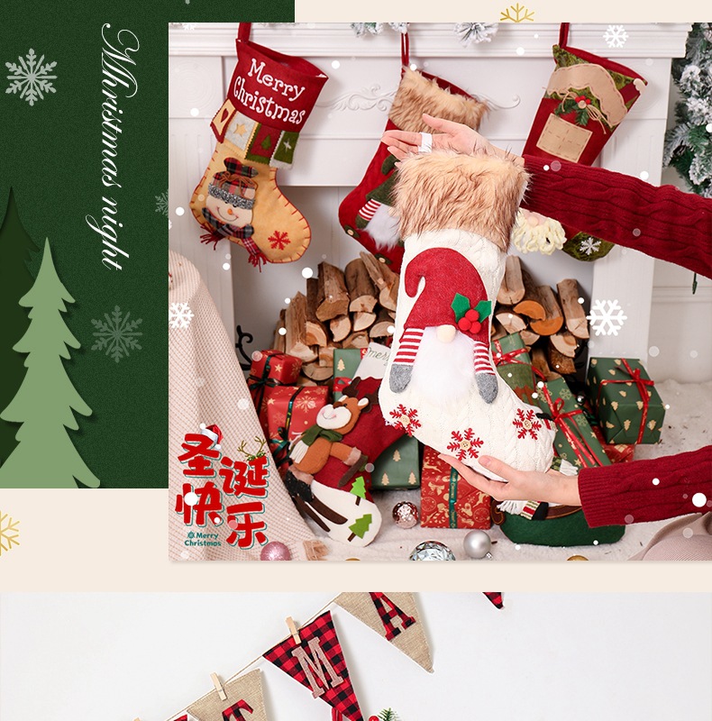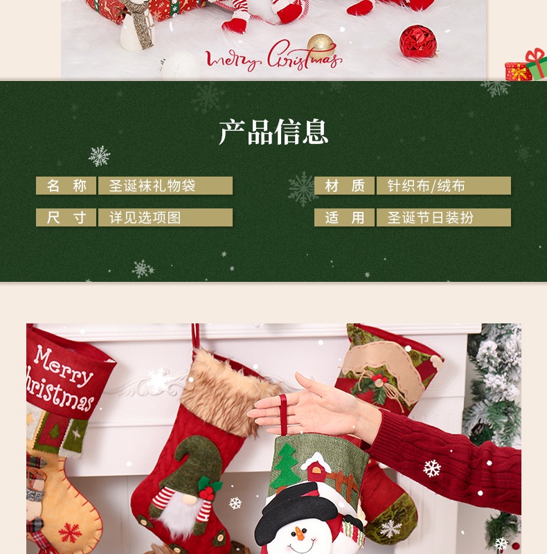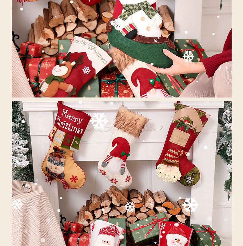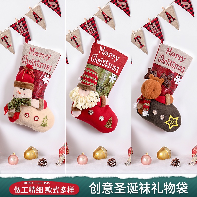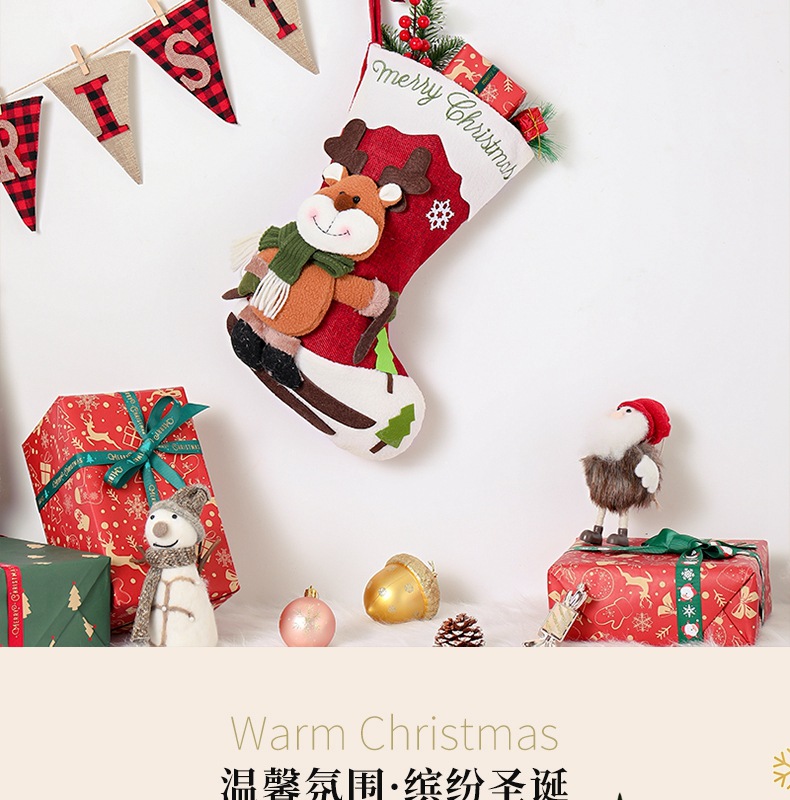 新款圣诞节装饰用品高档卡通圣诞袜立体袜子礼物袋装饰袜挂件