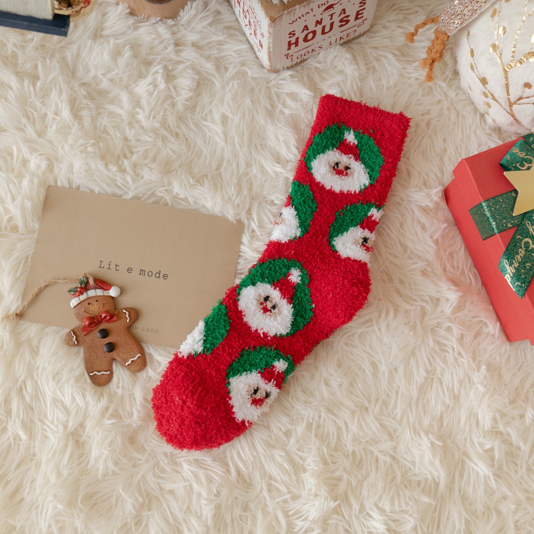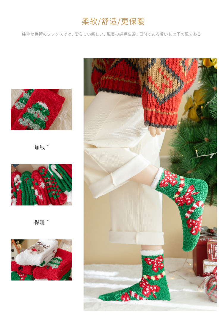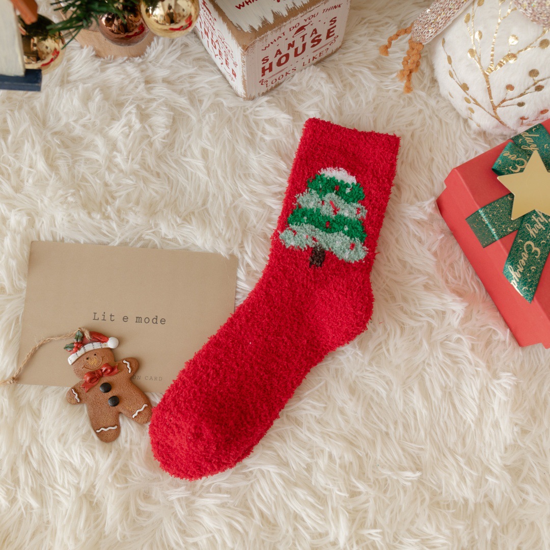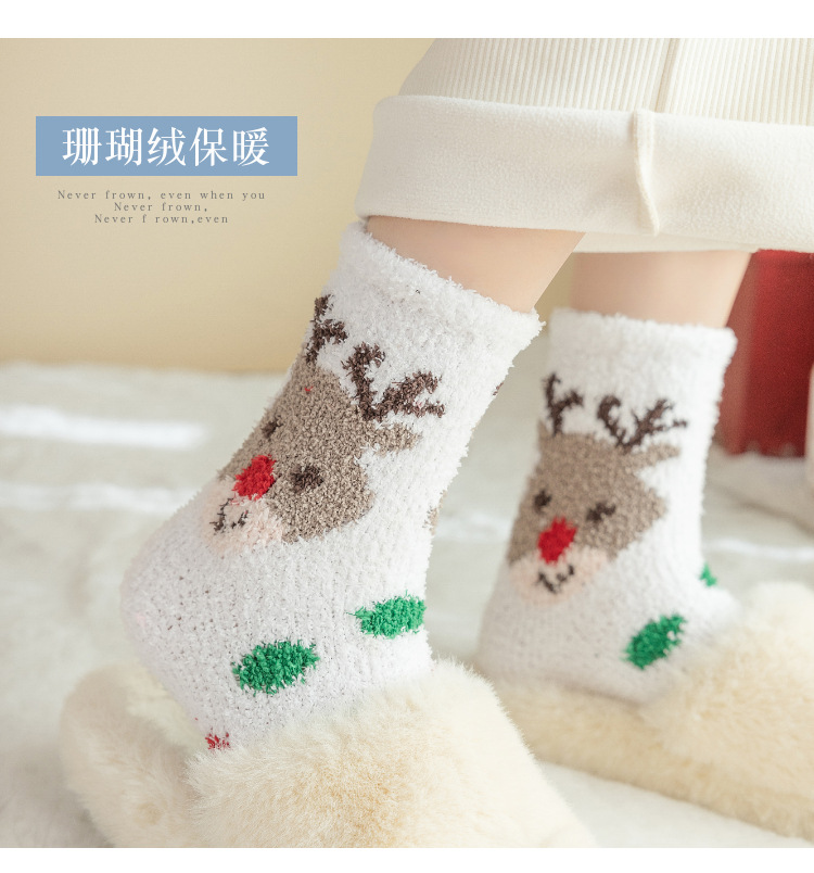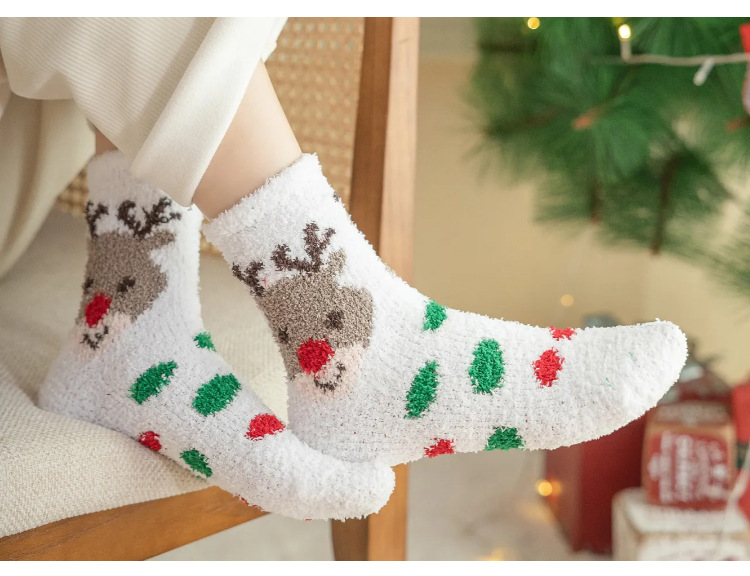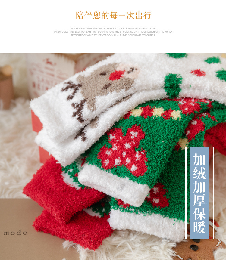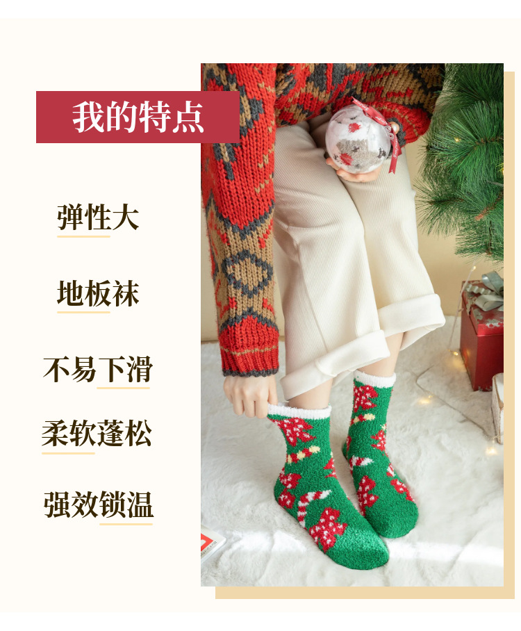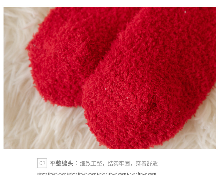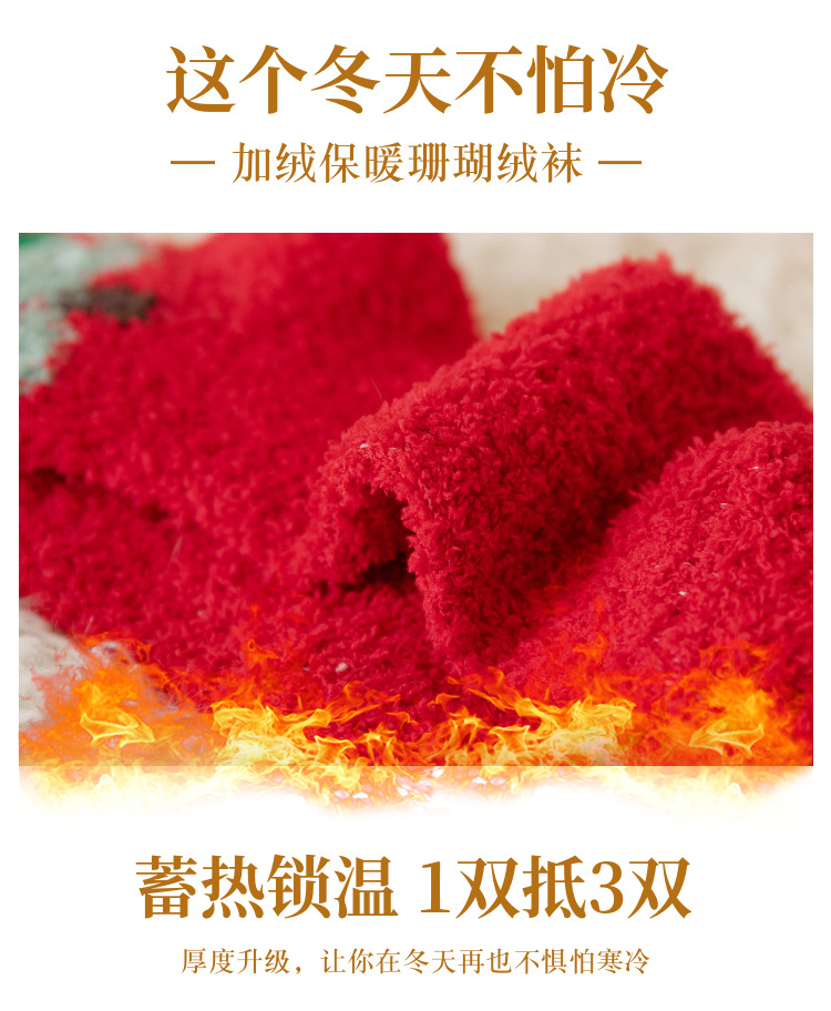 圣诞节礼物袜子女秋冬新年珊瑚绒加厚可爱堆堆袜本命年大红中筒袜