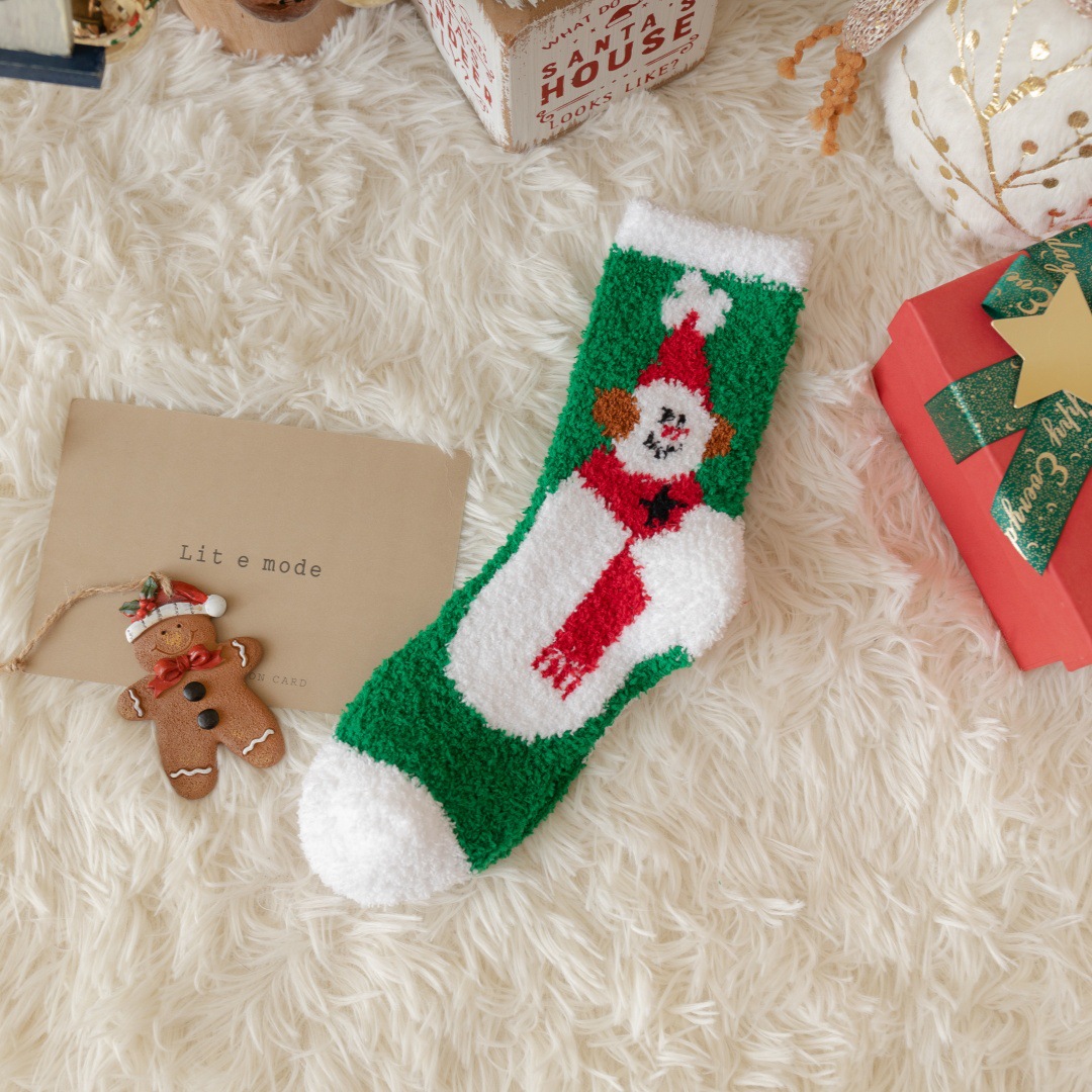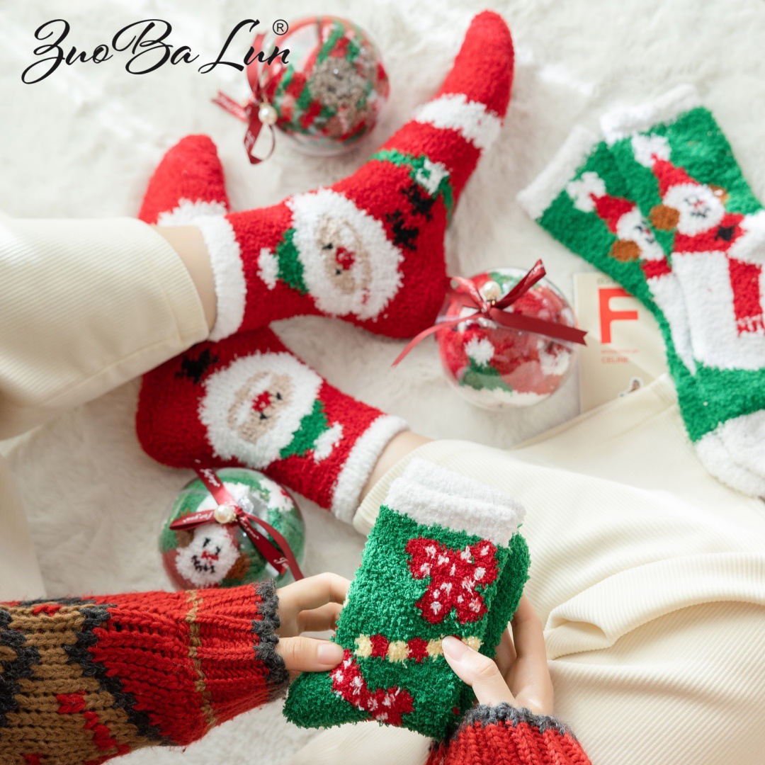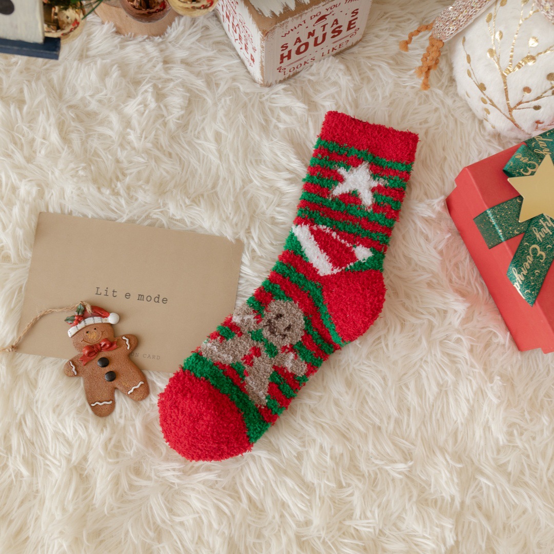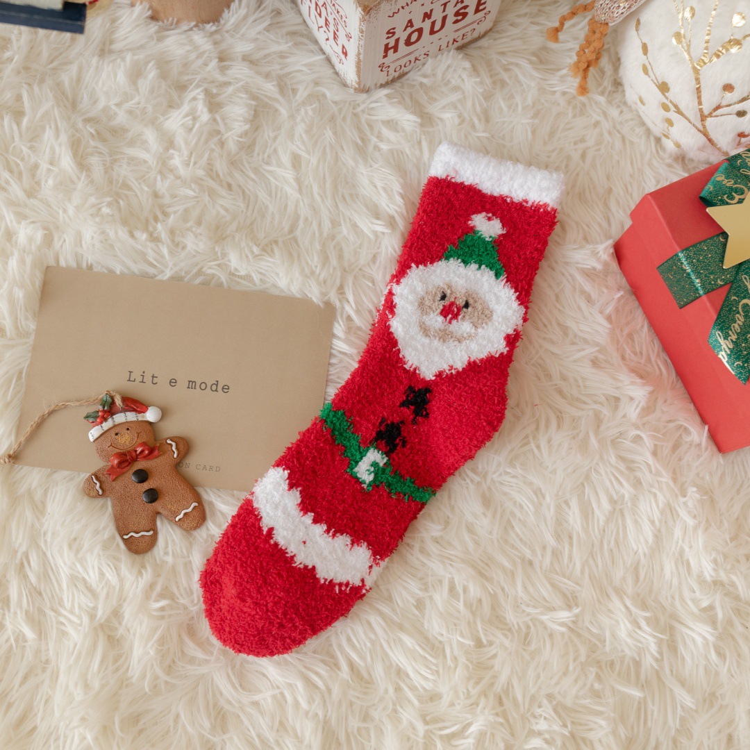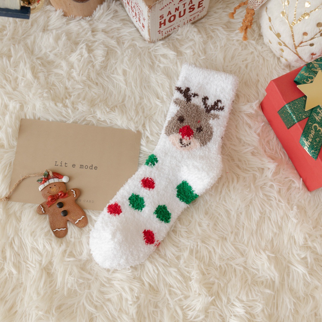圣诞节礼物袜子女秋冬新年珊瑚绒加厚可爱堆堆袜本命年大红中筒袜