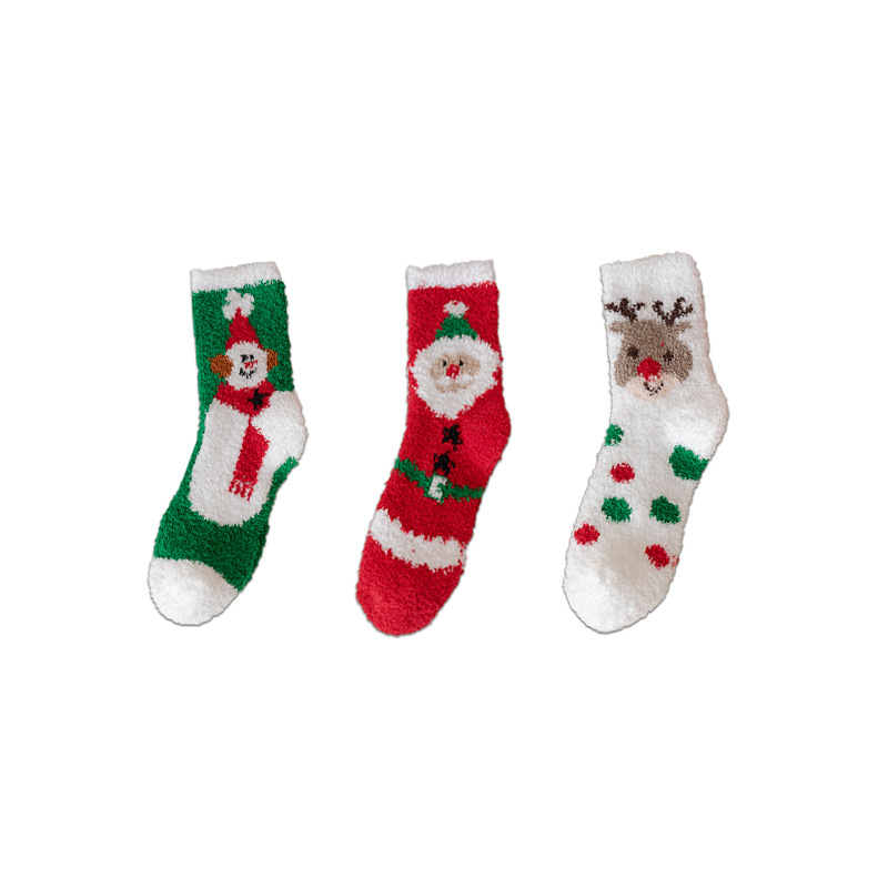 三双装//白色麋鹿+红色圣诞老人+绿色雪人